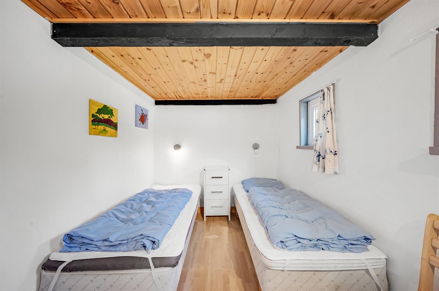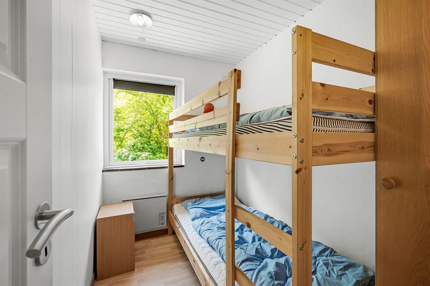 Der er i alt 4 soveværelser. Sovepladserne fordeler sig på: 4 sovepladser i dobbeltsenge. 2 sovepladser i enkeltsenge. 2 sovepladser i køjeseng. Derudover er der 1 stk. barneseng.