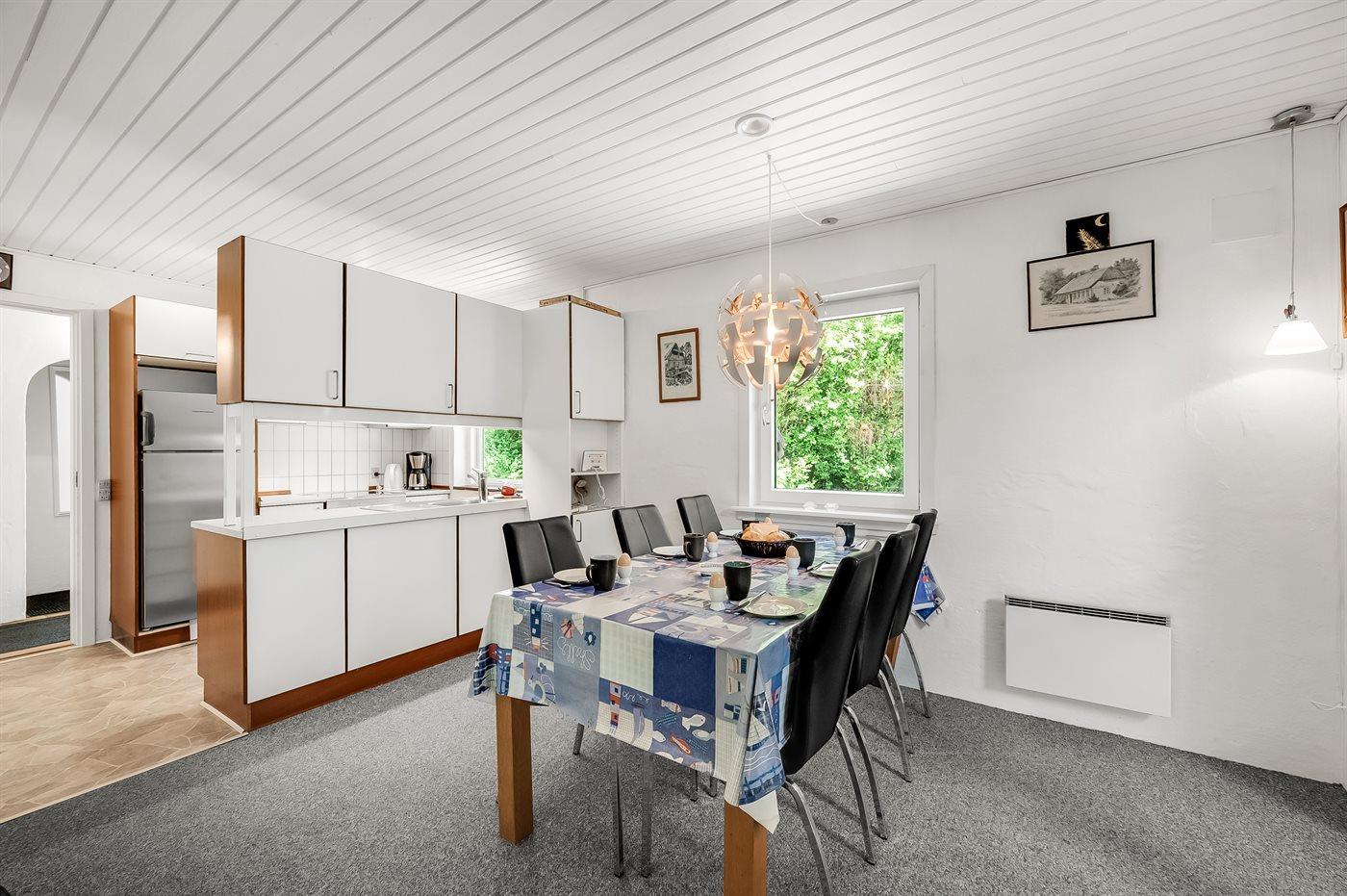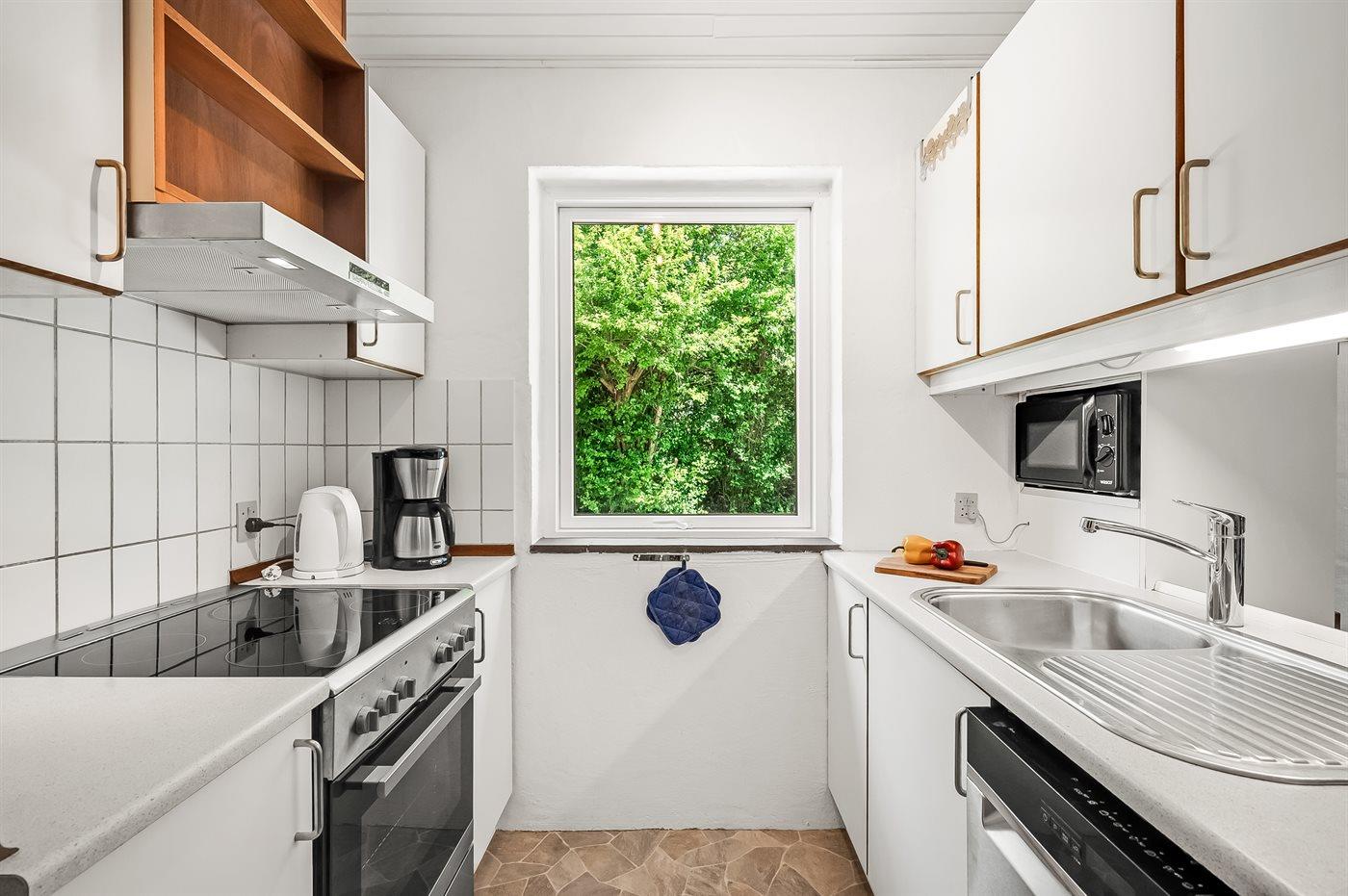 Køkkenet er udstyret med 2 køleskabe. Der er 4 keramiske kogeplader, varmluftovn, mikrobølgeovn samt opvaskemaskine.