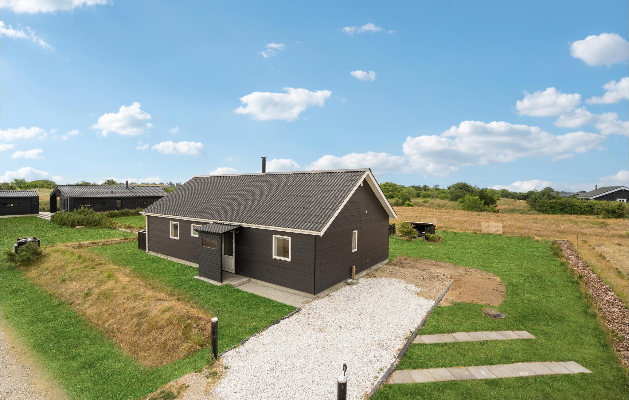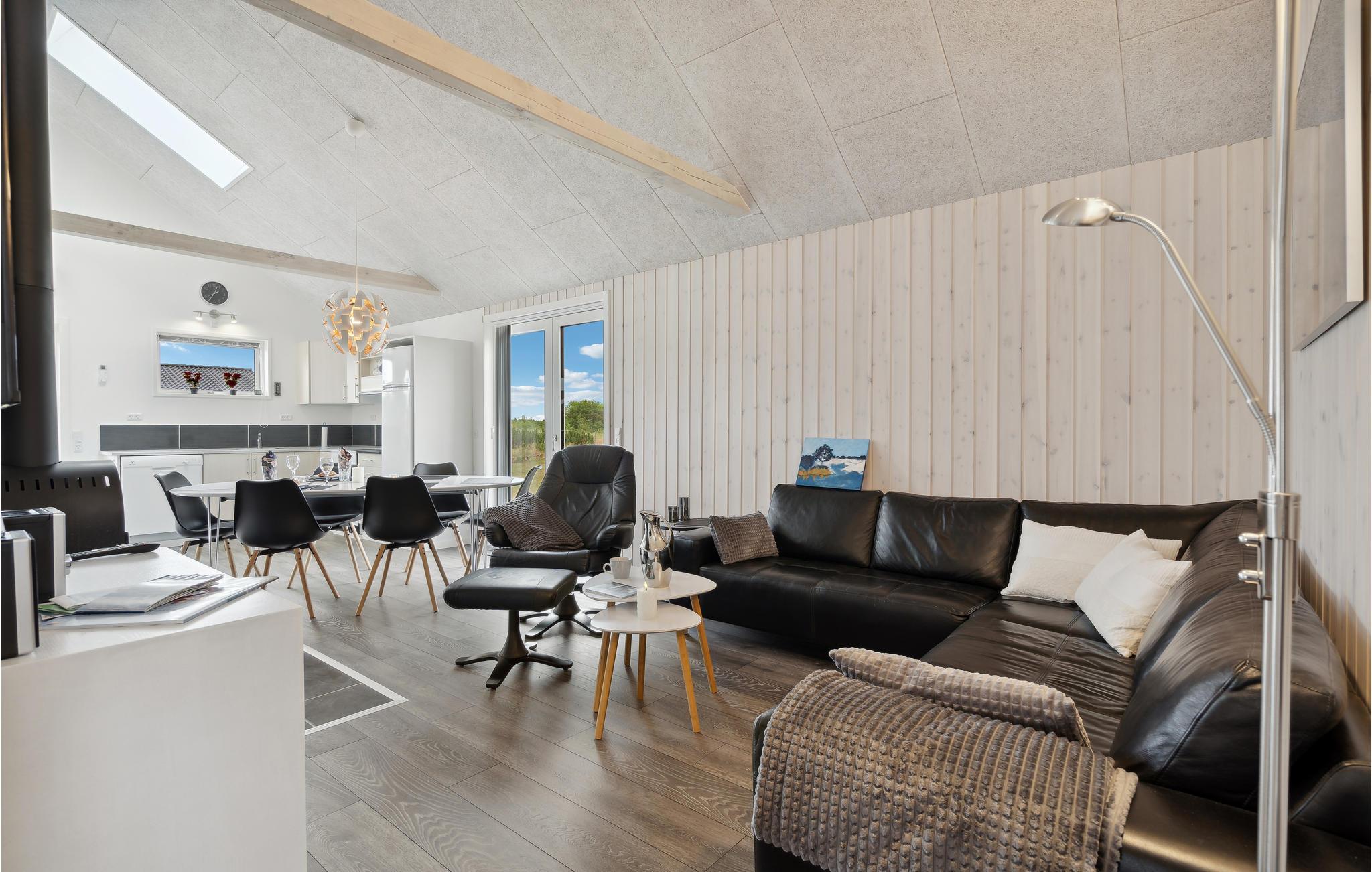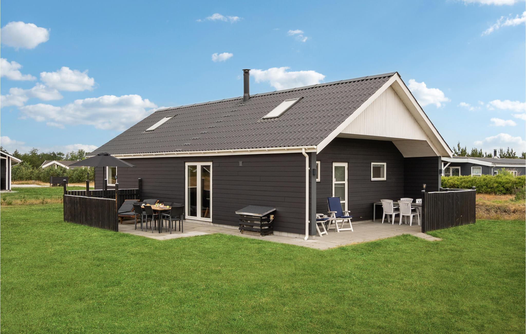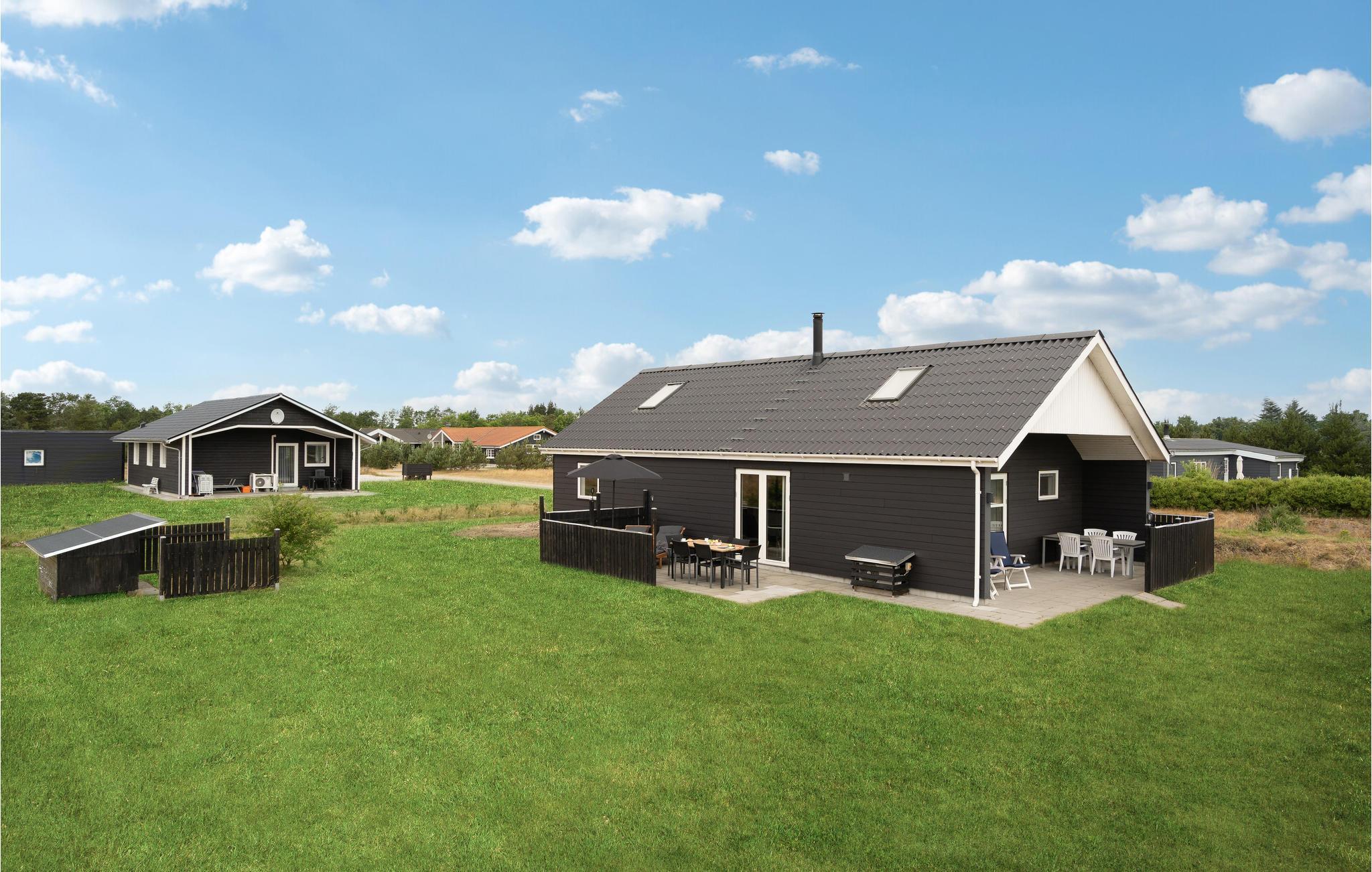 Tilbring en afslappende ferie i dette dejlige feriehus nær Stauning. I det store køkken-alrum er der fokus på fælles madlavning, samvær og nærvær, og husets lidt særlige byggestil med loft til kip samt hyggelige indretning giver et rummeligt og varmt indtryk. Sæt jer godt til rette i den behagelige sofakrog. Her er der lagt op til kaffe og kage og måske en quiz eller gæt og grimasser? Tilbered jeres yndlingsretter i det åbne køkken og nyd jeres måltider med en vidunderlig udsigt over de grønne omgivelser. Om aftenen kan I lægge planer for de næste feriedage eller udfordre hinanden i et brætspil. Senere kan mor og far nyde en afslappende romantisk stund i spabadet. Når solen skinner, kan I bruge terrassen til solbadning, grillaftener og hyggelige morgenstunder.