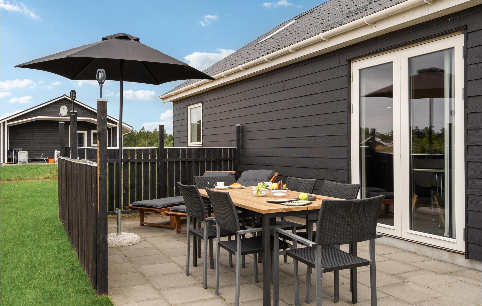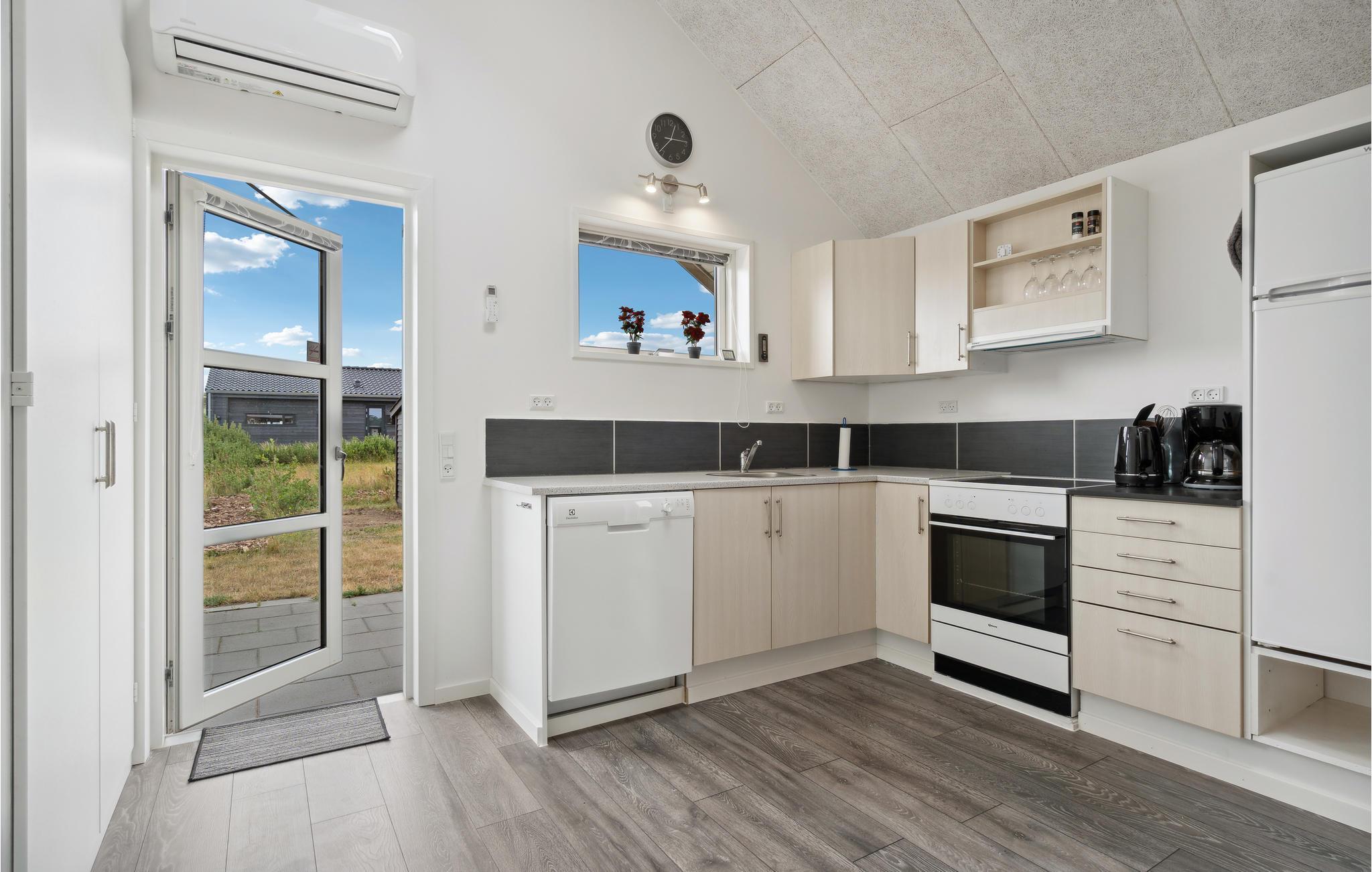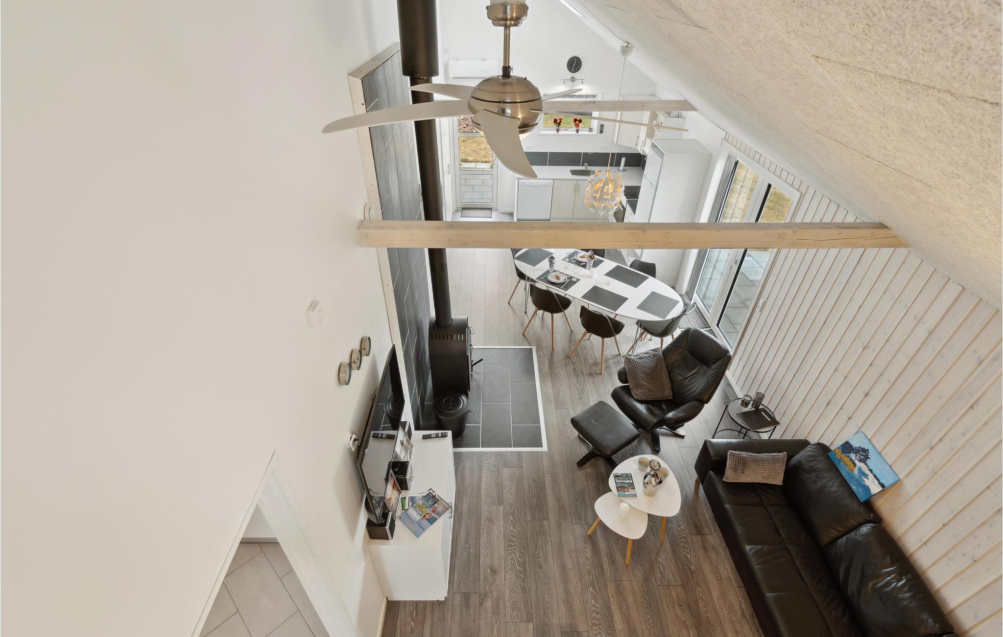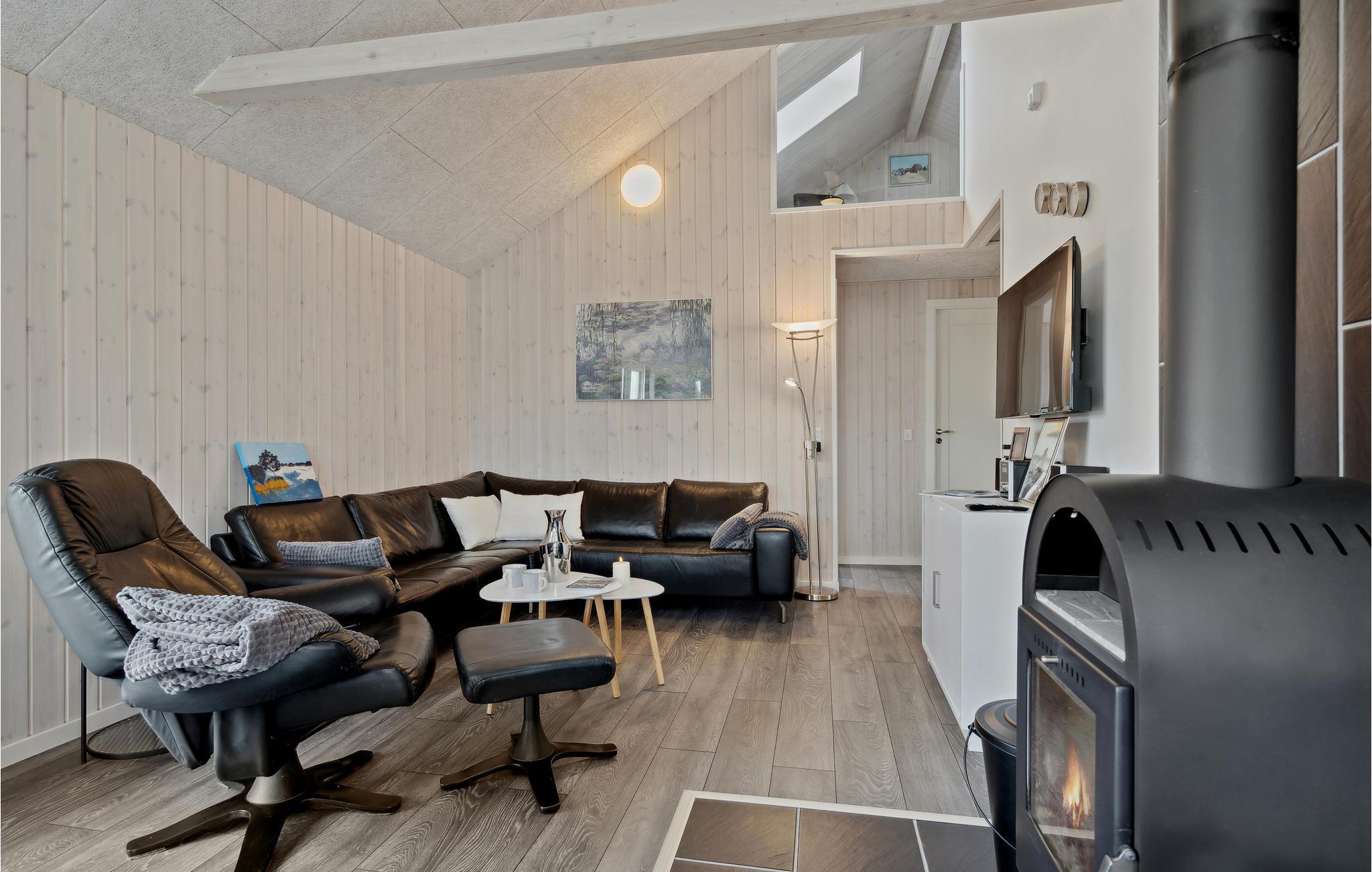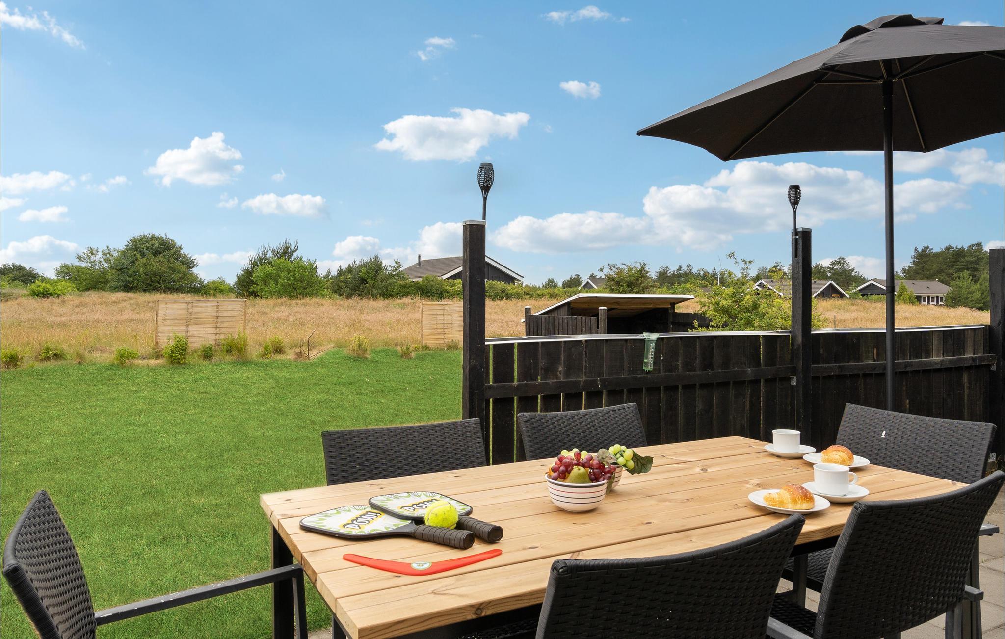 Tilbring en afslappende ferie i dette dejlige feriehus nær Stauning. I det store køkken-alrum er der fokus på fælles madlavning, samvær og nærvær, og husets lidt særlige byggestil med loft til kip samt hyggelige indretning giver et rummeligt og varmt indtryk. Sæt jer godt til rette i den behagelige sofakrog. Her er der lagt op til kaffe og kage og måske en quiz eller gæt og grimasser? Tilbered jeres yndlingsretter i det åbne køkken og nyd jeres måltider med en vidunderlig udsigt over de grønne omgivelser. Om aftenen kan I lægge planer for de næste feriedage eller udfordre hinanden i et brætspil. Senere kan mor og far nyde en afslappende romantisk stund i spabadet. Når solen skinner, kan I bruge terrassen til solbadning, grillaftener og hyggelige morgenstunder.