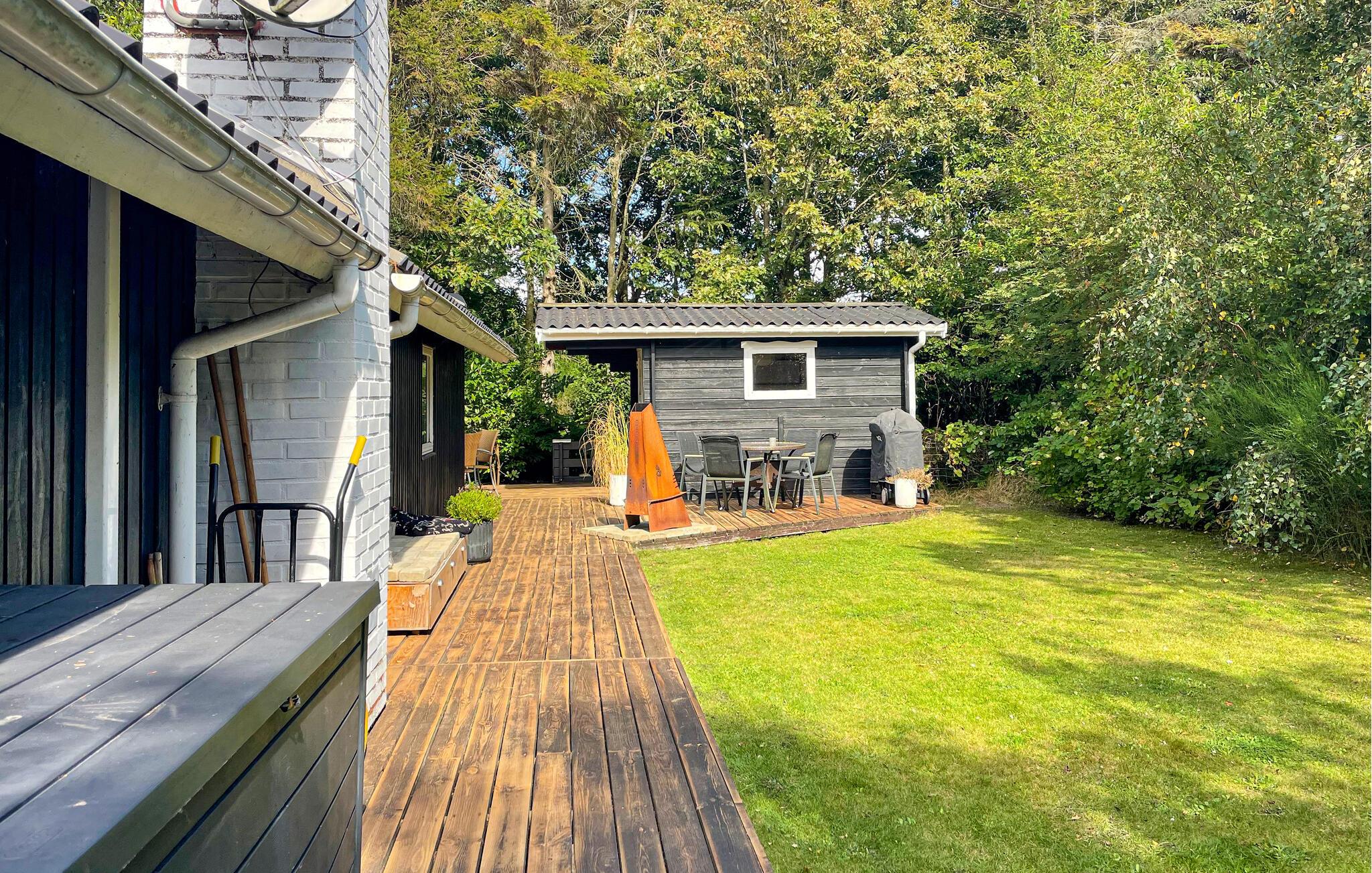 I har nem adgang til de to terrasser, hvor I kan sætte jer og nyde solen udendørs. Tag dagens første kop kaffe med ud i solskinnet og tilbered et lækkert sommermåltid på grillen, mens børnene boltrer sig i haven.
