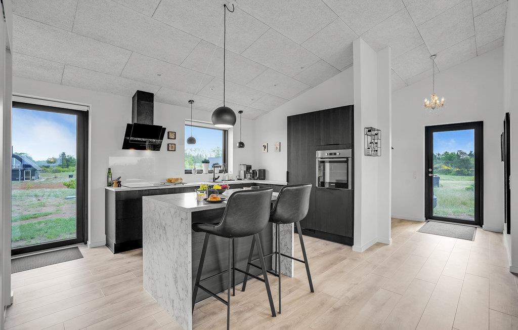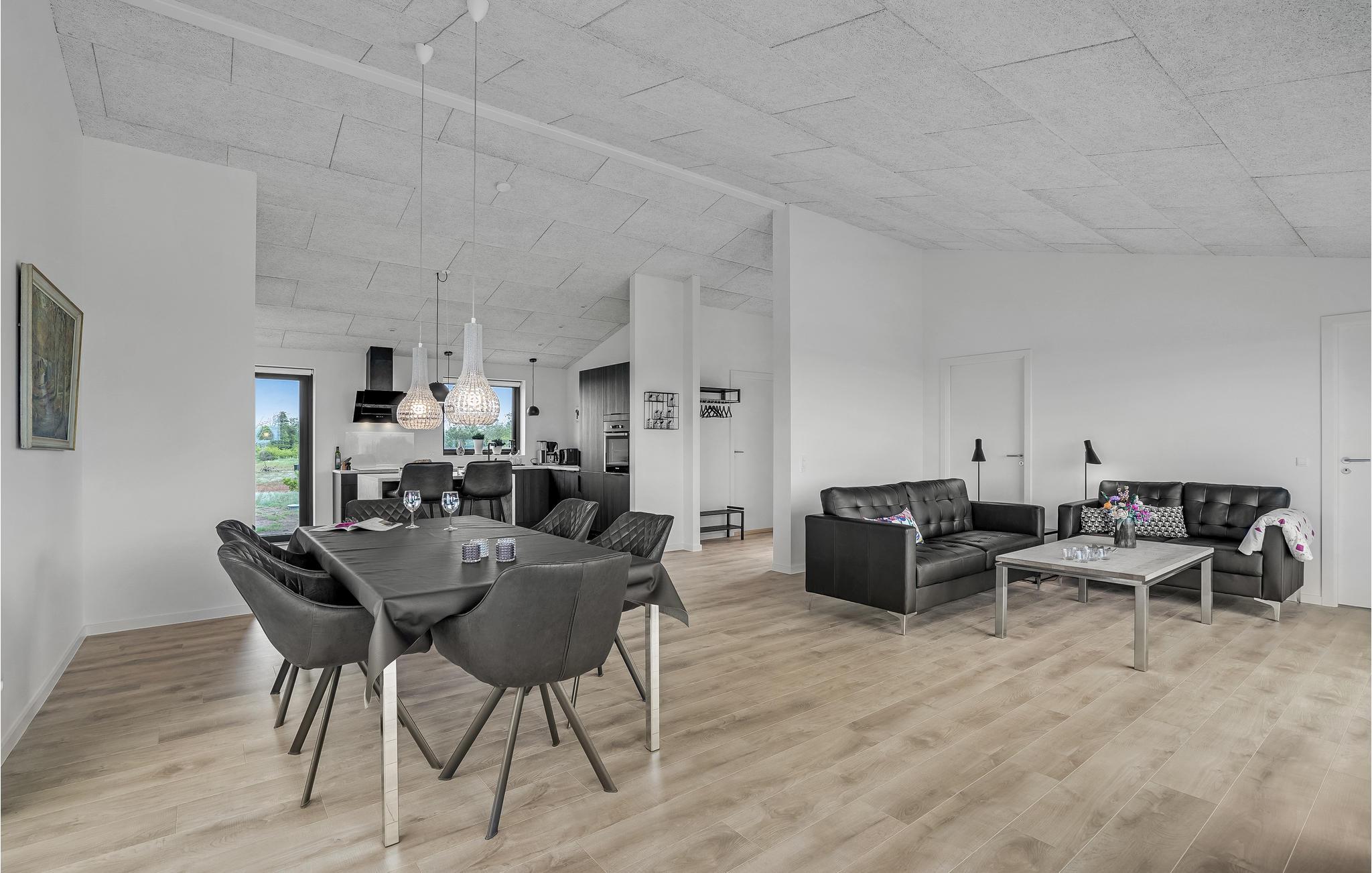 Der er lagt op til nogle skønne dage, hvor I kan komme helt ned i gear og nyde den stille natur ved Ringkøbing Fjord. Her får I den optimale ramme om feriedagene i form af dette indbydende hus, som er lækkert og stilfuldt indrettet i rolige kontrastfarver. Nyd udsigten til det smukke, flade landskab og havet gennem de store vinduespartier. Når solen er fremme, kan I rykke selskabet ud på den åbne terrasse og suge til jer af de flotte omgivelser, mens griller eller lader børnene lege.