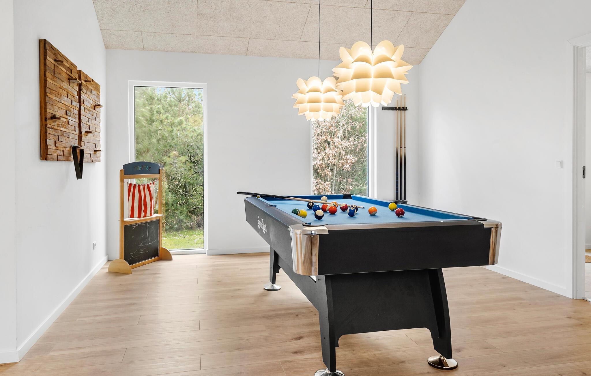 Rejs til Vestjylland med den udvidede familie eller en større venneflok og glæd jer til dette fremragende feriehus, hvor I får alt, I kunne drømme om til en ferie med sjov for alle aldre. Huset byder på mange kvadratmeter og en moderne indretning med kvalitet over hele linjen. Prikken over i'et er dog pool-afdelingen. På dage med gråvejr kan børnene plaske rundt og brænde energi af i poolen, mens de voksne finder sig godt til rette i spabadet eller sveder igennem i saunaen. Efter en lækker aftensmad kan I udfordre hinanden til dueller med dart, airhockey eller ved pool-bordet, inden I runder af med en god film i stuen.