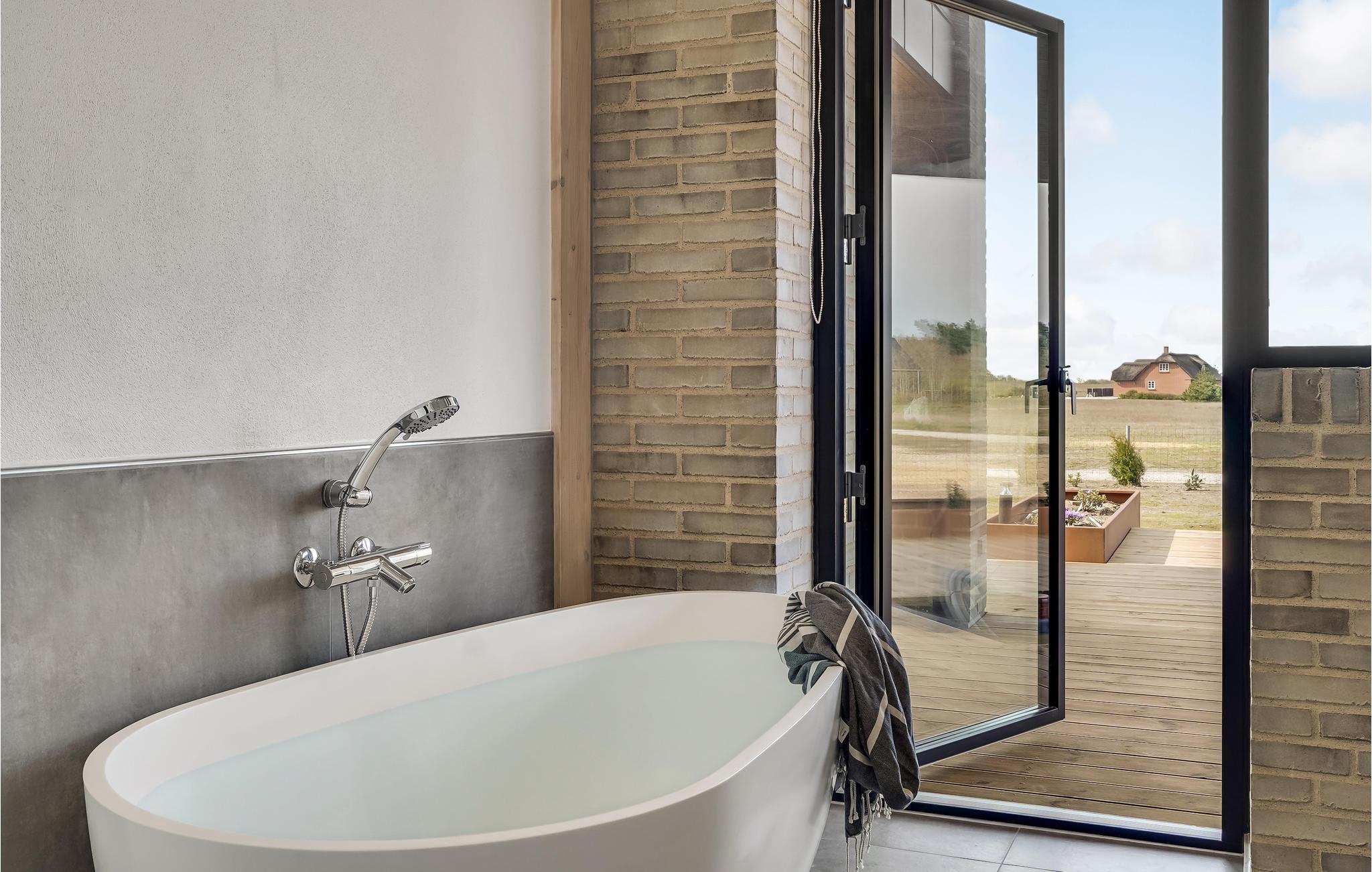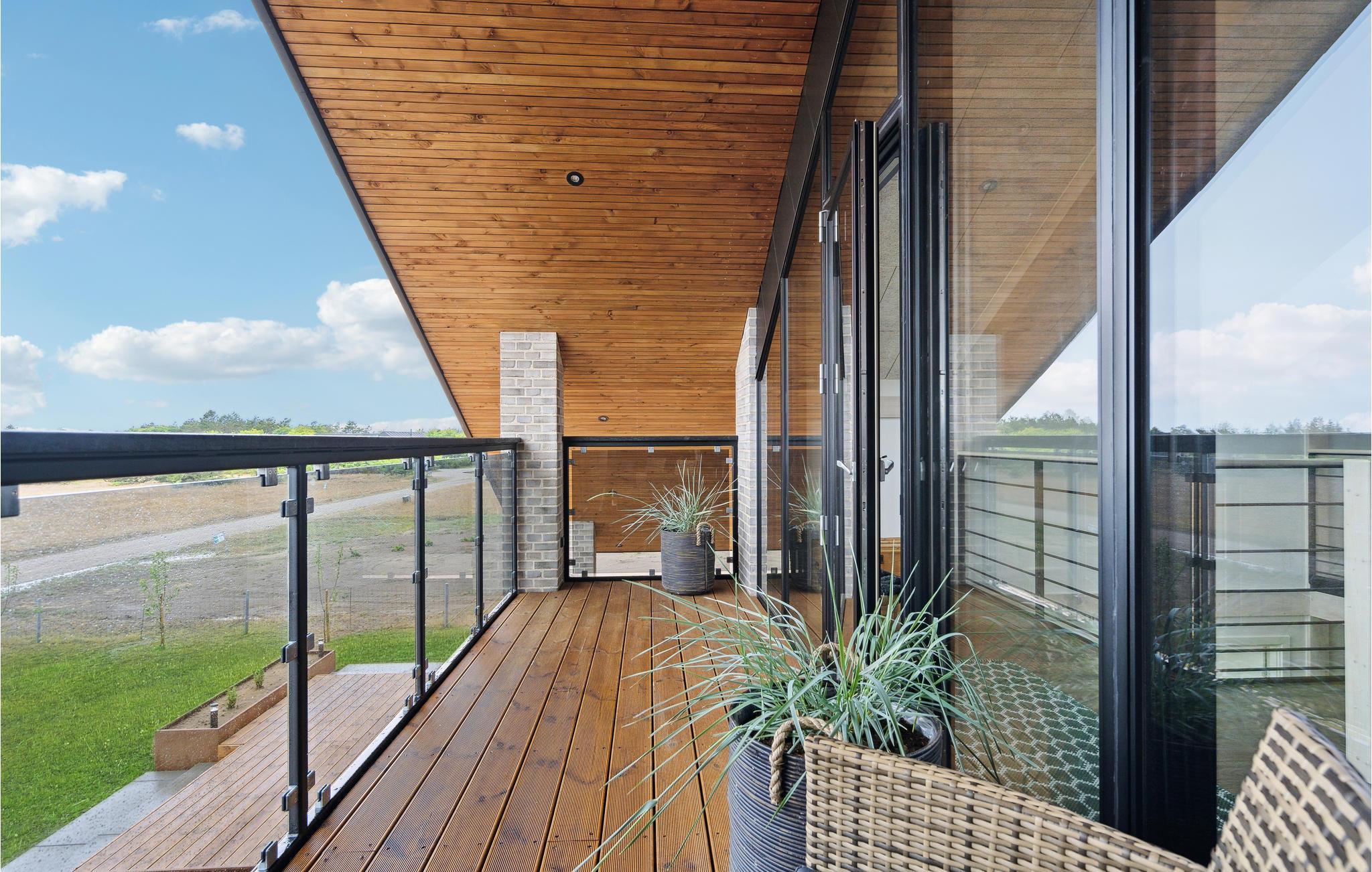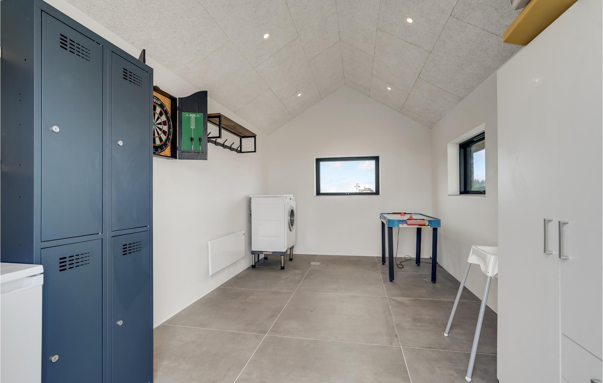 Velkommen til Stauning og dette fantastiske hus, som fremviser et væld af flotte stilvalg og elegante løsninger. Her har I gode rammer til at samles og nyde jeres feriedage ud til et smukt, åbent landskab, der fortsætter ned til vandet. Efter en lang dag på farten kan I læne jer tilbage med bøger og brætspil i stuen, udfordre hinanden til en dyst i aktivitetsrummet, hvor der er dart og airhockey eller snuppe et spil bordfodbold på 1. sal. Herfra er der desuden en fantastisk udsigt over fjorden, som også kan nydes husets skønne balkon.