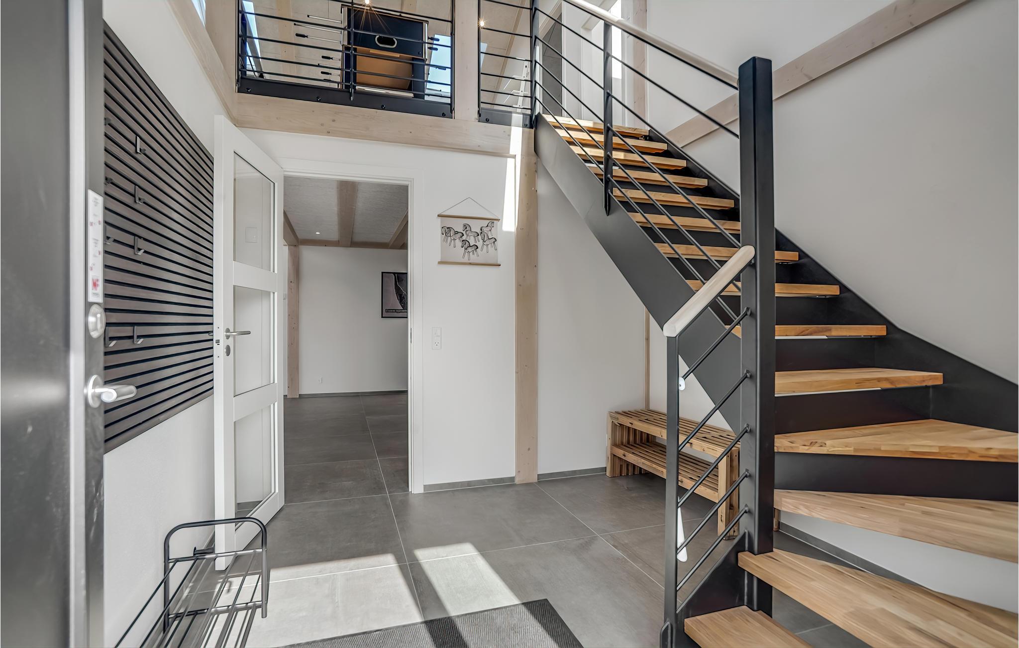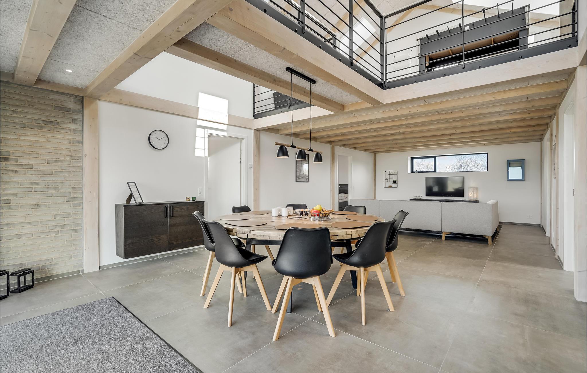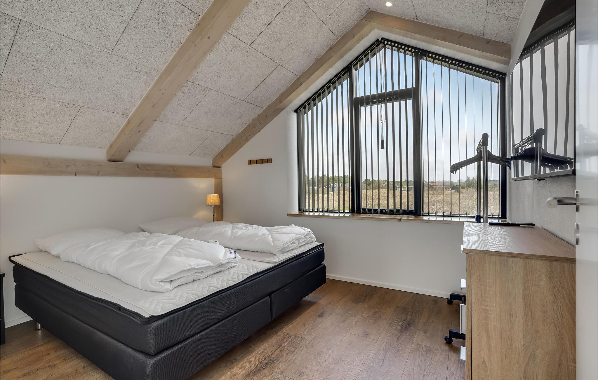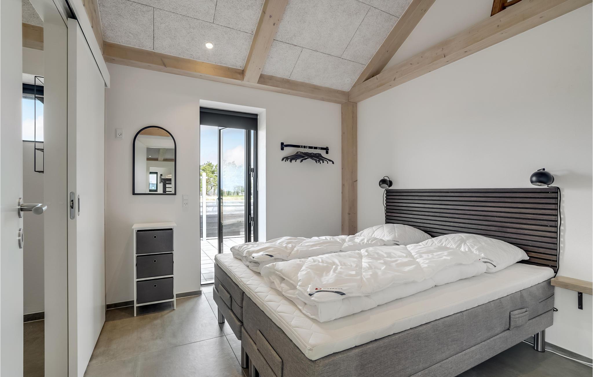 Velkommen til Stauning og dette fantastiske hus, som fremviser et væld af flotte stilvalg og elegante løsninger. Her har I gode rammer til at samles og nyde jeres feriedage ud til et smukt, åbent landskab, der fortsætter ned til vandet. Efter en lang dag på farten kan I læne jer tilbage med bøger og brætspil i stuen, udfordre hinanden til en dyst i aktivitetsrummet, hvor der er dart og airhockey eller snuppe et spil bordfodbold på 1. sal. Herfra er der desuden en fantastisk udsigt over fjorden, som også kan nydes husets skønne balkon.