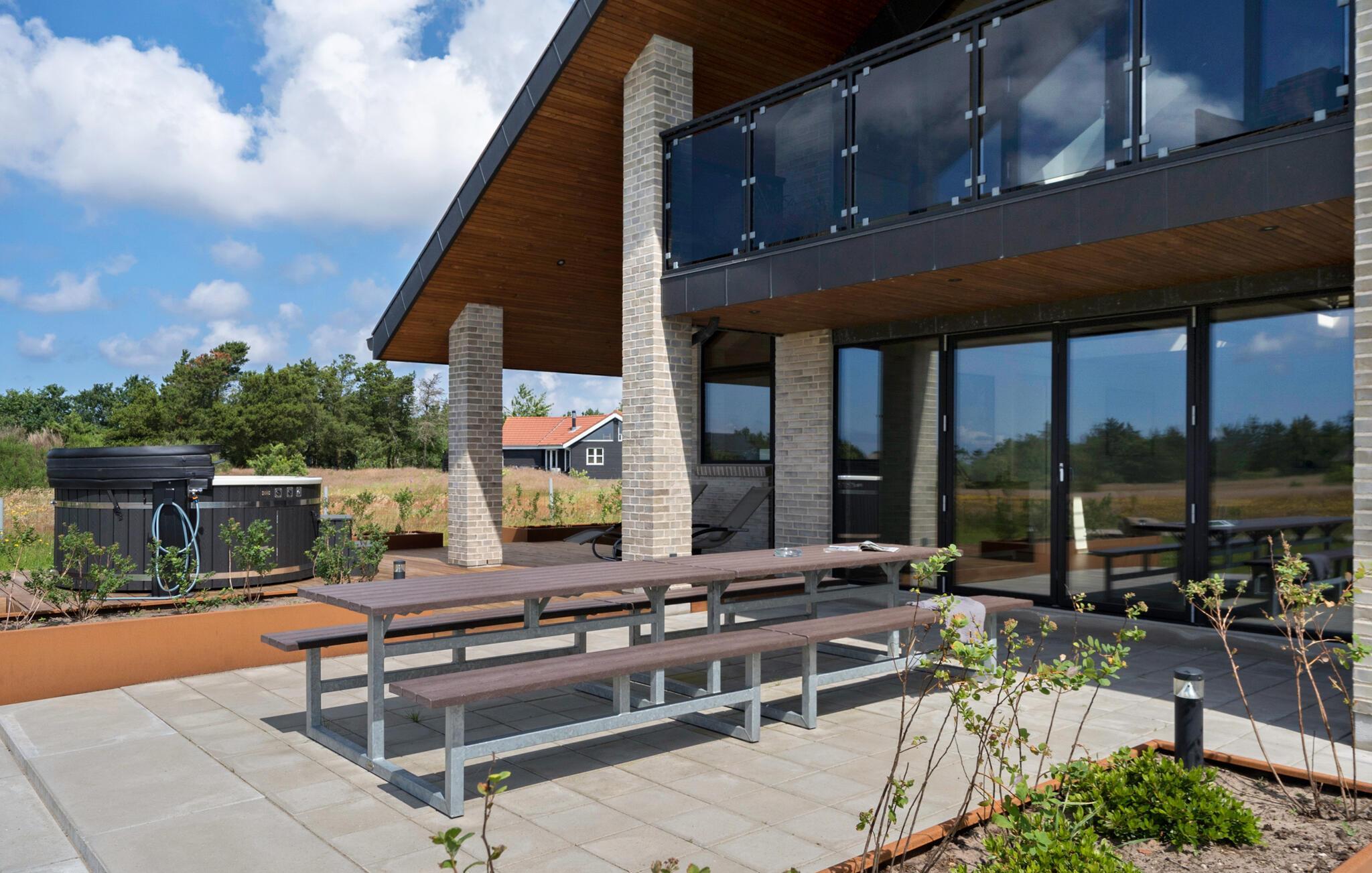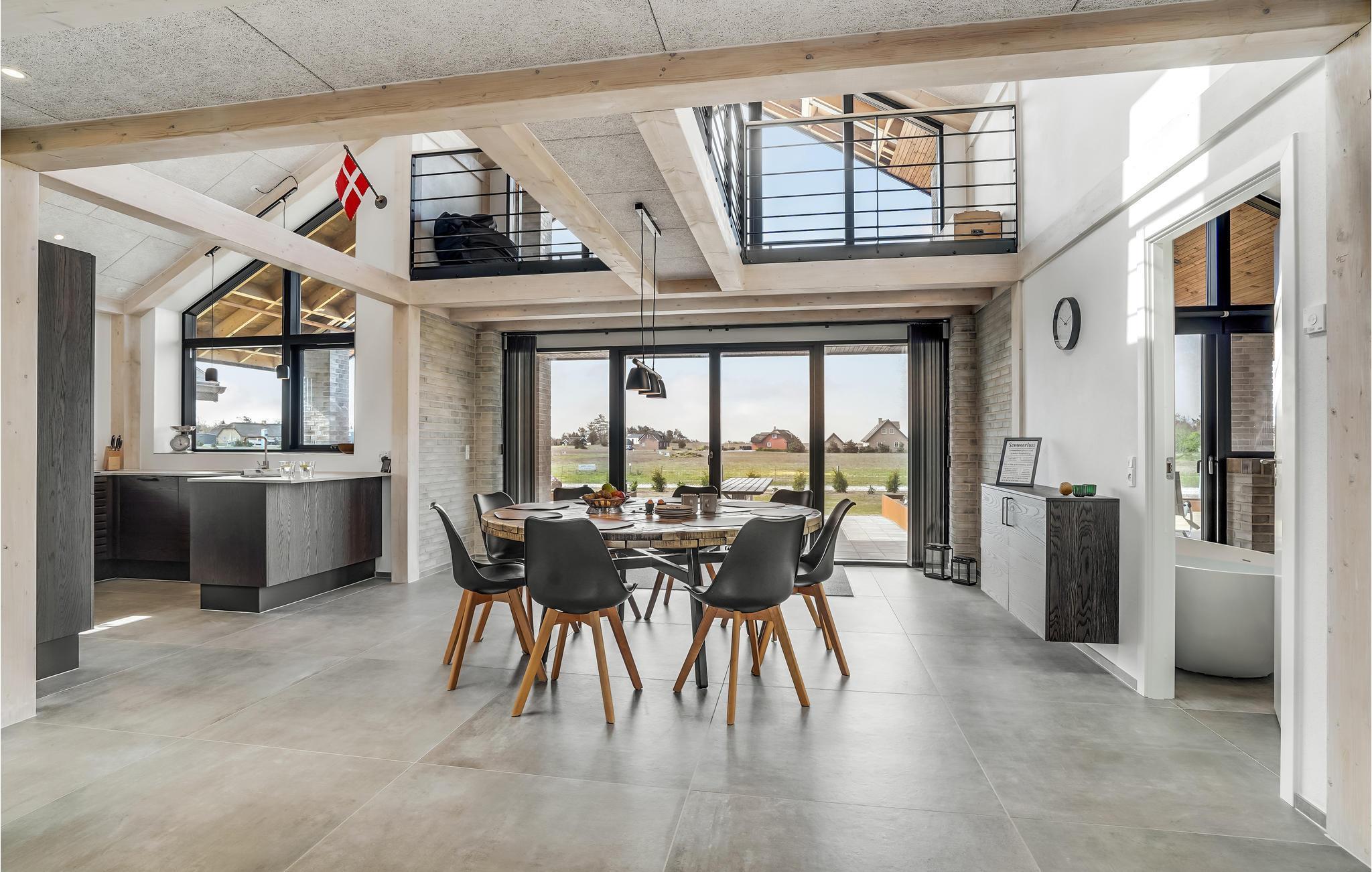 Oplev et arkitekttegnet luksushus ved Ringkøbing Fjord med sauna, vildmarksbad og aktivitetsrum for hele familien.