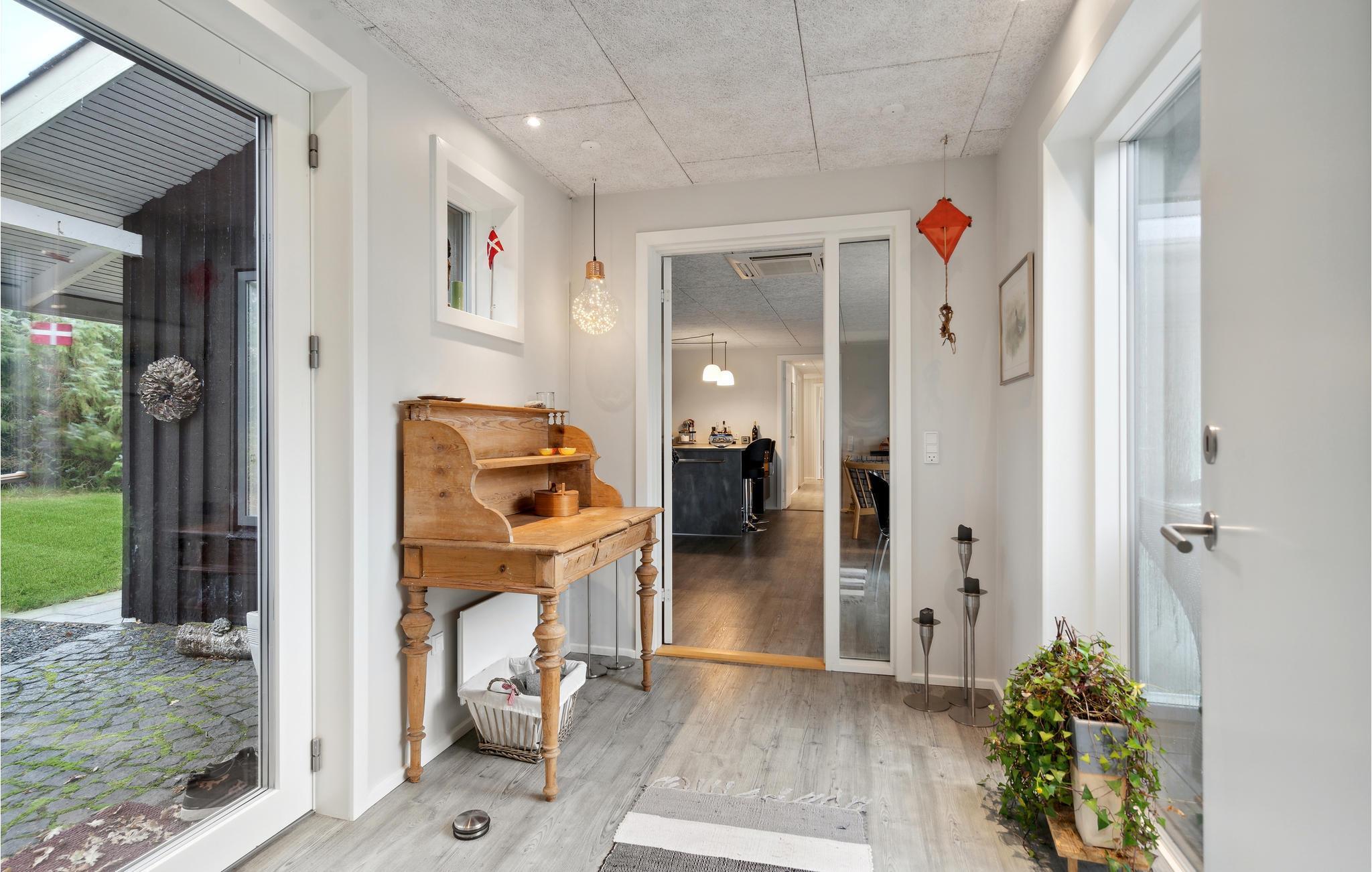Velkommen til dette stilfulde feriehus med høj komfort og et skønt opholdsrum, der indbyder til samvær med familien. Glæd jer til det store, moderne køkken, som indbyder til at afprøve nye opskrifter og fordybe sig i kulinariske smage. Om aftenen kan I slappe af foran brændovnen med benene oppe og se en spændende film. Nyd en dejlig wellness-stund i vildmarksbadet under stjernerne og slap af i det varme vand. Det ultimative sted for afstresning.
