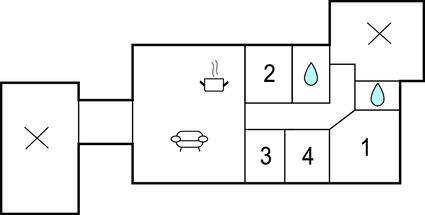 Badeværelse (nr. 1) - WC. Varmt og koldt vand. Bruser