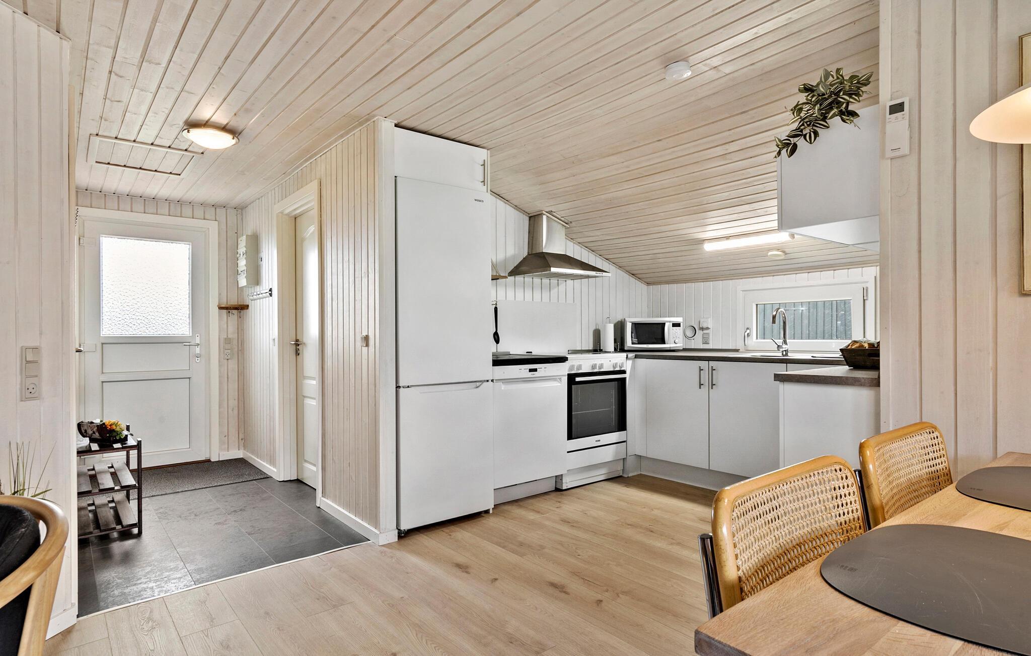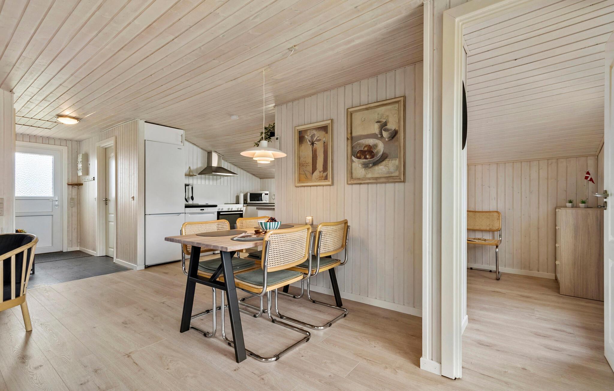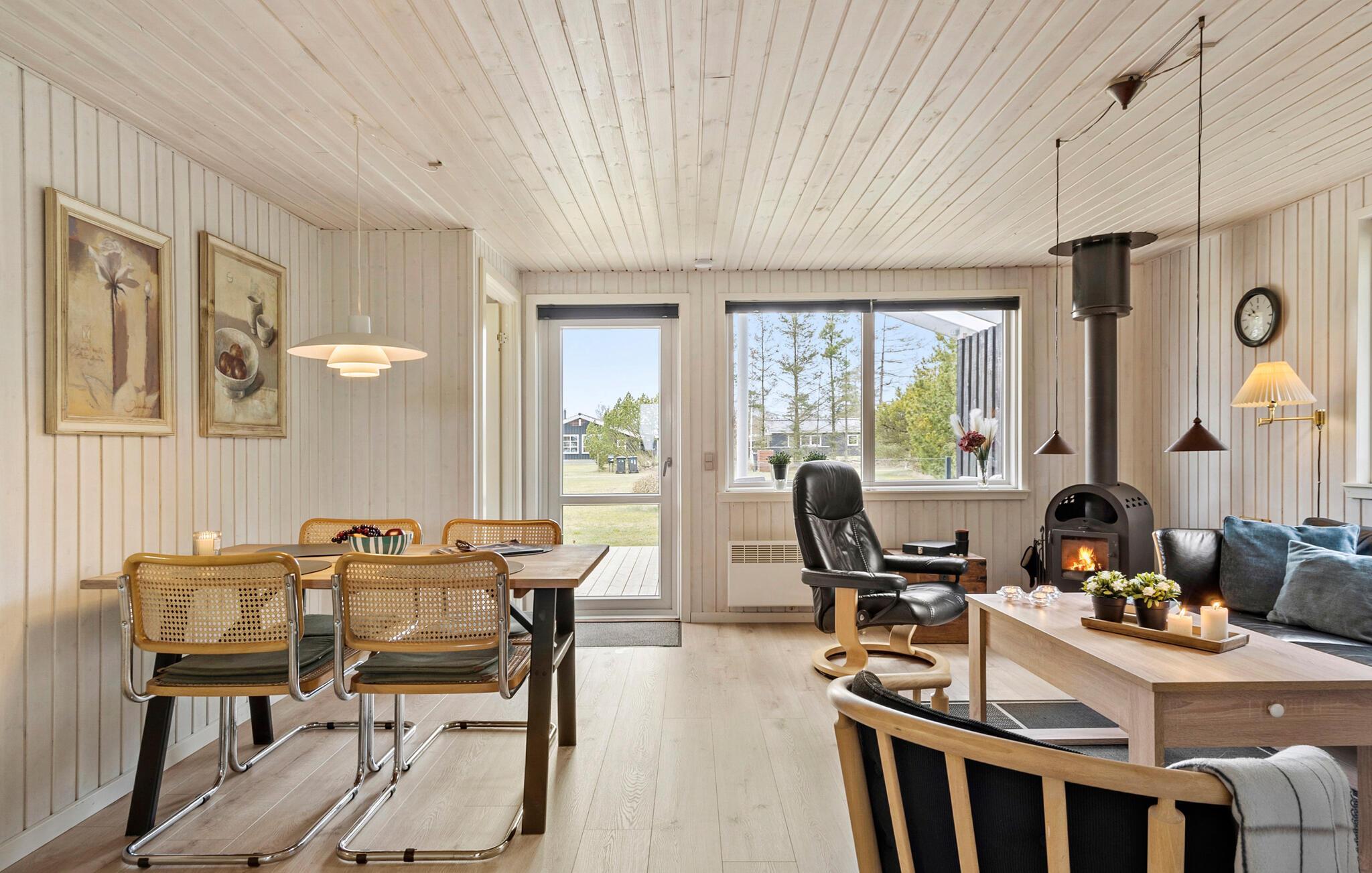 Giv jer selv en velfortjent pause fra hverdagen og tilbring en skøn ferie med familien i dette charmerende træhus i Stauning. Indretningen fremtræder lyst og funktionelt med varme træpaneler og gode møbler, der lægger op til afslapning og hygge i godt selskab. Lad amatørkokkene kræse om jeres livretter i køkkenet, mens andre spiller kort eller læser en god bog i sofahjørnet. På de køligere dage kan I skrue ekstra op for hyggen og fyre op i brændeovnen, hvis varme og rolige knitren er med til at skabe en virkelig rar atmosfære.