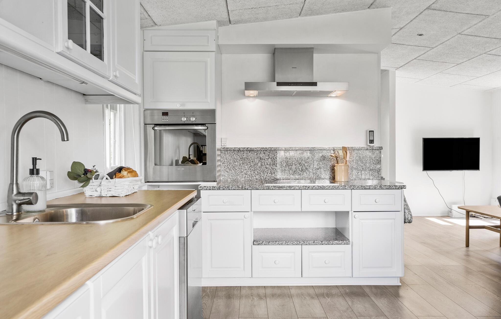 Velkommen til dette indbydende hus, en lille gåtur fra fjorden, hvor I rigtig kan nyde jeres feriedage. Boligen er lys og moderne med store lysindfald, så her får I gode rammer til at slappe af og koncentrere jer om at holde fri. Efter en lang dag med spændende oplevelser kan I dække op til en middag med udsigt til den grønne have og lægge planer for jeres næste udflugter og aktiviteter.