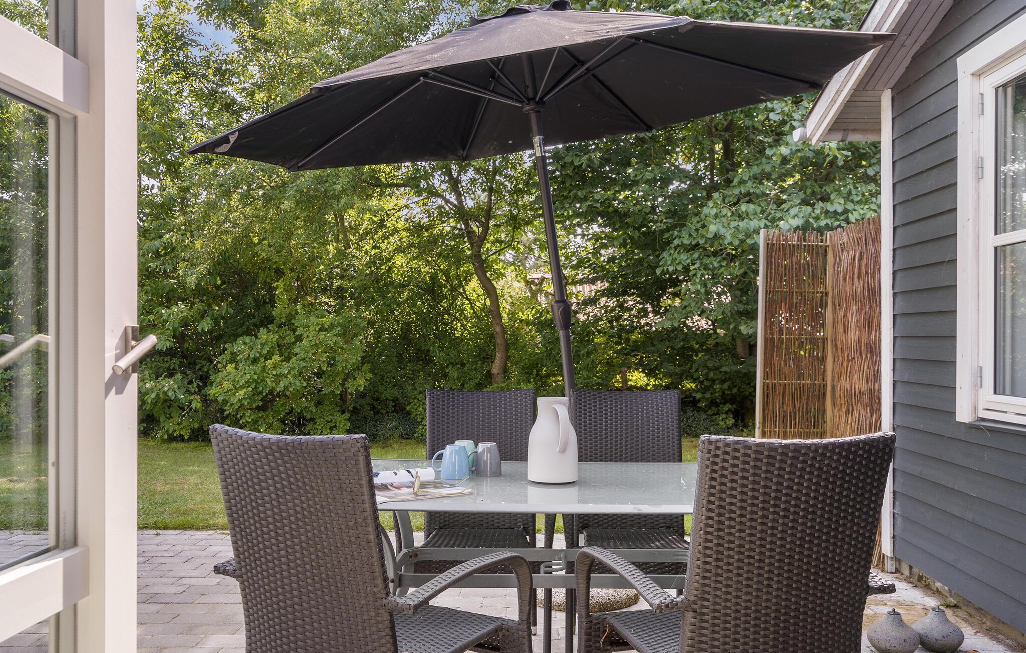 Nyd en fredelig ferie i moderne sommerhus tæt på Ringkøbing Fjord med have og terrasse.