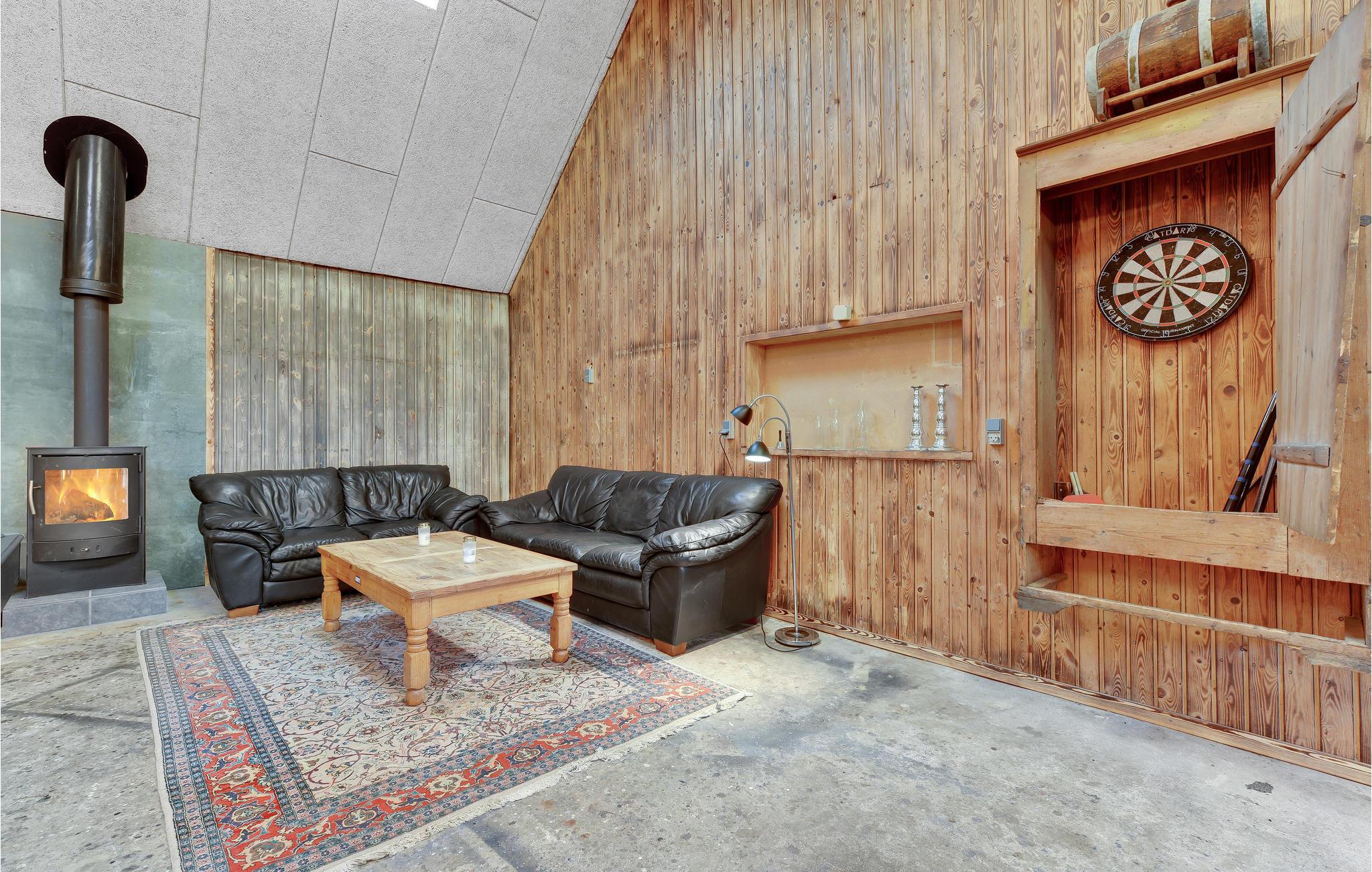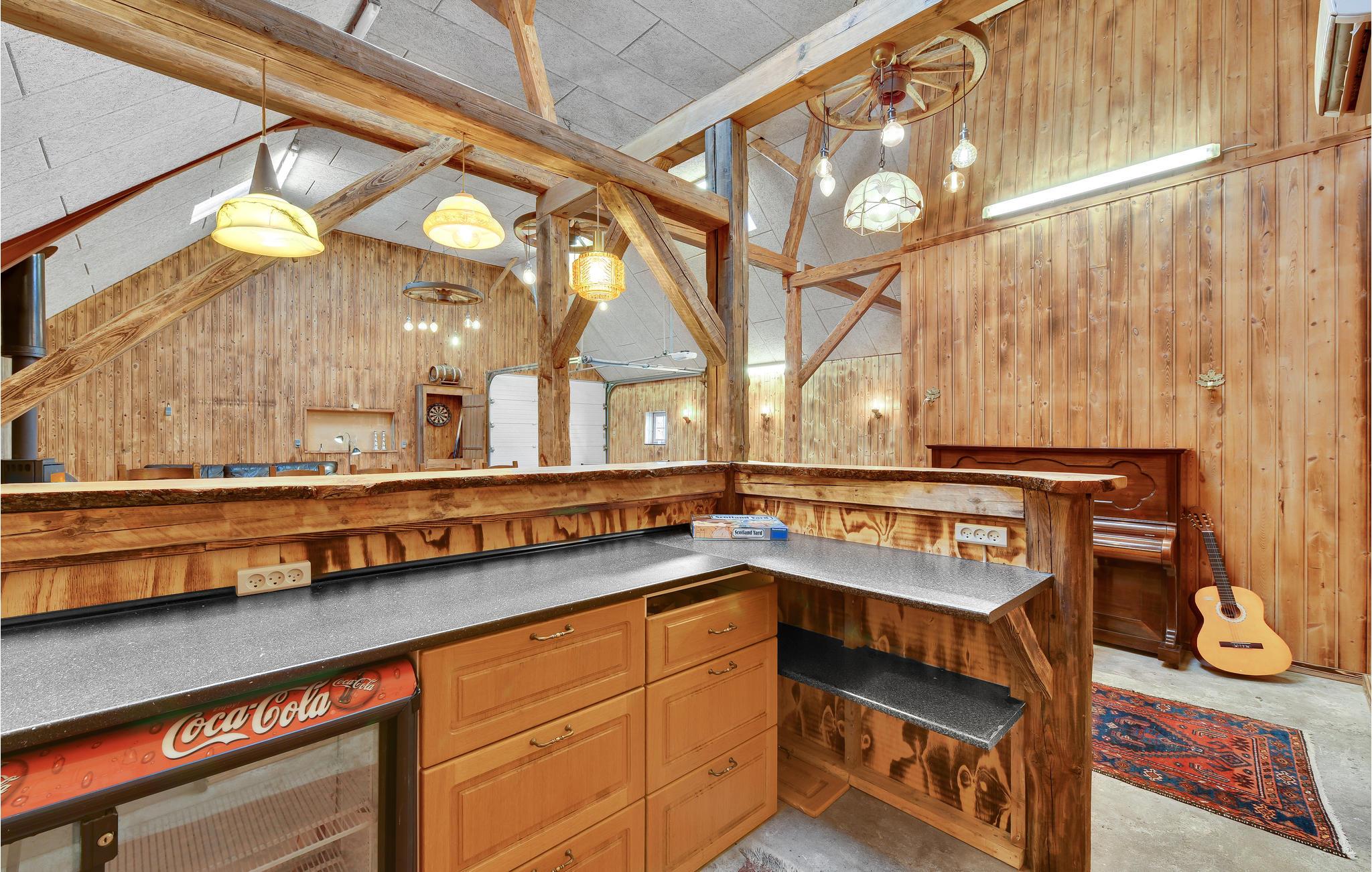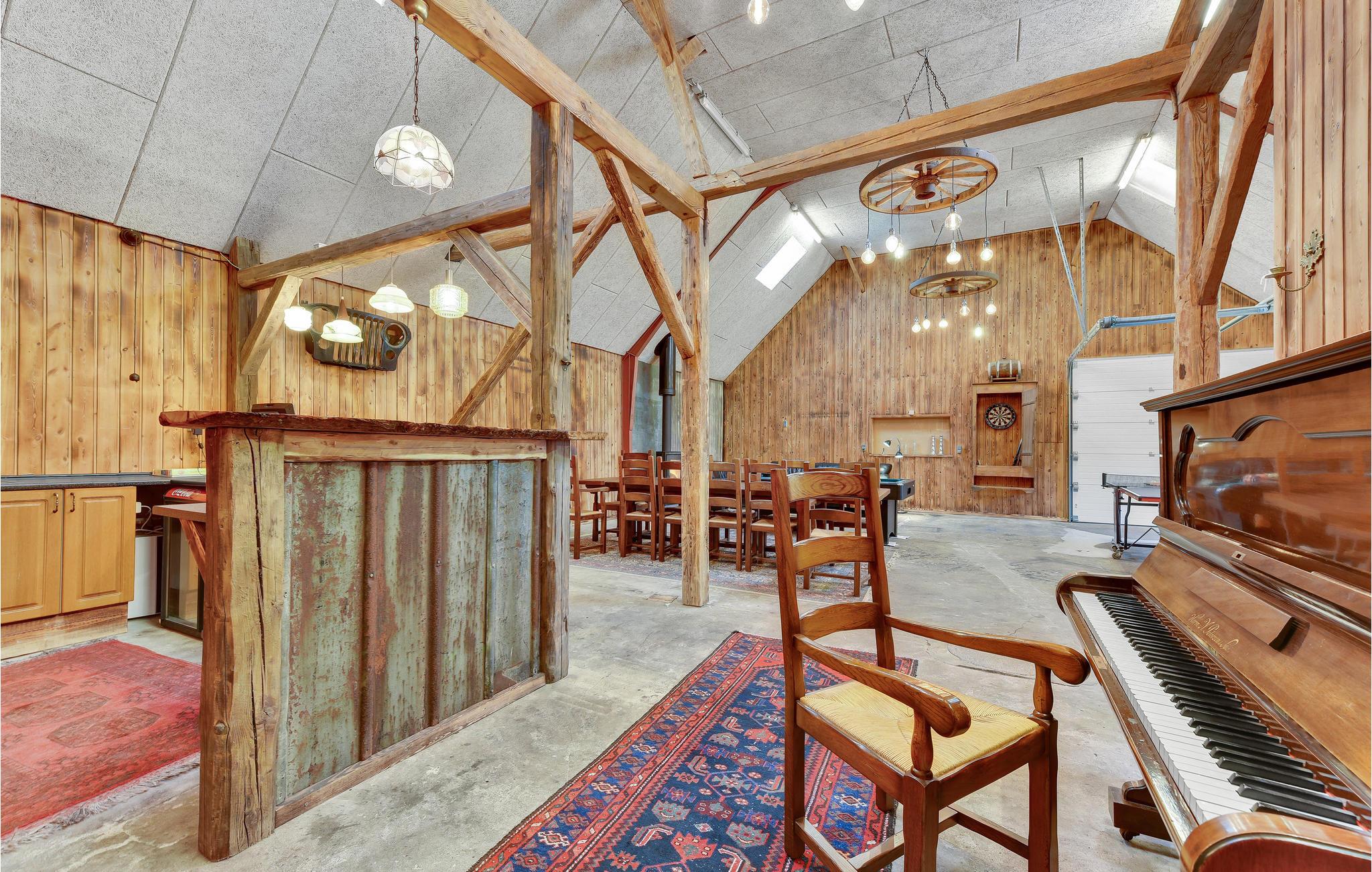 I spisestuen kan der dækkes op til alle husets gæster. Her findes endvidere 2 opholdsstuer med tv og behagelige møbler. Fra terrassen kan I gå over i det store aktivitetsrum, der er indrettet både med billard, bordtennis, bordfodbold, dart, en lækker bar, brændeovn og varmepumpe, og der er god plads til, at I kan udfordre hinanden i forskellige turneringer. I tilknytning til aktivitetsrummet findes 2 gæstetoiletter. Huset omkranses af skønne terrasser og steder, hvor I kan nyde den storslåede natur og udsigt. På grunden ligger en sø, hvori der kan fiskes, og vil I gerne på jagt, så kan det aftales med ejer.