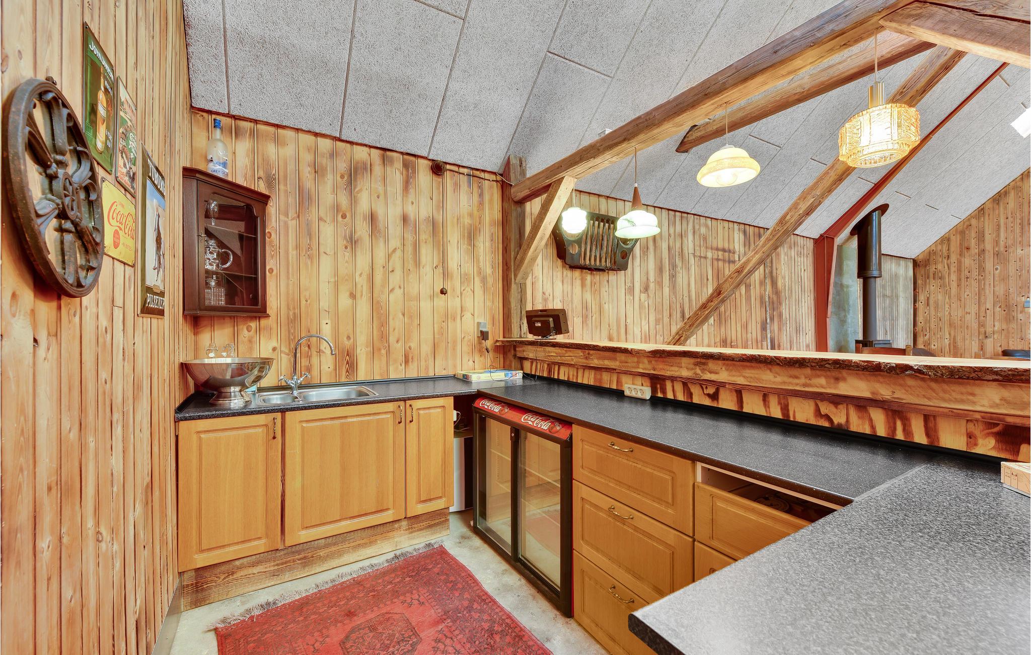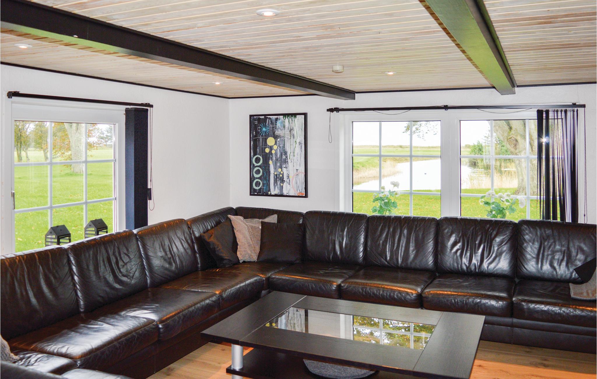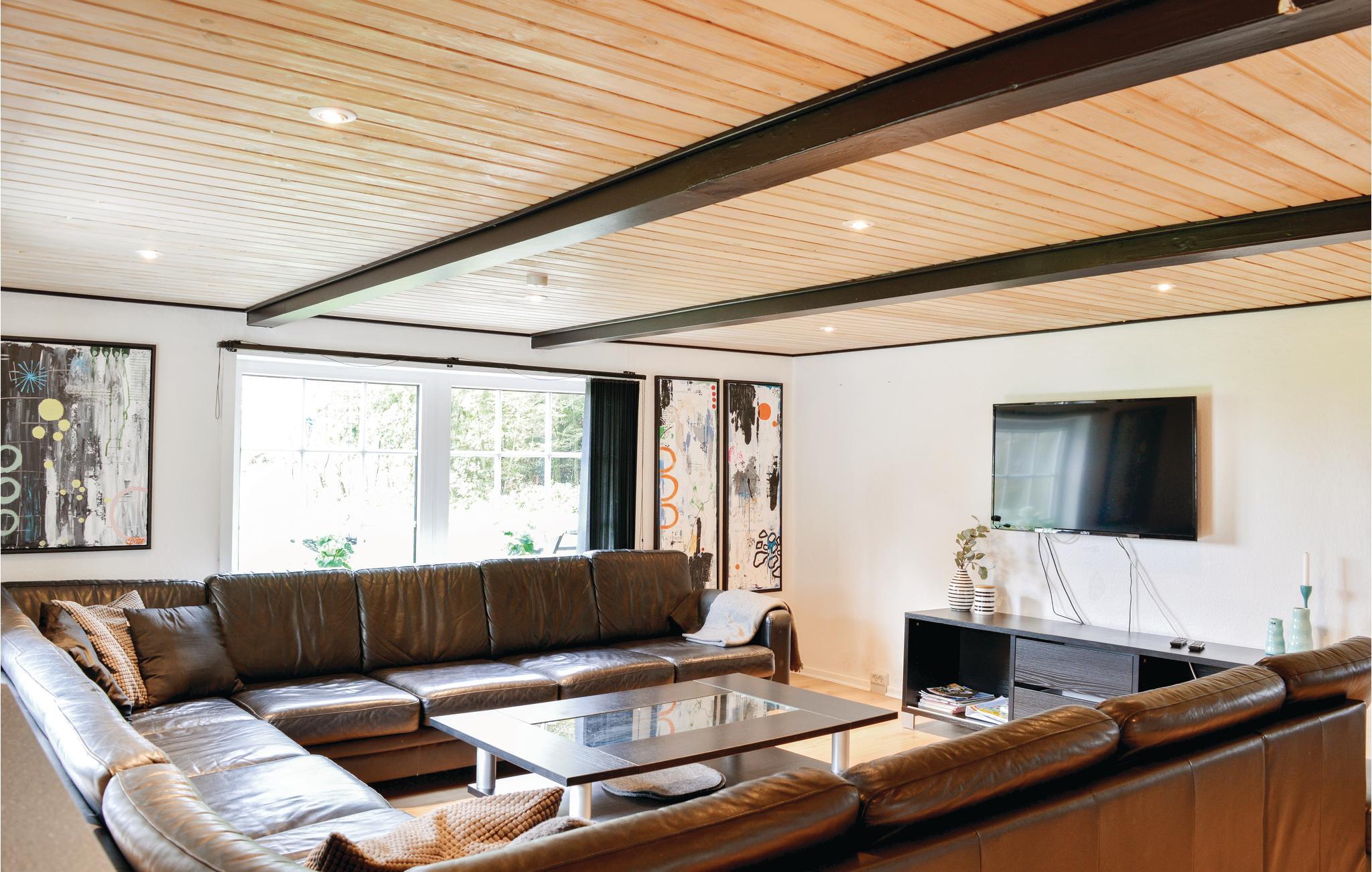 I spisestuen kan der dækkes op til alle husets gæster. Her findes endvidere 2 opholdsstuer med tv og behagelige møbler. Fra terrassen kan I gå over i det store aktivitetsrum, der er indrettet både med billard, bordtennis, bordfodbold, dart, en lækker bar, brændeovn og varmepumpe, og der er god plads til, at I kan udfordre hinanden i forskellige turneringer. I tilknytning til aktivitetsrummet findes 2 gæstetoiletter. Huset omkranses af skønne terrasser og steder, hvor I kan nyde den storslåede natur og udsigt. På grunden ligger en sø, hvori der kan fiskes, og vil I gerne på jagt, så kan det aftales med ejer.