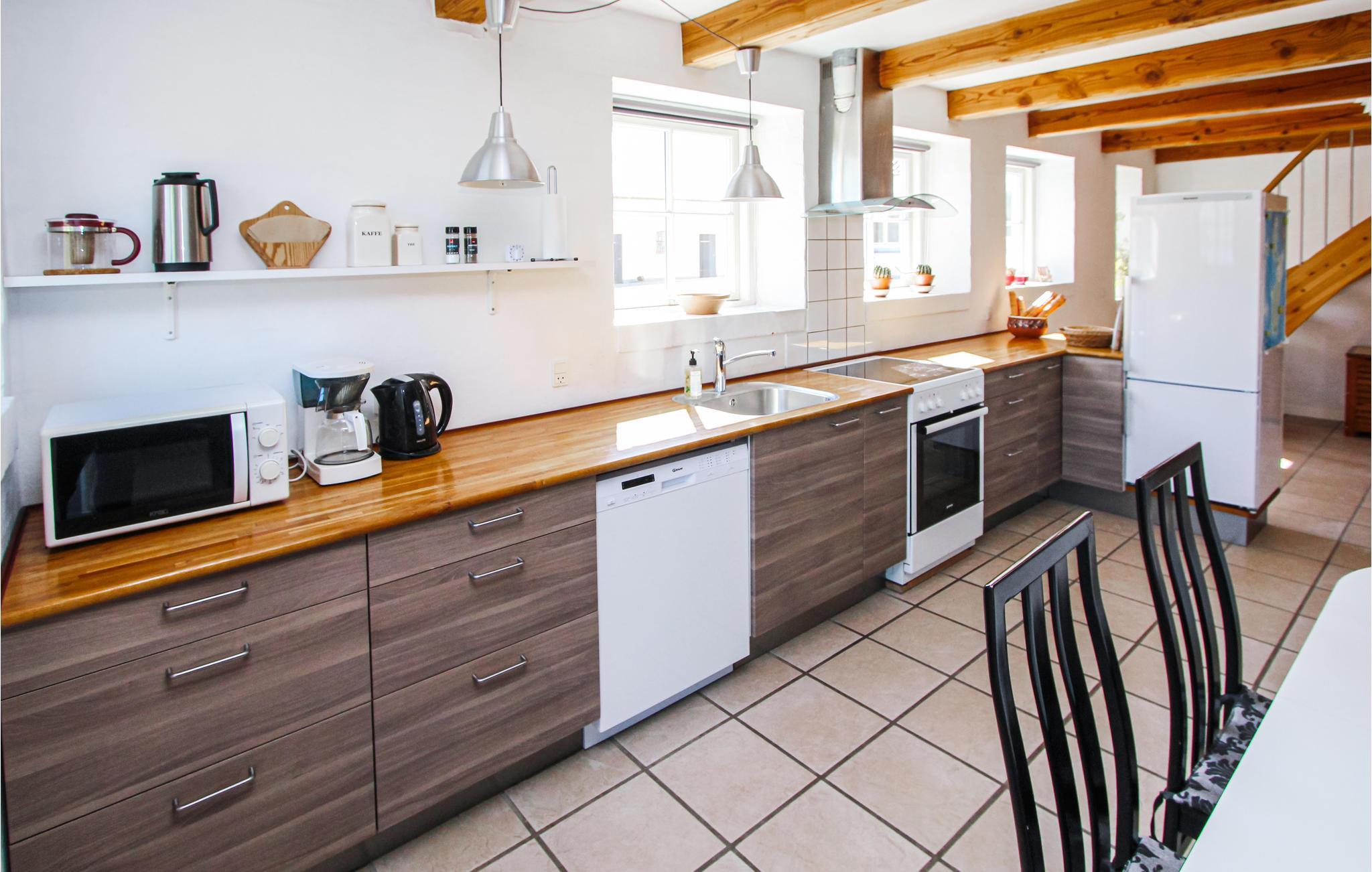 Feriehuset byder gæsterne velkommen på en ejendom direkte ud til Stavns Fjord. I vil føle jer hjemme i de lyse værelser. Loftsbjælker, trapper og gulve af træ giver huset et varmt udtryk. Tilbered måltider sammen i det rummelige køkken, og spis udenfor på terrassen med udsigt over fjorden. Bagefter kan I slappe af i en af liggestolene i denne magiske kulisse, inden I senere går en tur til stranden.