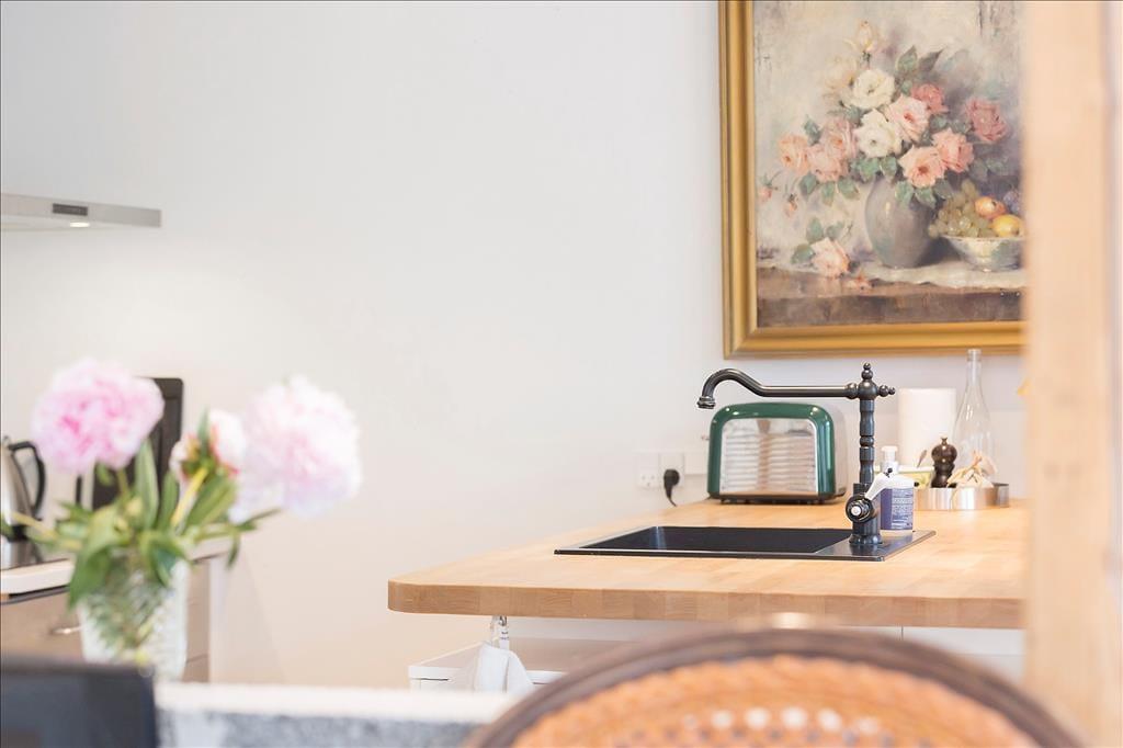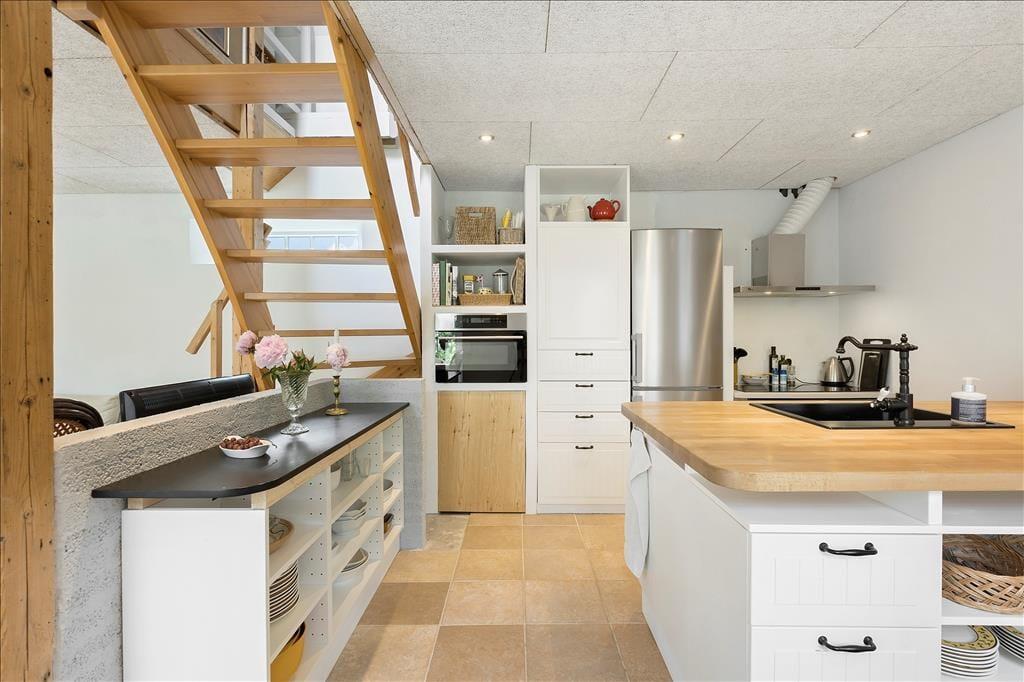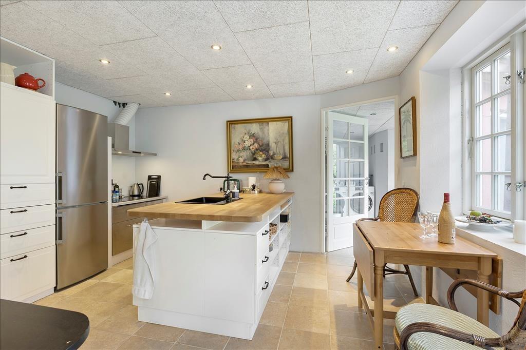 Her kan I holde den perfekte ferie, og bo centralt i en af de gamle gader i den gamle hyggelige købstad. Huset er renoveret i flere omgange og her er lyst og dejligt med en åben planløsning, så I kan være sammen, når der skal laves et af dagens måltider, eller lægges planer for næste dags oplevelser. Her er en fin entre med vaskemaskine og tørretumbler og adgang til toilet. På 1. sal er der et dejligt soveværelse med en dobbeltseng og et dejligt badeværelse.