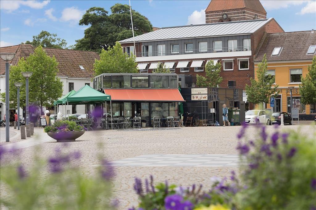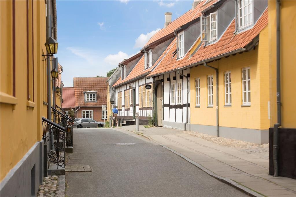 Her kommer I til at bo på Møllebrøndstræde som munder ud i byens handelsgade Storegade.