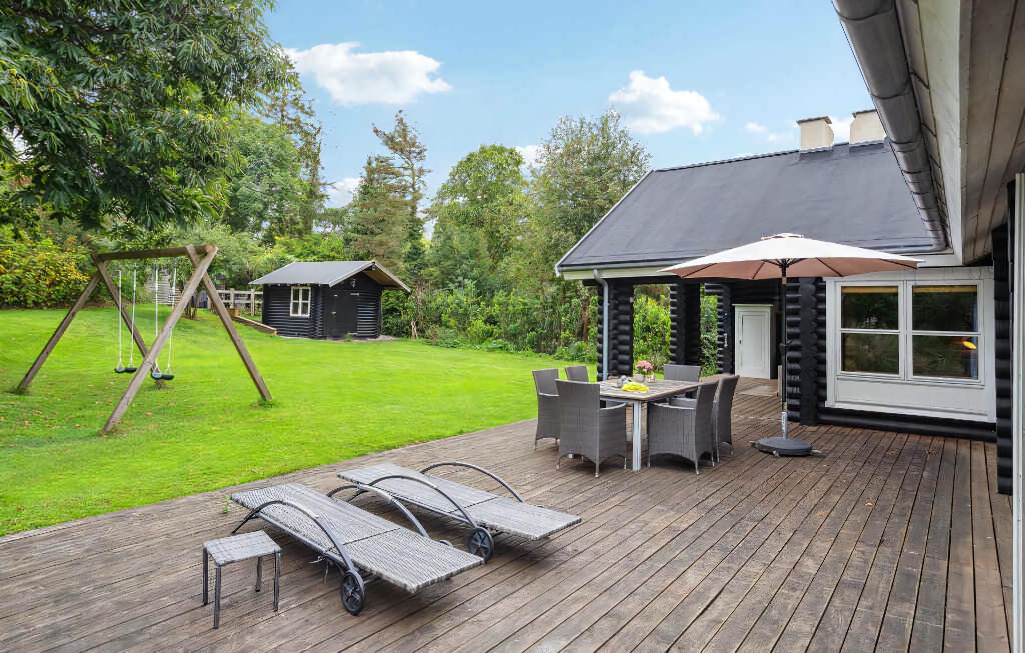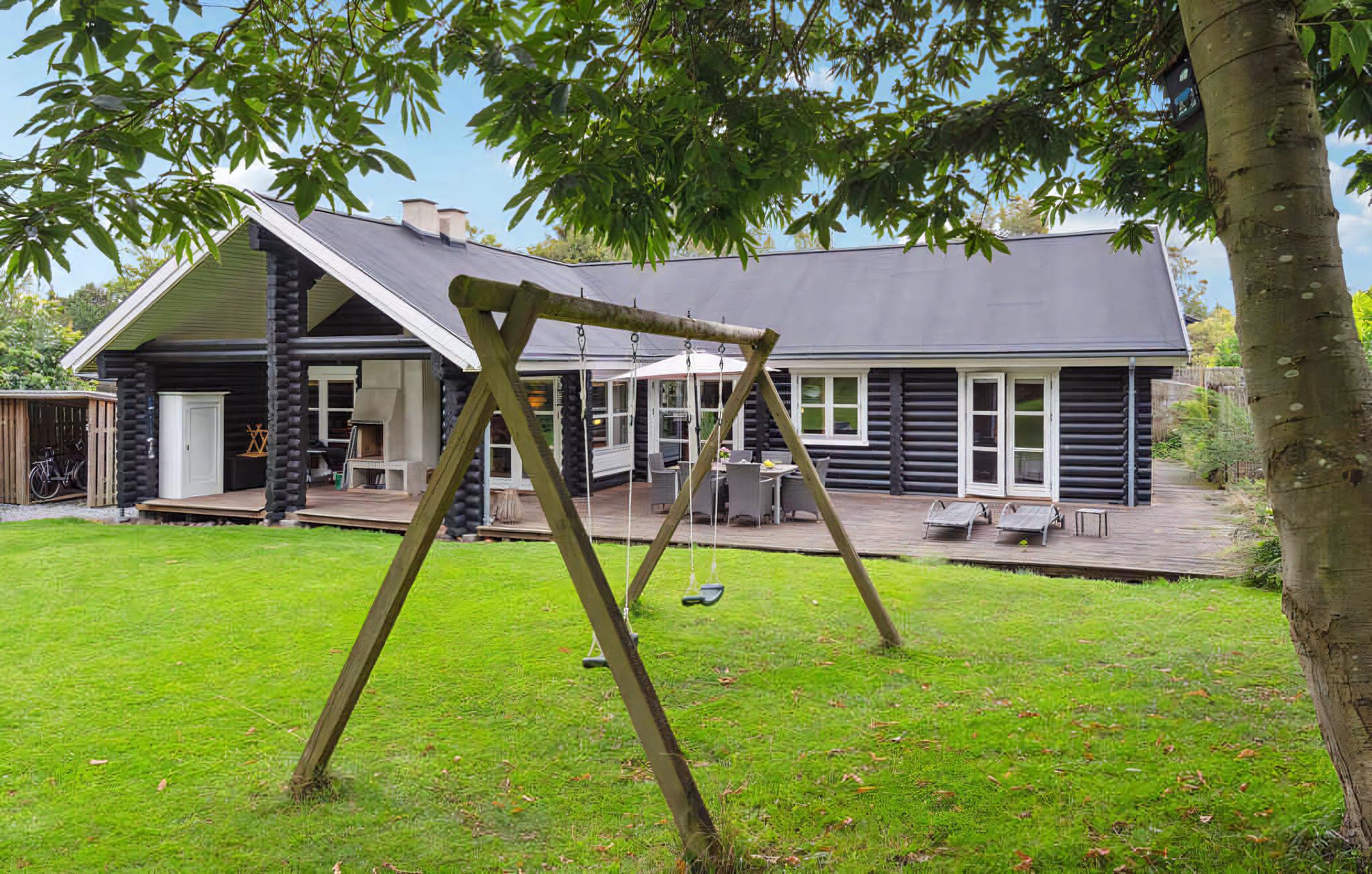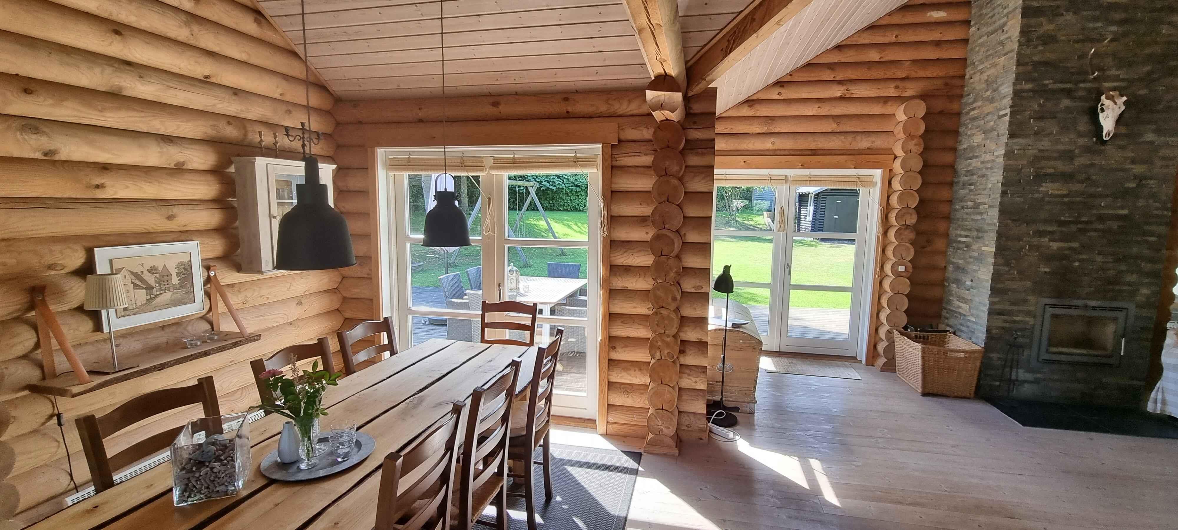 Super hyggeligt bjælkehus med brændeovn, beliggende på en helt ugenert grund. Badeværelset har spa og sauna, og der er desuden en udebruser med varmt vand. Køkkenet er meget veludstyret. Huset har internet, to varmepumper og et smart-TV