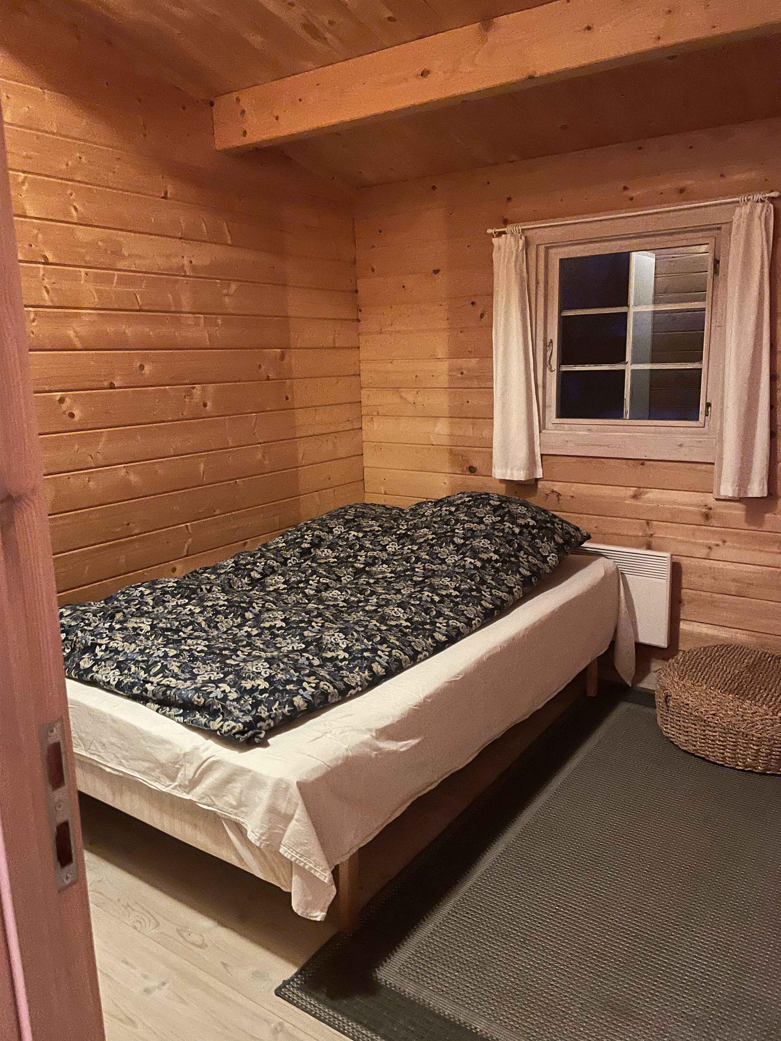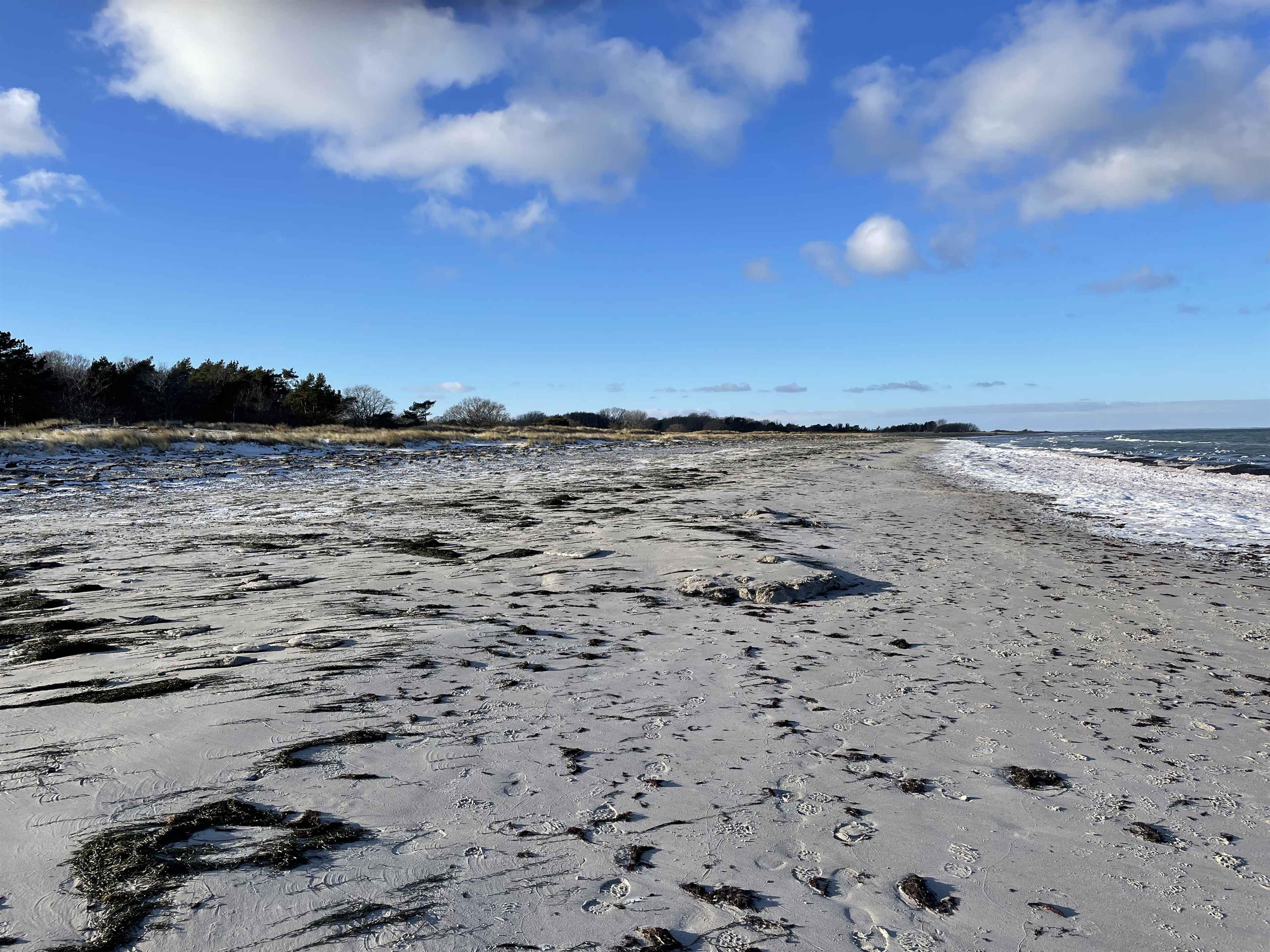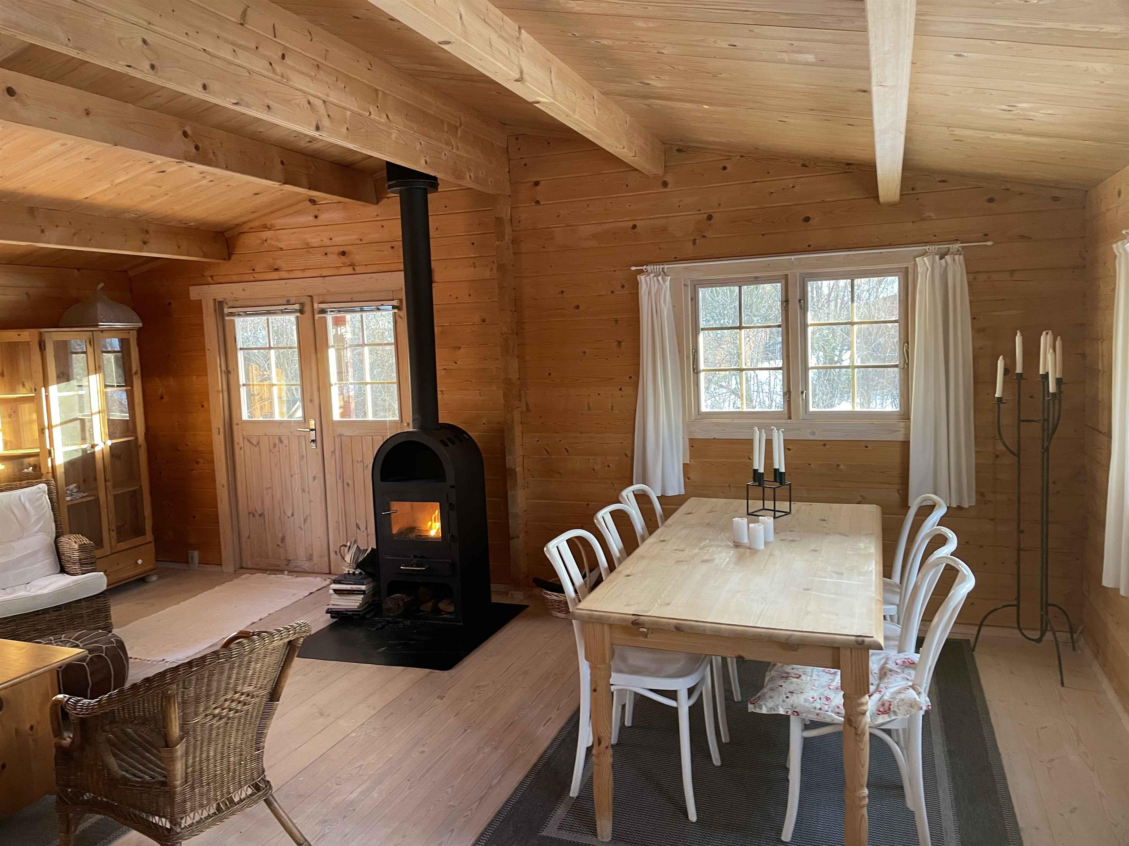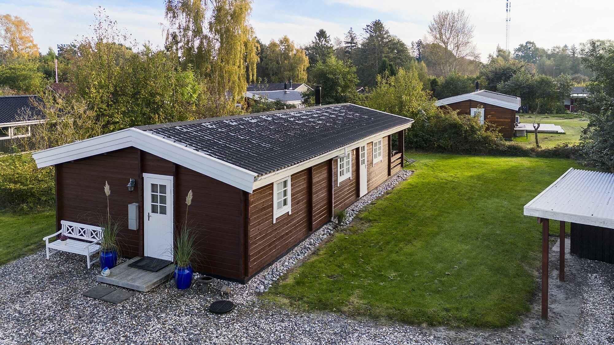 Charmerende bjælkehus på 75 m² med 3 soveværelser og 6 sovepladser. Lyst stue-køkken i åben forbindelse, badeværelse med sauna og udgang til veranda. Fredelig beliggenhed for enden af lukket vej, kun 300 m fra Ulvshale Strand.