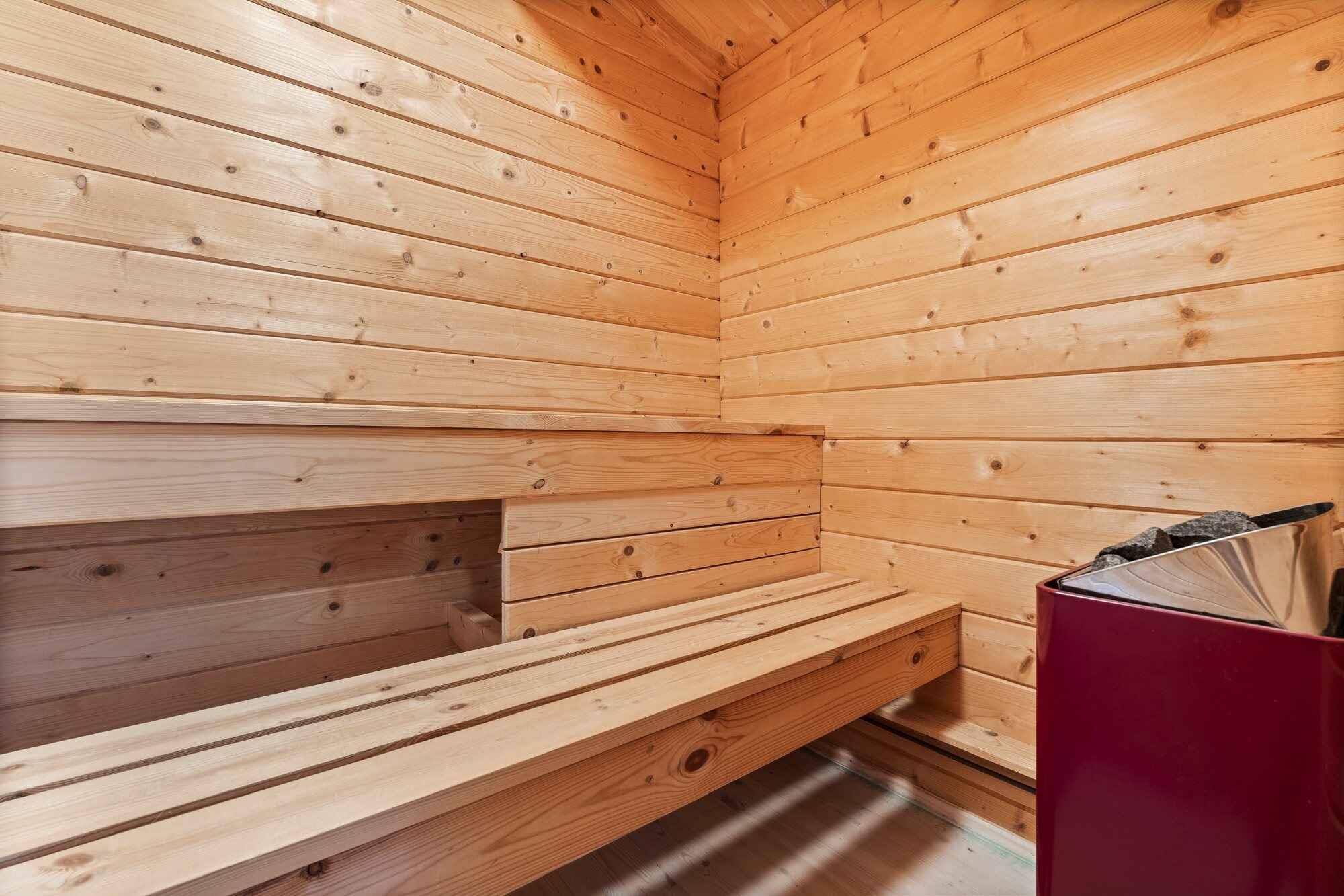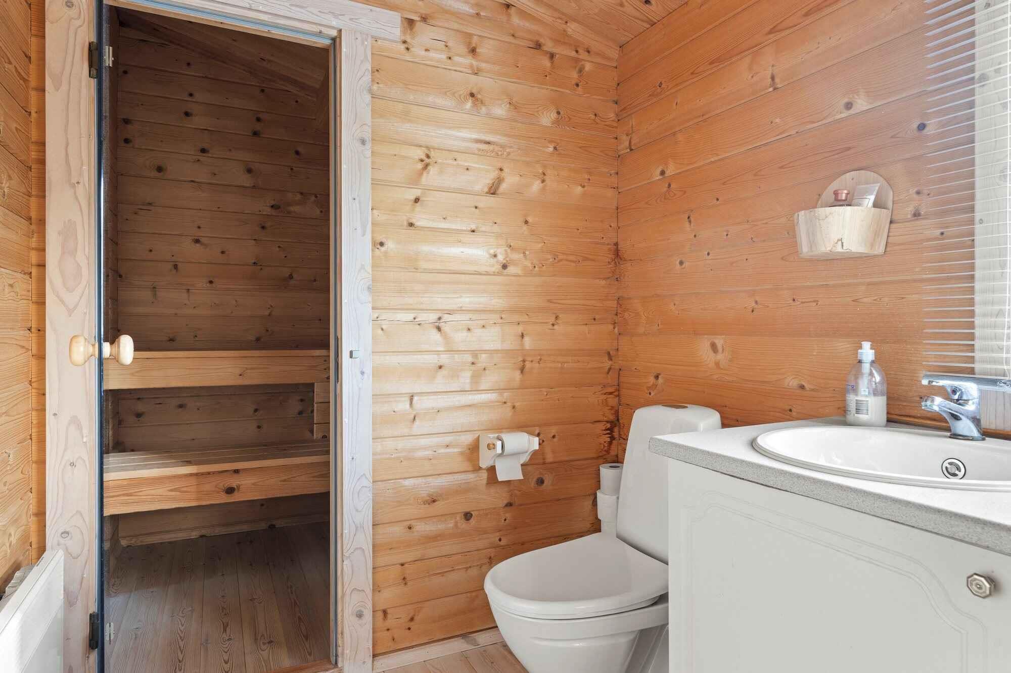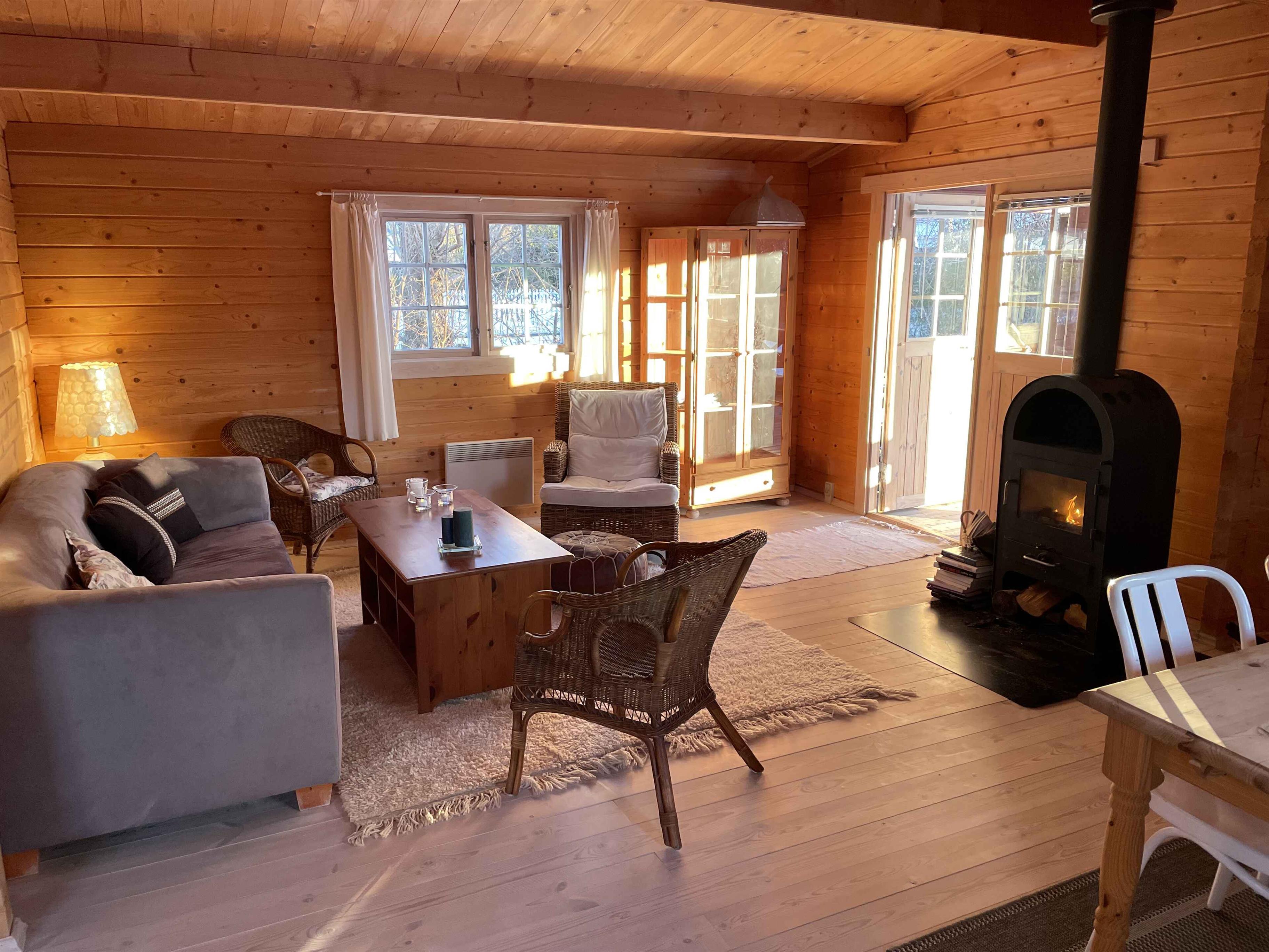 Charmerende bjælkehus tæt på Ulvshale Strand med sauna, veranda og moderne faciliteter for en afslappende ferie.
