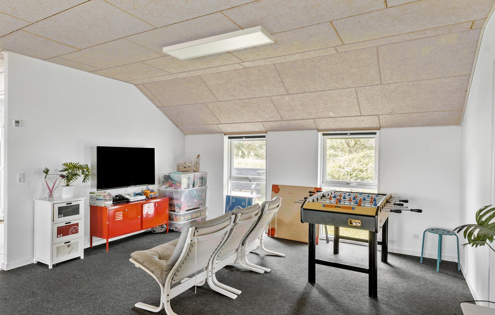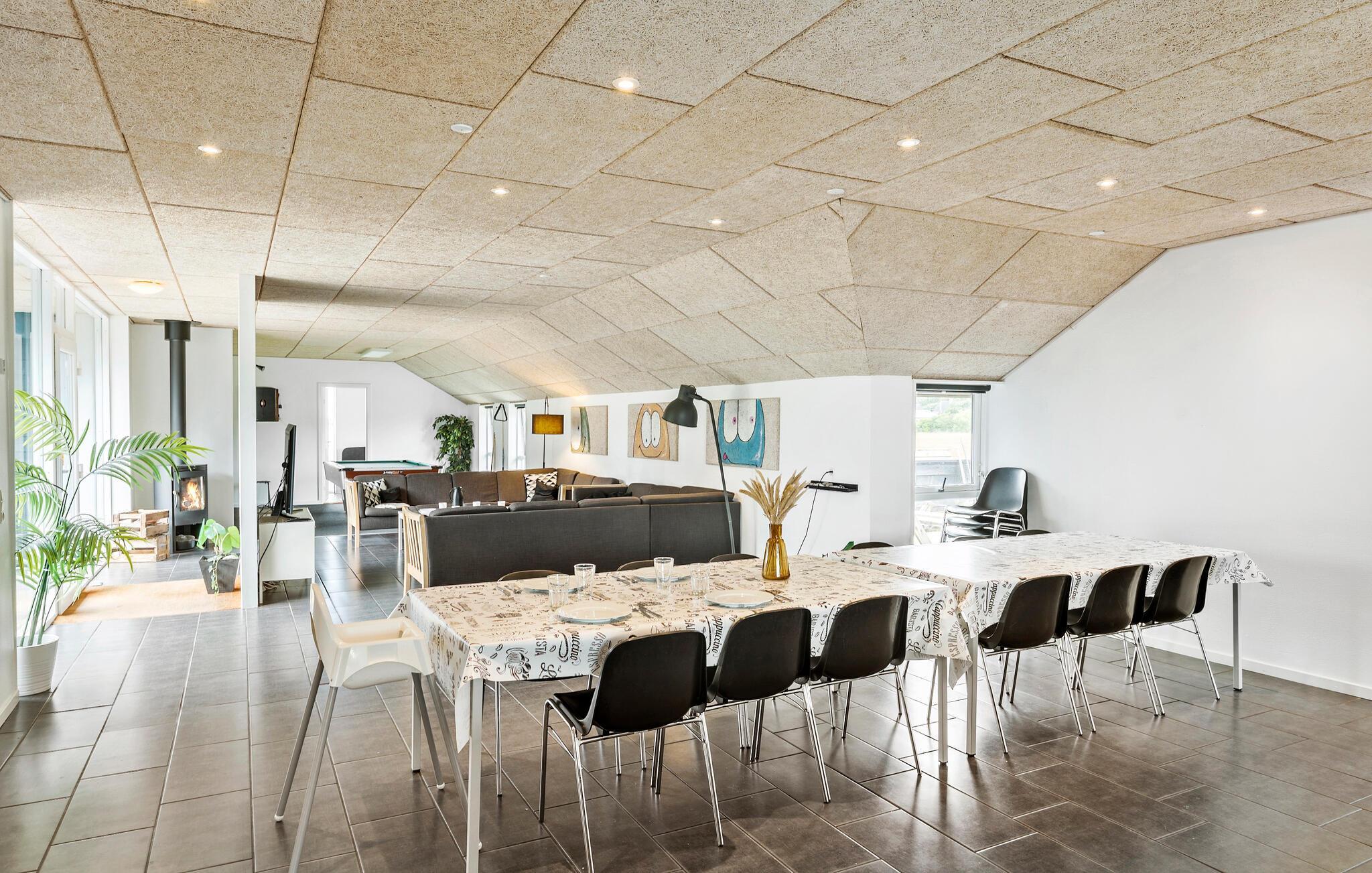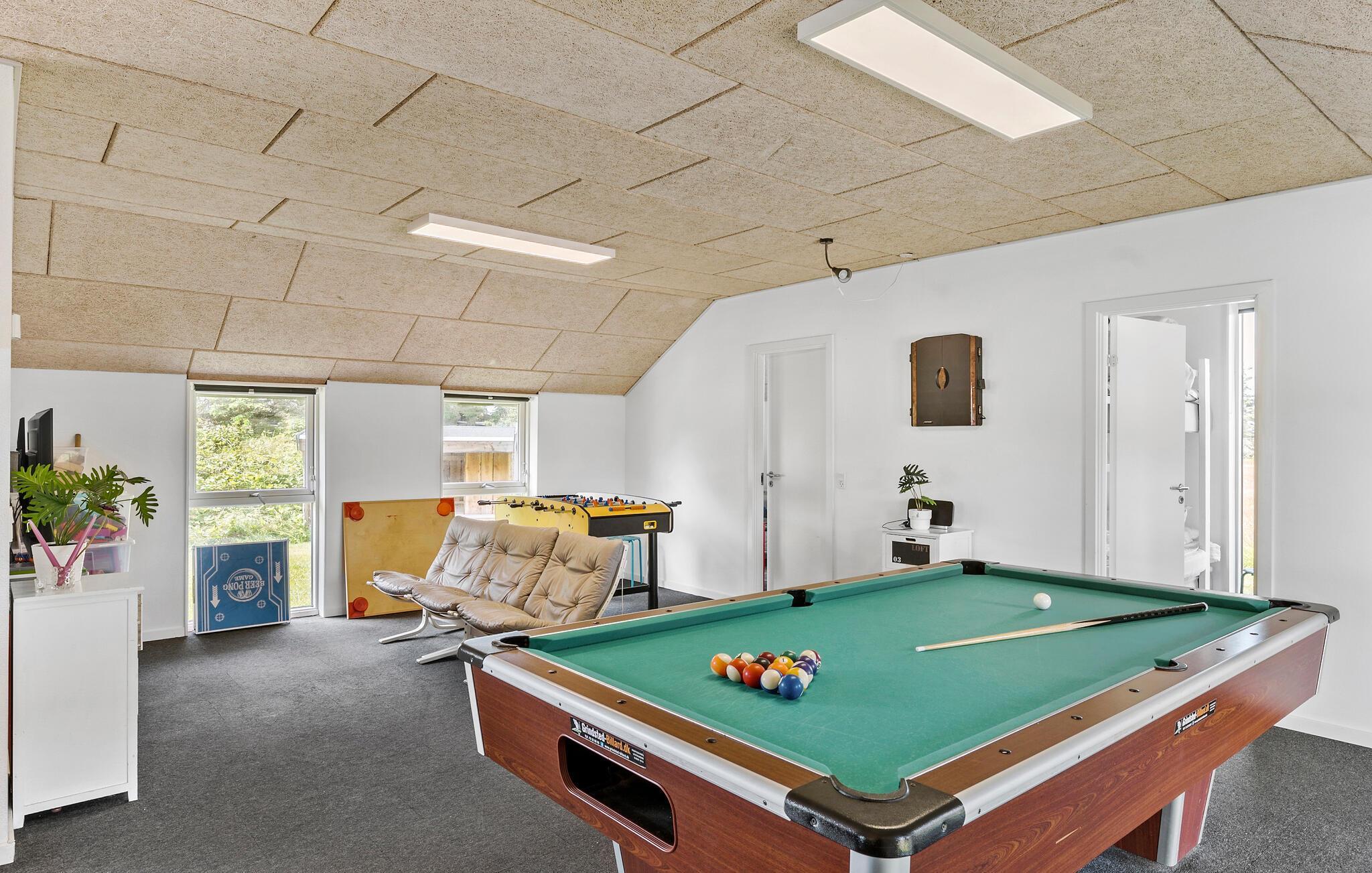 Skal I afsted hele den store familie, eller er I måske flere familier, der skal på ferie sammen, så er dette sommerhus et godt bud. Her får I plads til afslapning i sofahjørnet med en god film på tv’et, sjove aktiviteter for både store og små i aktivitetsrummet og badeture i poolen når end det passer. Brug det fuldt udstyrede køkken til at tilberede jeres yndlingsretter og server dem ved det lange spisebord, som byder på masser af plads til hyggelige måltider.