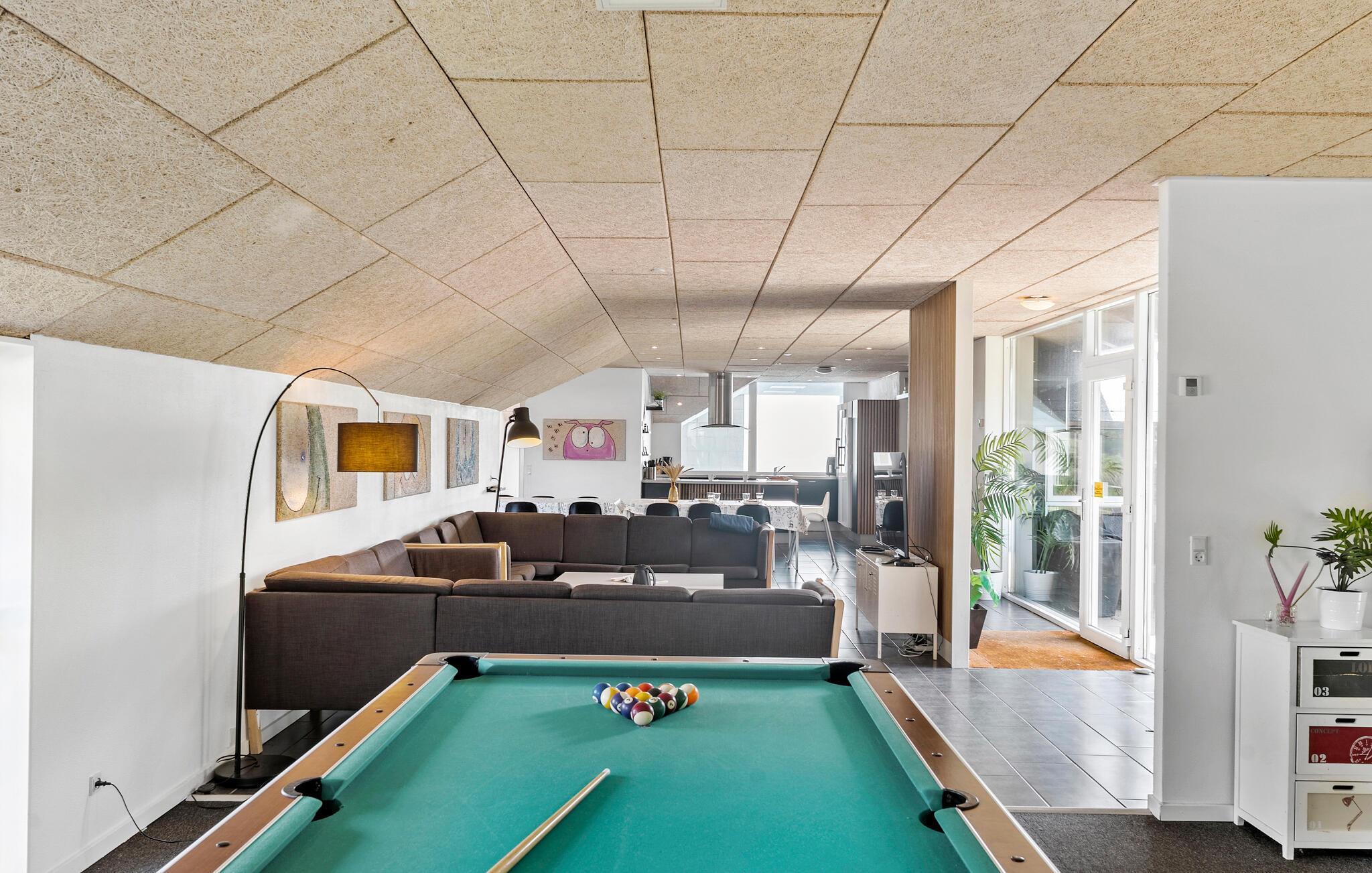 Stor feriebolig ved Stenbjerg Strand med pool, spa, aktivitetsrum og plads til flere familier.