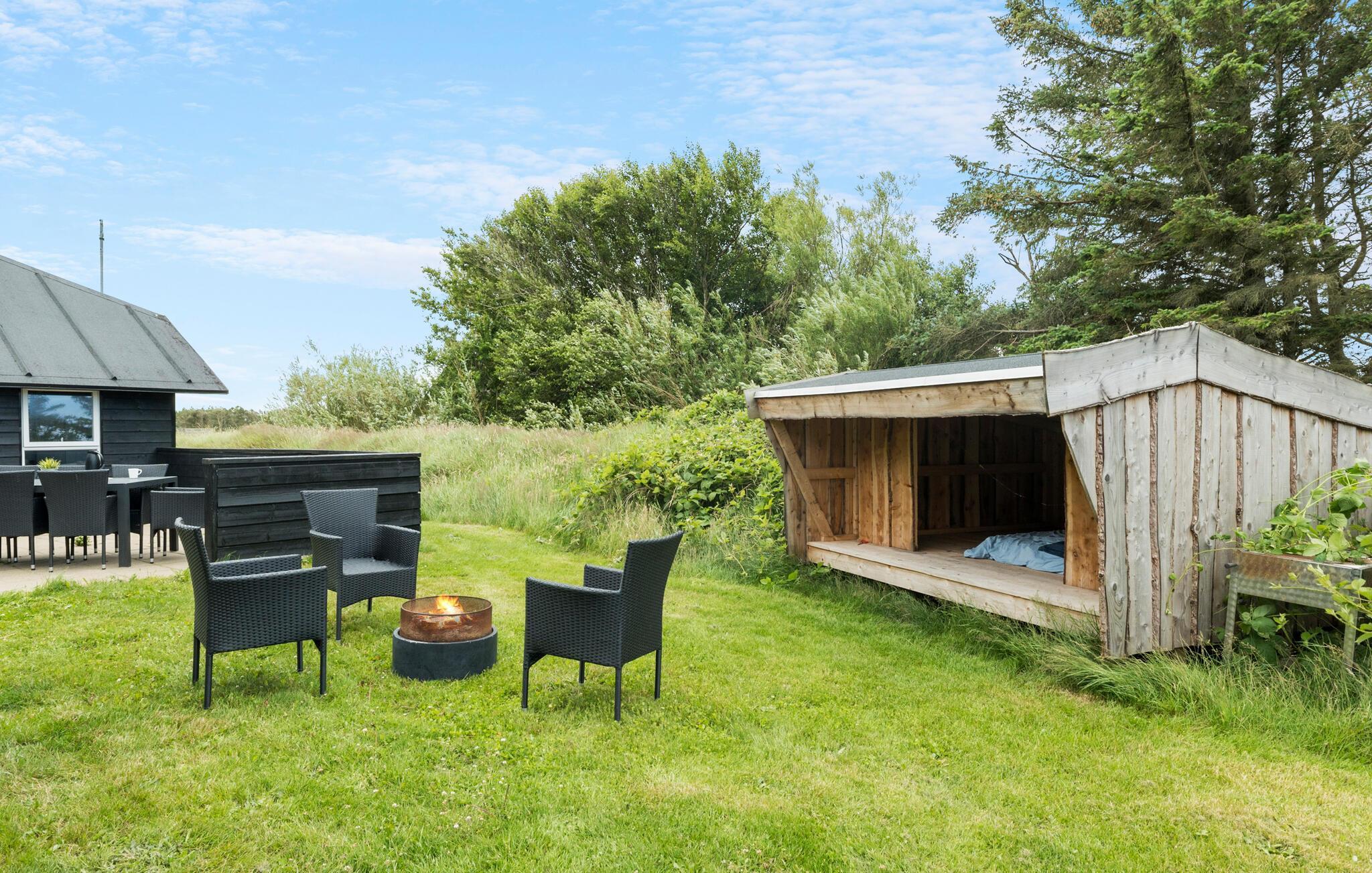 Hvis vejret viser sig fra sin gode side, kan I dække op ude på terrassen og måske smække noget lækkert på grillen. Her er der også plads til afslapning i havemøblerne, mens børnene undersøger haven, som bugner af sjove aktiviteter. Alt fra fodbold og gynge til bål om aften og overnatning i shelter.