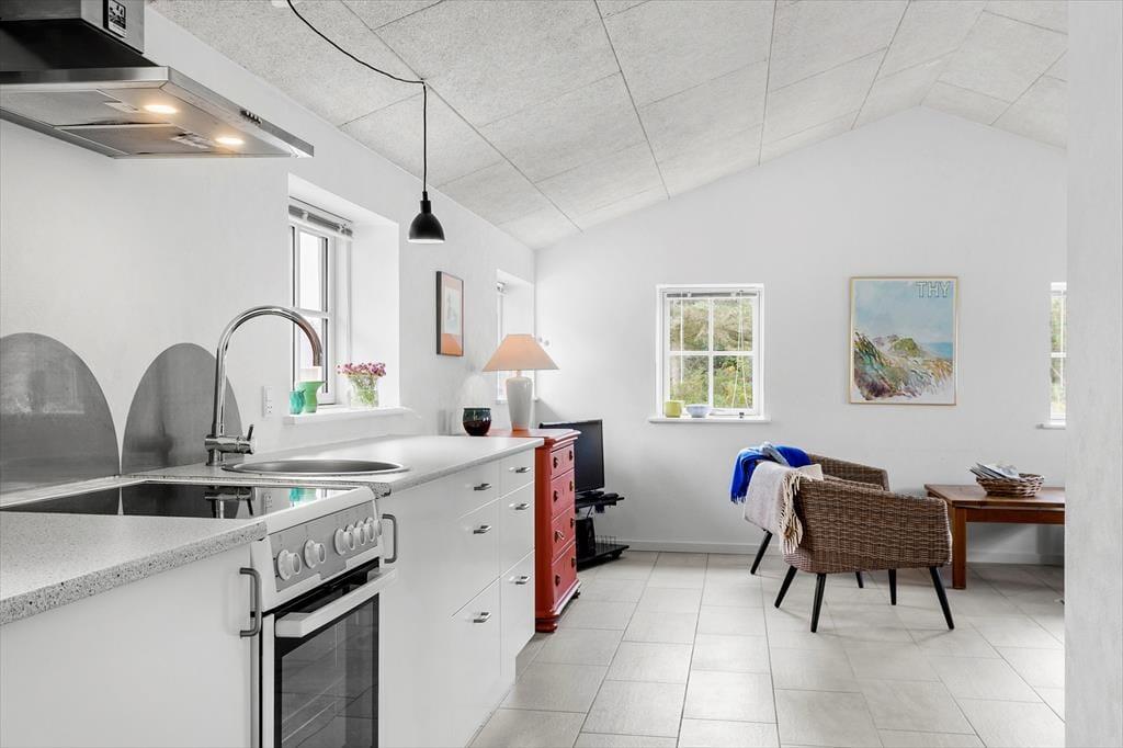 Istrupvej 48 ligger i naturområdet Istrup ca. 4 km syd for det idylliske Stenbjerg, en lille fiskerby kendt for sin autentiske charme og beliggenhed midt i Nationalpark Thy. Her kan du starte dagen med en frisk gåtur til Vesterhavet, hvor bølgerne inviterer til både afslapning og aktivitet. Besøg den historiske Stenbjerg Landingsplads og dens små hvide fiskerhuse, der fortæller historier om områdets maritime arv. Med kort afstand til populære destinationer som Klitmøller – Cold Hawaii – og Thisted, er der også rig mulighed for at udforske lokale caféer, specialbutikker og kulturelle oplevelser.