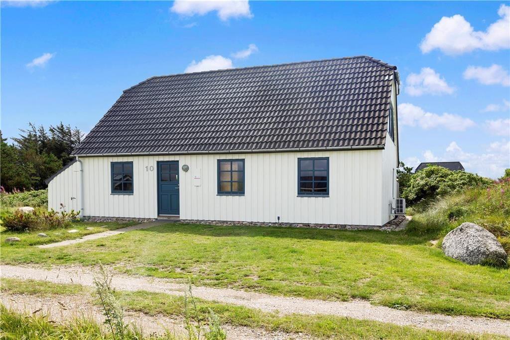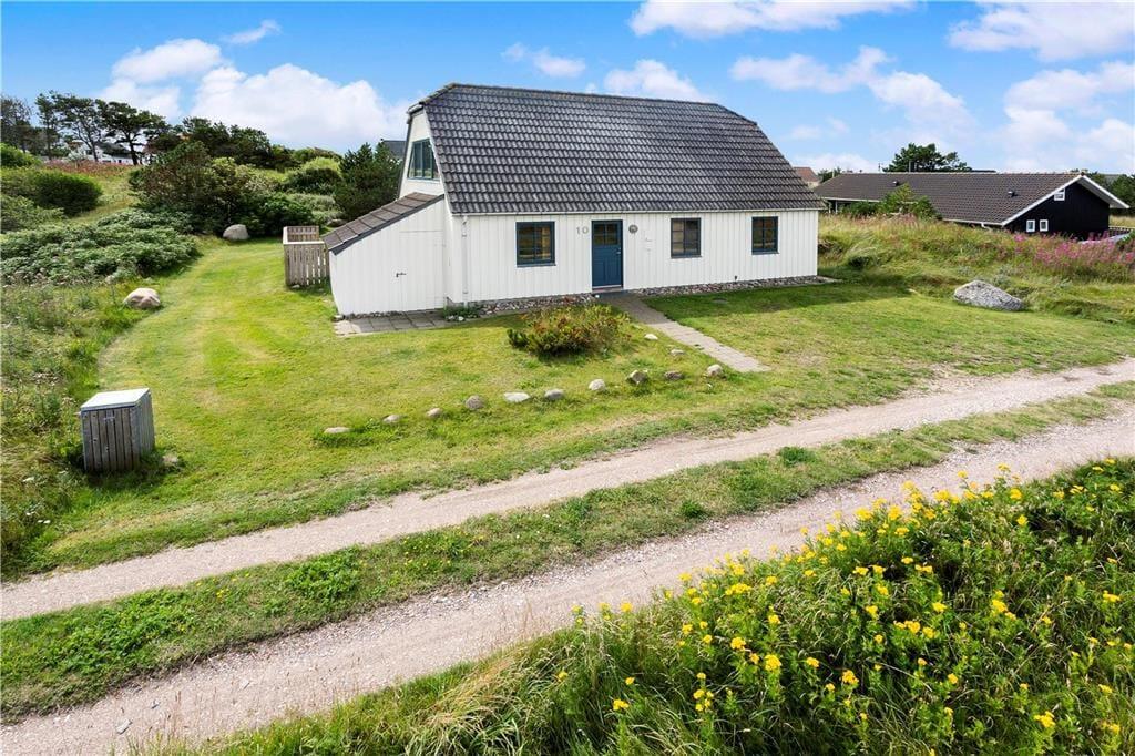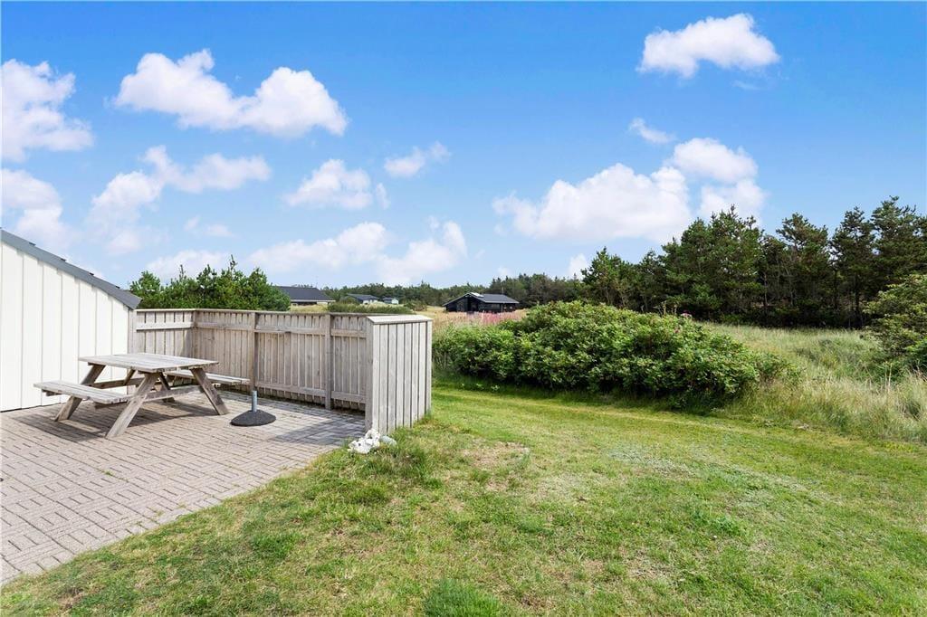 Sommerhuset er omgivet af en stor naturgrund, hvor klitlandskabet danner en smuk baggrund. Flere terrasser omkring huset giver mulighed for at nyde solen fra morgen til aften, og et afskærmet område på græsplænen tilbyder læ og privatliv. Børnene kan lege frit på plænen, mens du nyder en kop kaffe i en af de hyggelige kroge. Om aftenen kan I samles til grillmiddage under åben himmel og lade dagens indtryk bundfælde sig.