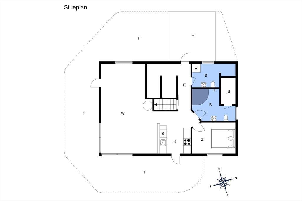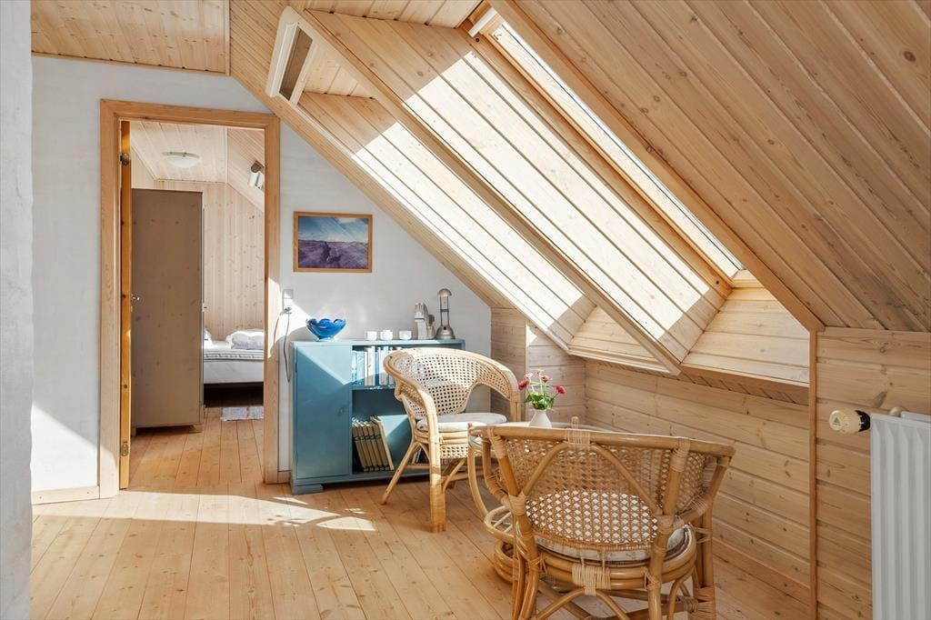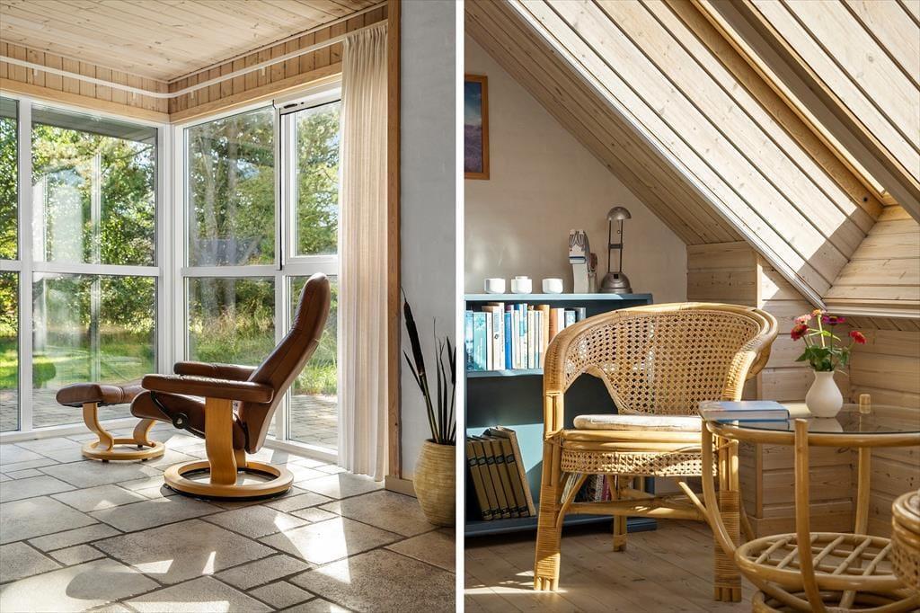 Huset, som er i to etager, er praktisk inddelt, så der er god plads til en stor familie og samtidigt mulighed for, at man kan lukke af for 1. sal, hvis man ikke behøver så meget plads. I stueetagen er der et regulært soveværelse med 1 dobbeltseng, som nemt kan skubbes fra hinanden til 2 enkeltsenge. På 1. sal er der to soverum med hver en dobbeltseng, en dobbelt sovesofa i opholdsrummet og igen et lille rum med forhæng med en madras. Stort og luksuriøst badeværelse med original Jacuzzi Whirlpool, hvor man opnår optimal massageeffekt og f.eks. kan bade med badeolie eller lignende og helt uden brug af klor og kemikalier. Desuden damp- og duftsauna, hvor man foruden almindelig sauna kan nyde den behagelige dampeffekt sammen med duften fra olie eller urter. Huset er velegnet for kørestolsbrugere og der er badebænk ved bruseren. Det pragtfulde hus er topisoleret og er således et godt udgangspunkt for en ferie med ro og afslapning hele året rundt.