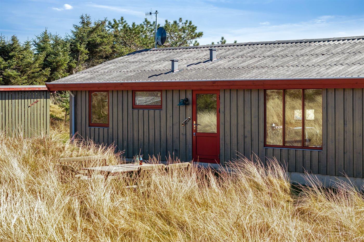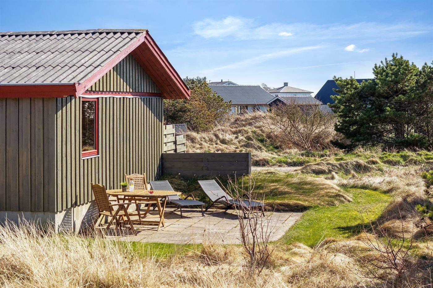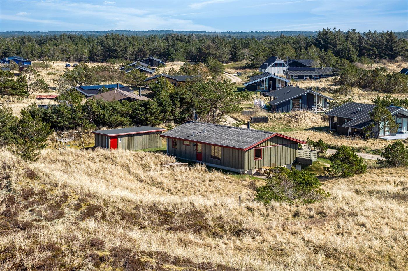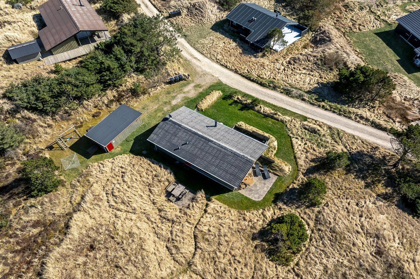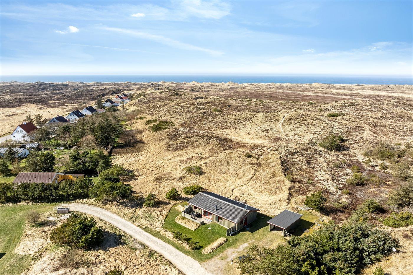 Ferieboligen er beliggende på en 1300 m² stor klitgrund. Der er 1200 m til havet. Nærmeste forretning er beliggende i en afstand af 3200 m. Der er en golfbane i en afstand af 14200 m. Til ferieboligen hører 50 m² terrasseareal. Der er redskabsrum. Gynge. Sandkasse. Grill til rådighed. Der er carport til rådighed. Parkering ved ferieboligen.