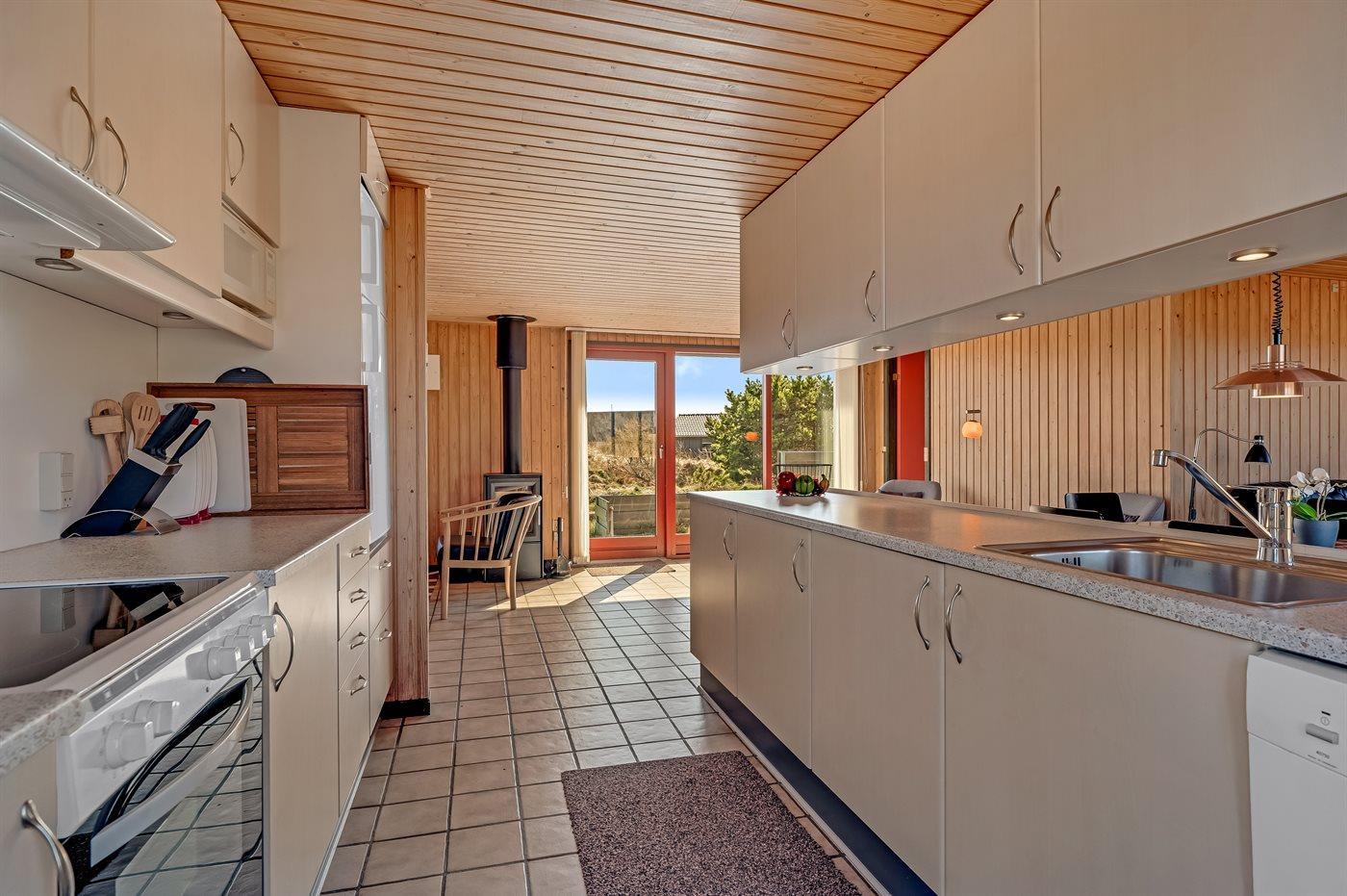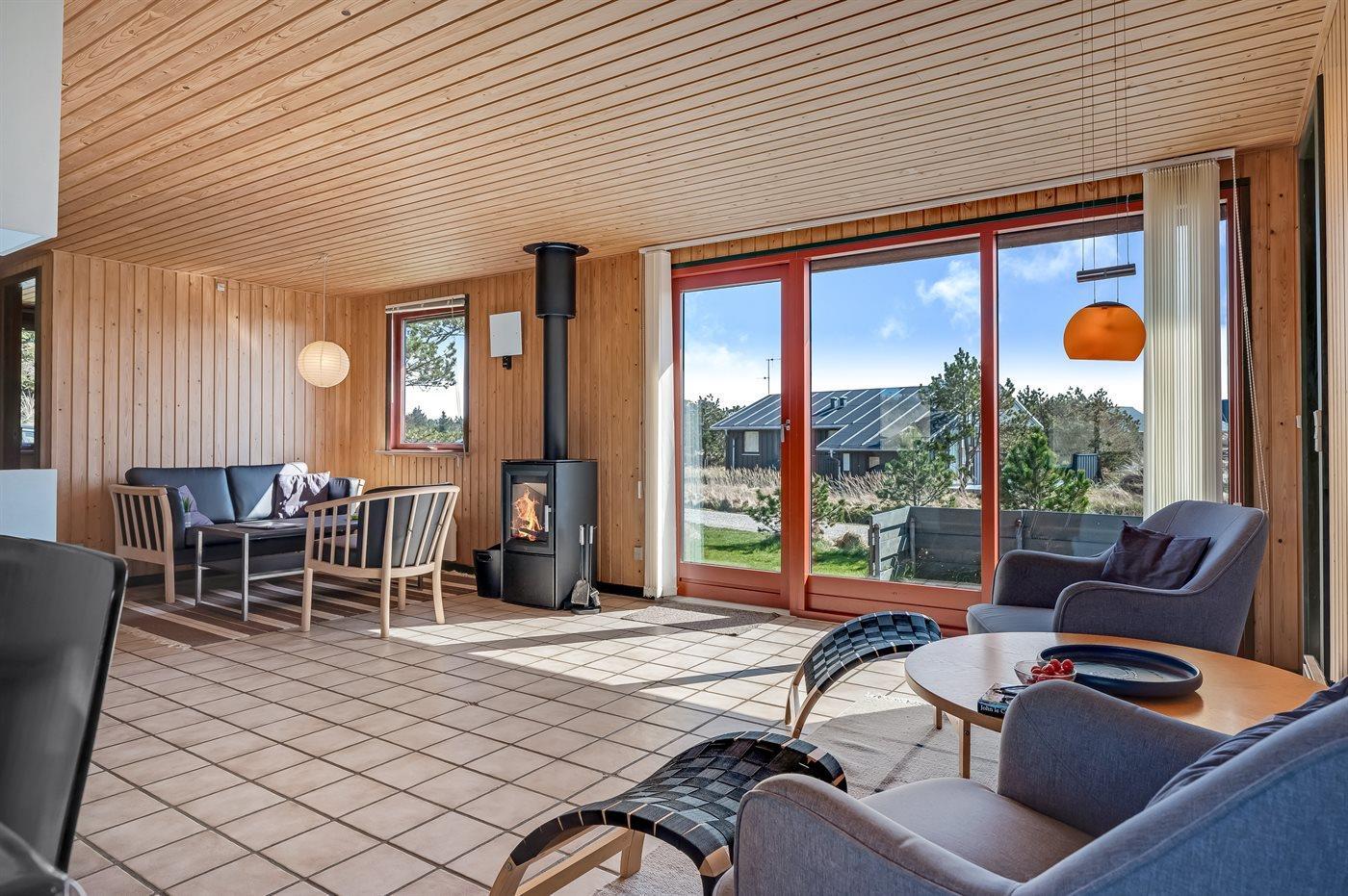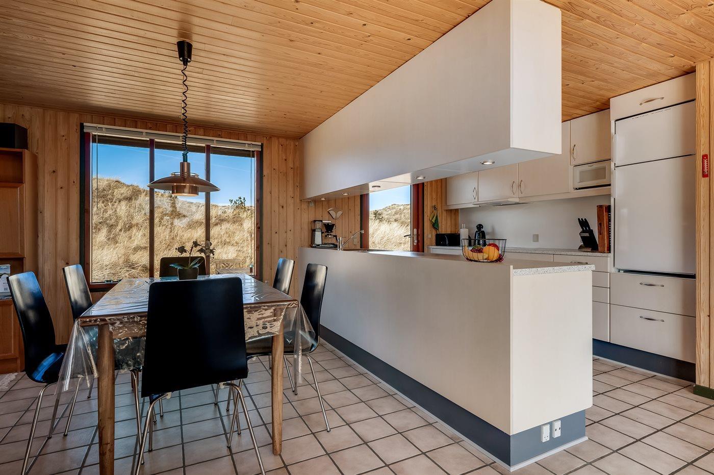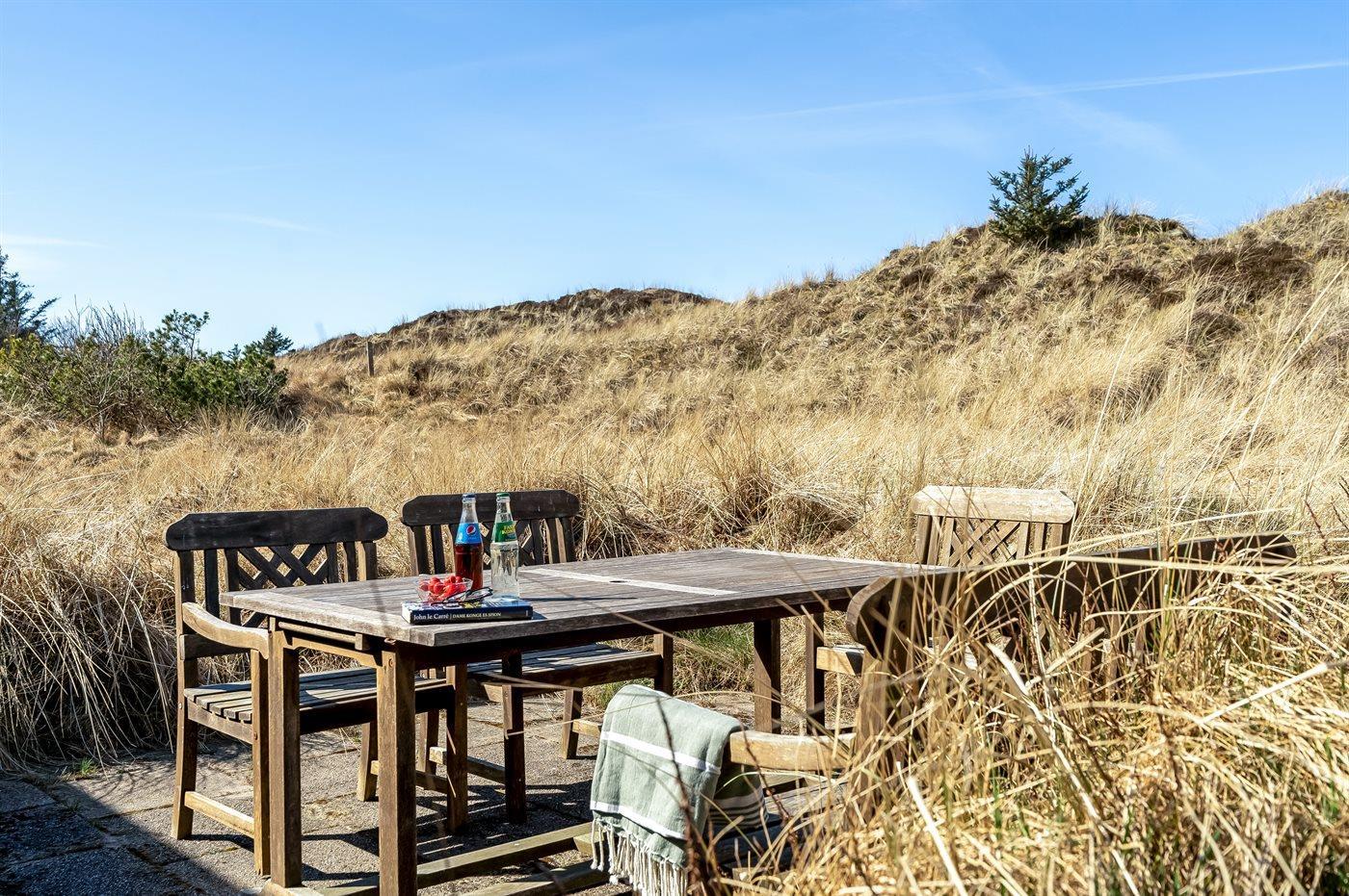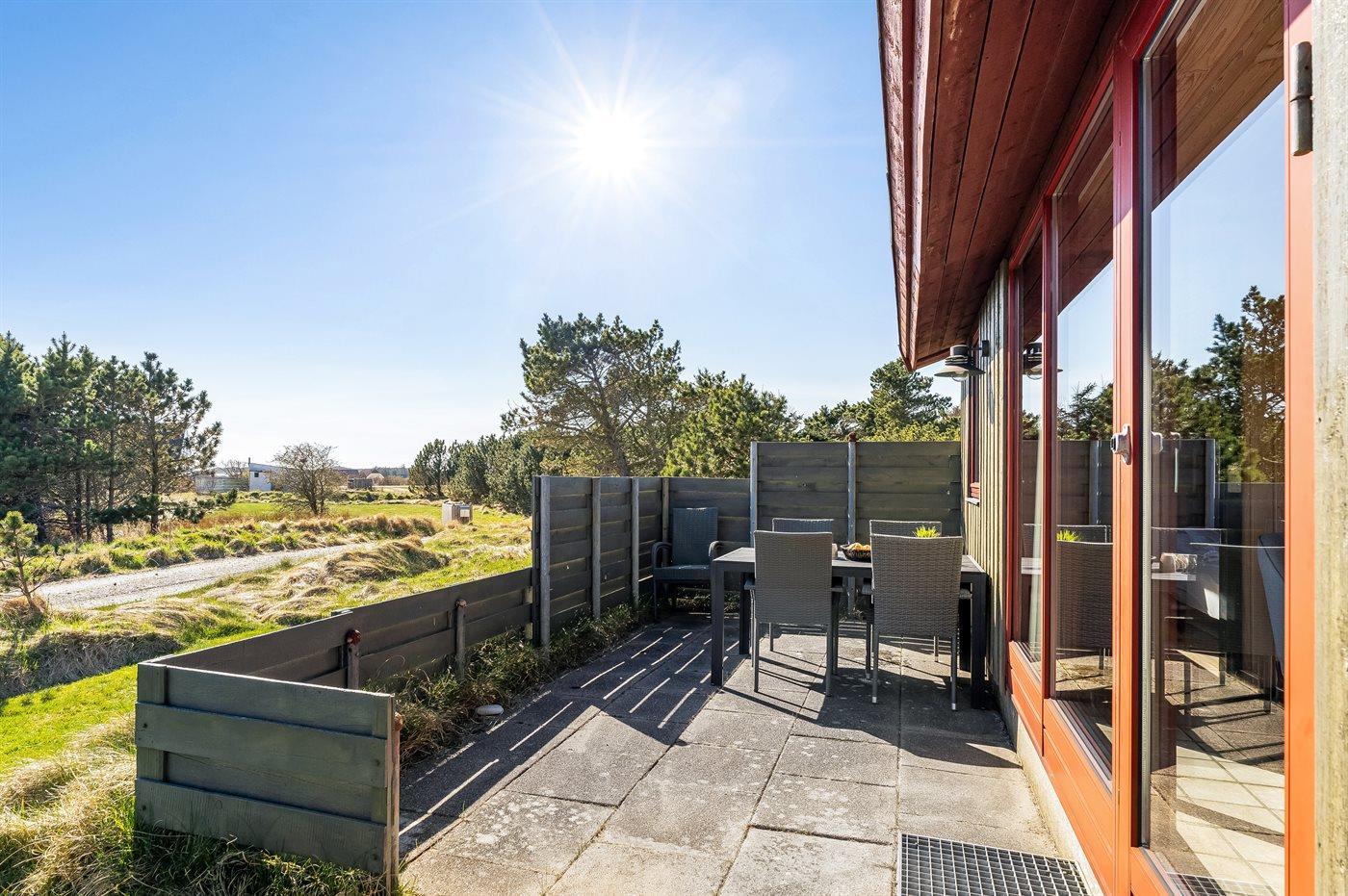 Ferieboligen er beliggende på en 1300 m² stor klitgrund. Der er 1200 m til havet. Nærmeste forretning er beliggende i en afstand af 3200 m. Der er en golfbane i en afstand af 14200 m. Til ferieboligen hører 50 m² terrasseareal. Der er redskabsrum. Gynge. Sandkasse. Grill til rådighed. Der er carport til rådighed. Parkering ved ferieboligen.