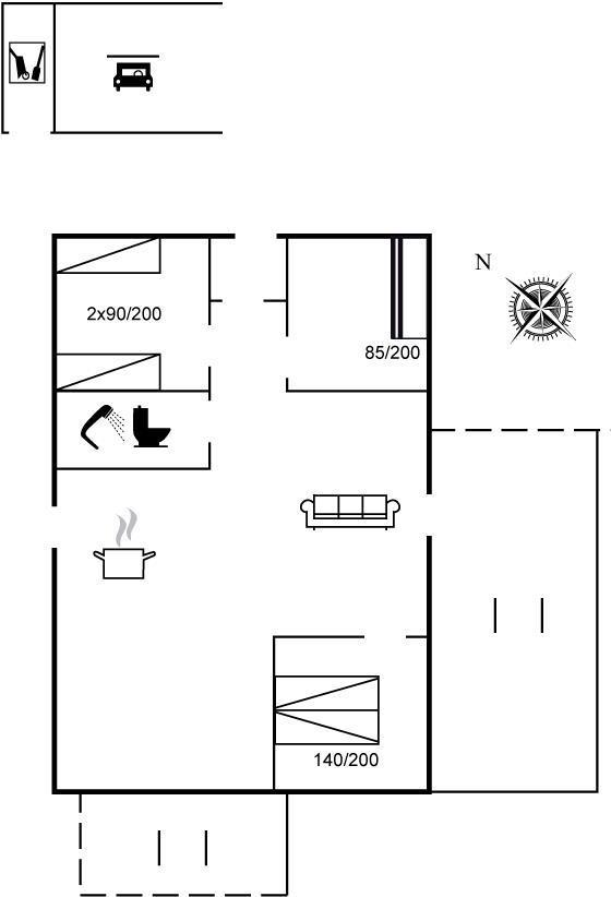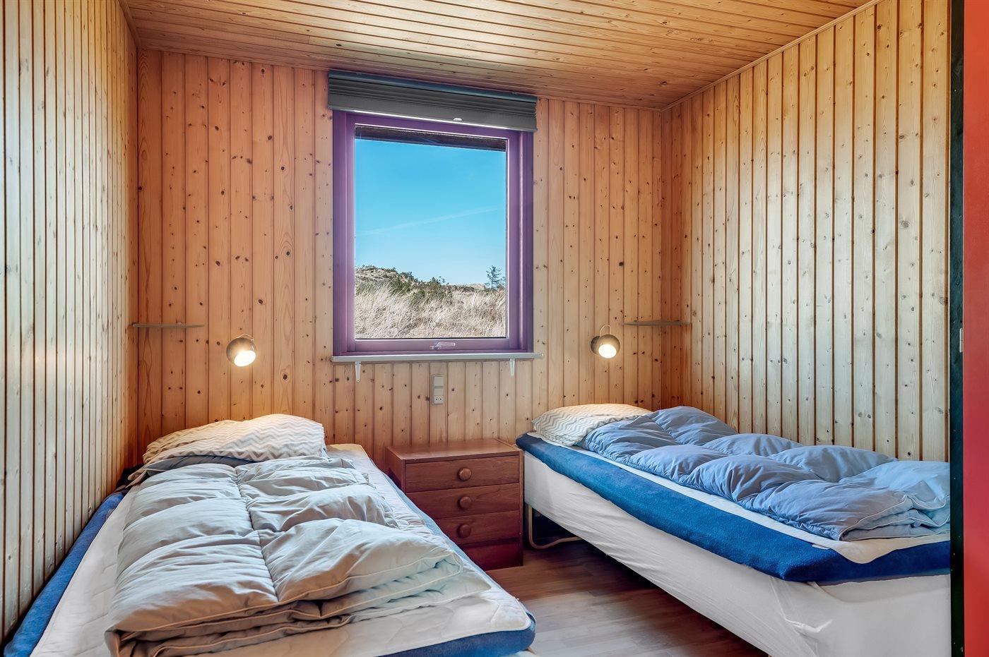 Der er i alt 3 soveværelser. Sovepladserne fordeler sig på: 2 sovepladser i dobbeltseng. 2 sovepladser i enkeltsenge. 2 sovepladser i køjeseng. Derudover er der 1 stk. barneseng.