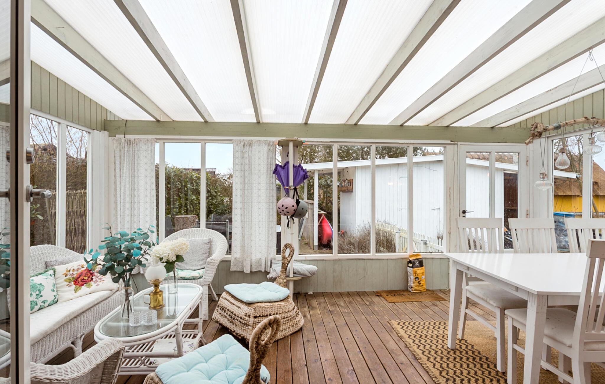 Tilbring solrige timer på den store træterrasse og nyd den vidunderlige havudsigt. Den store have byder på masser af plads til at lege og slappe af. Spil fodbold sammen eller lad de små grave i sandkassen, mens I kan slutte aftenen hyggeligt af ved brændeovnen.