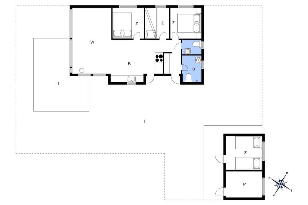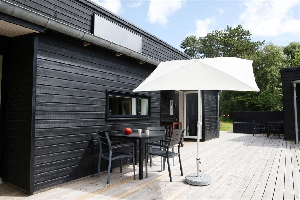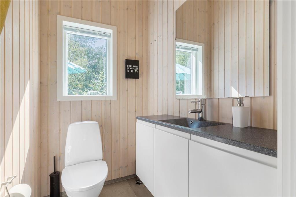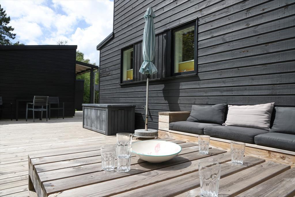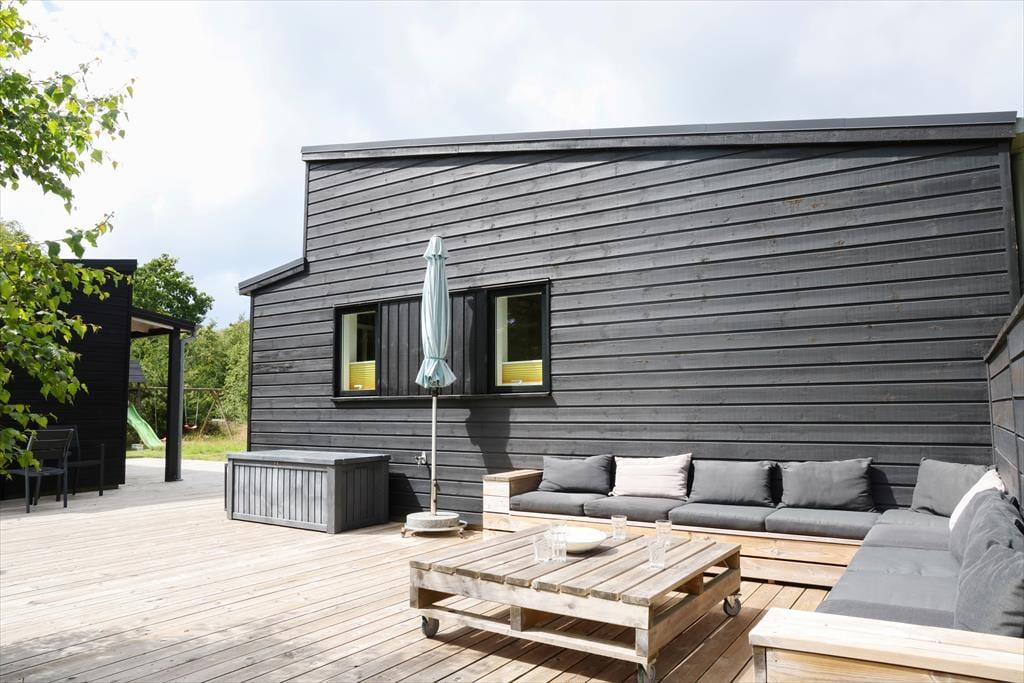 Feriehuset er indrettet med dejlig stue med loft til kip. Lækkert åbent køkken med stor spiseplads, her er der mulighed for at alle kan samles og nyde frokosten. Fra både stue og køkken er der udgang til den skønne terrasse, der er opdelt i flere afdelinger, her kan du altid finde en plads både med læ og sol. På den store grund, kan børnene muntre sig med gynger, mens du tænder op i grillen.