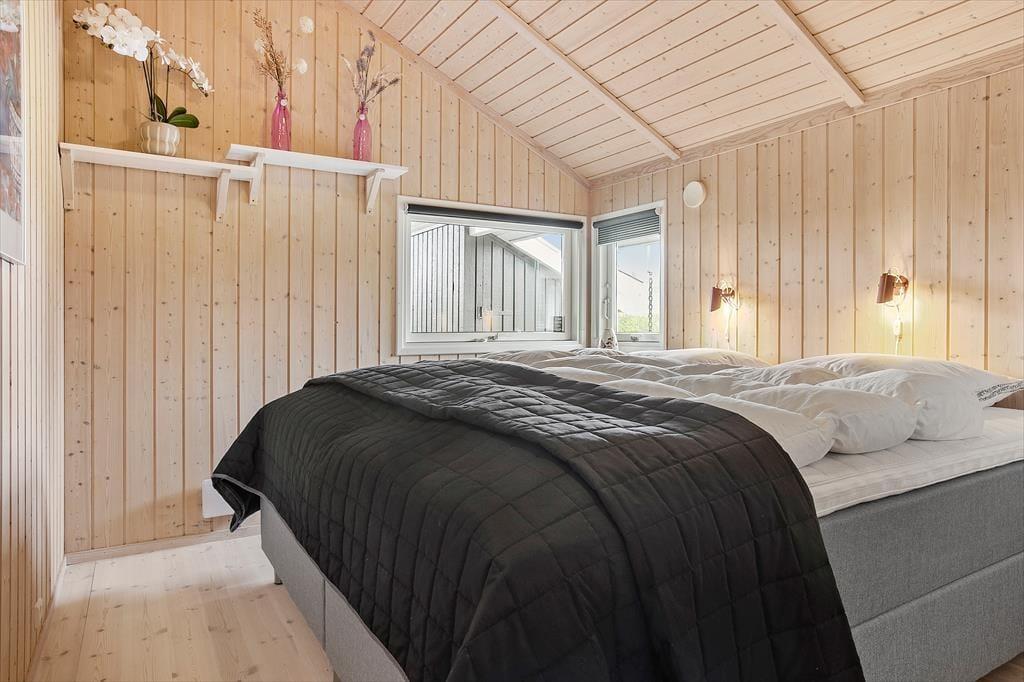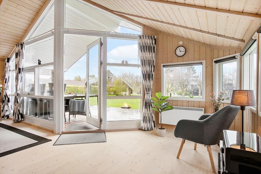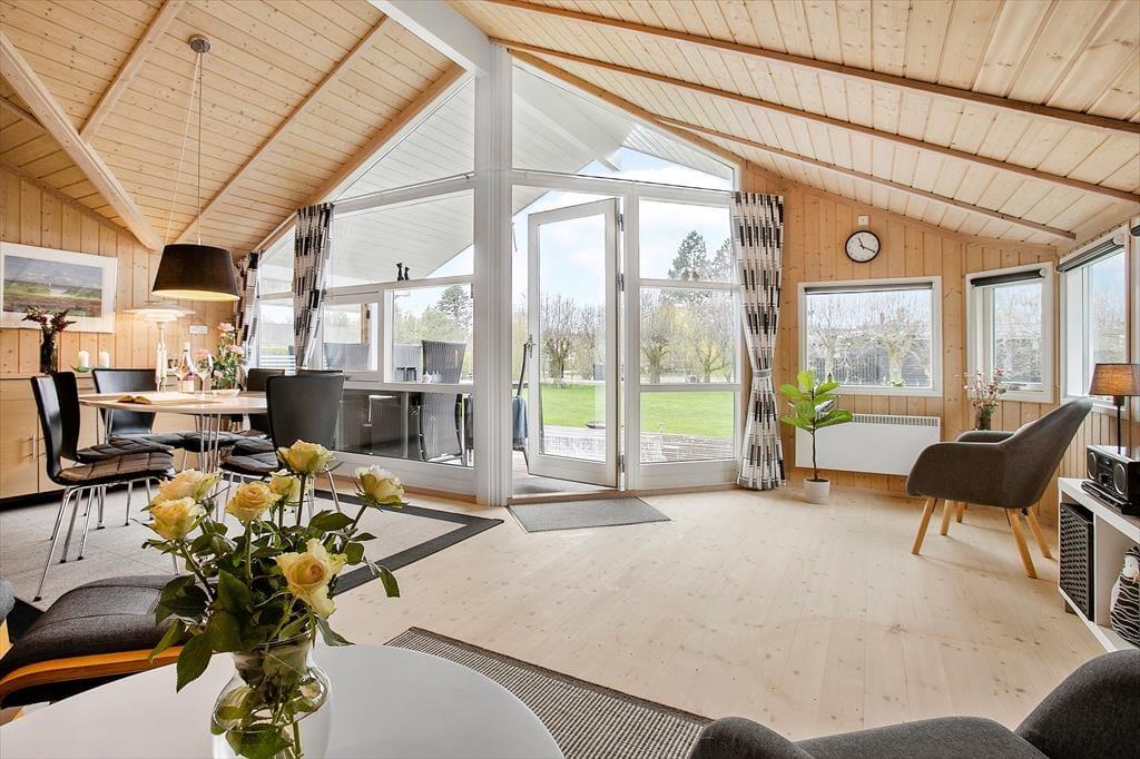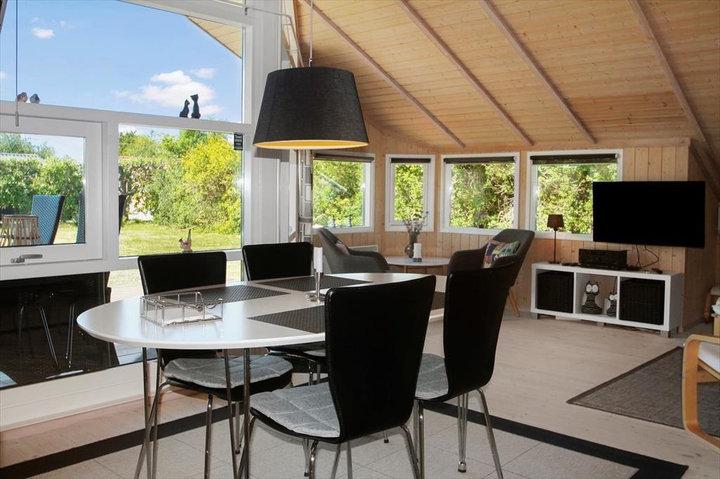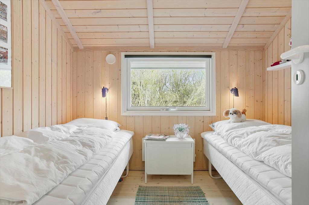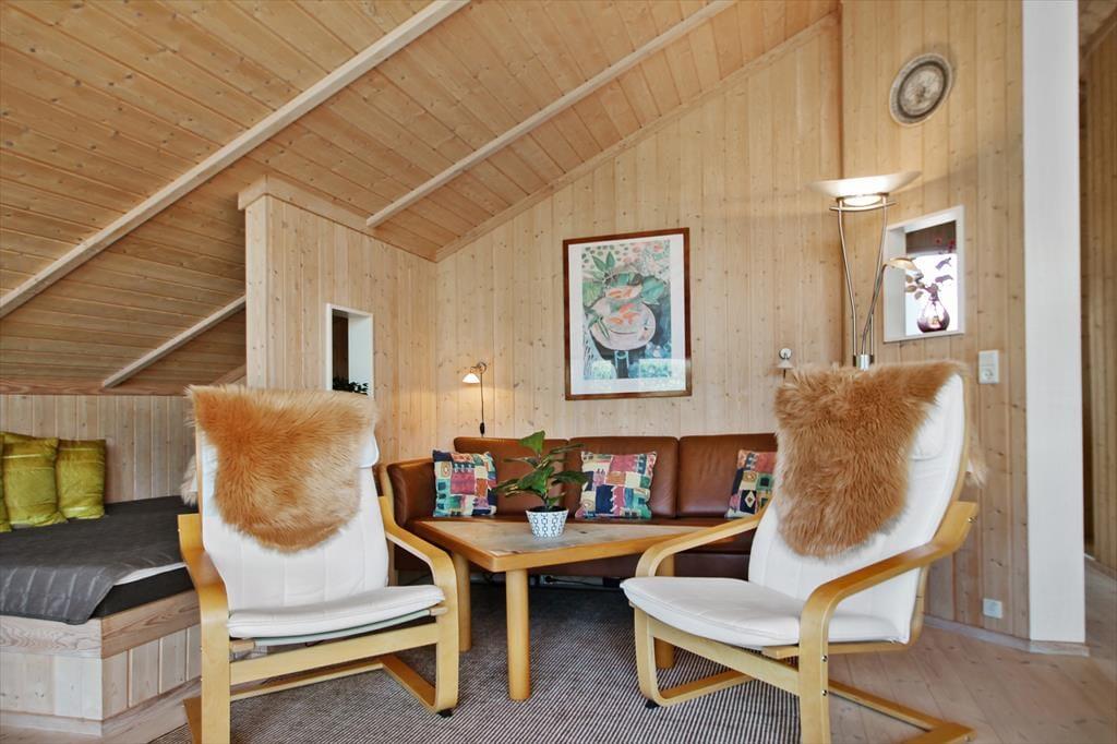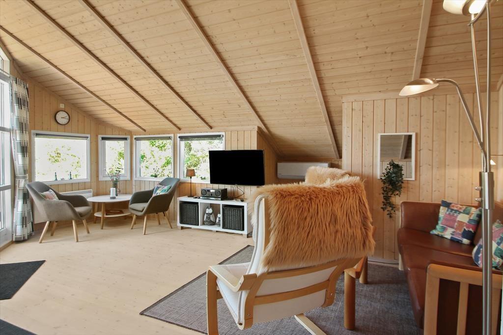 Lækkert lyst helårsisoleret feriehus med loft til kip i næsten alle rum. Feriehuset er indrettet med kombineret køkken og opholdsstue. Lyst køkken med keramisk komfur, opvaskemaskine, miniovn og køleskab med fryser. Dejlig lys opholdsstue med et godt lysindfald via store vinduespartier. Udgang til terrasse, god og hyggelig spiseplads, sofa og lænestole, Smart-TV med adgang til streamingtjenester via ejerens eget login og DVD Badeværelse med bruseniche, gulvvarme og vaskemaskine. 2 soveværelser, et med dobbeltseng og et med to enkeltsenge. I stuen er der desuden en alkove med 2 sovepladser. Huset opvarmes med varmepumpe og elvarme.