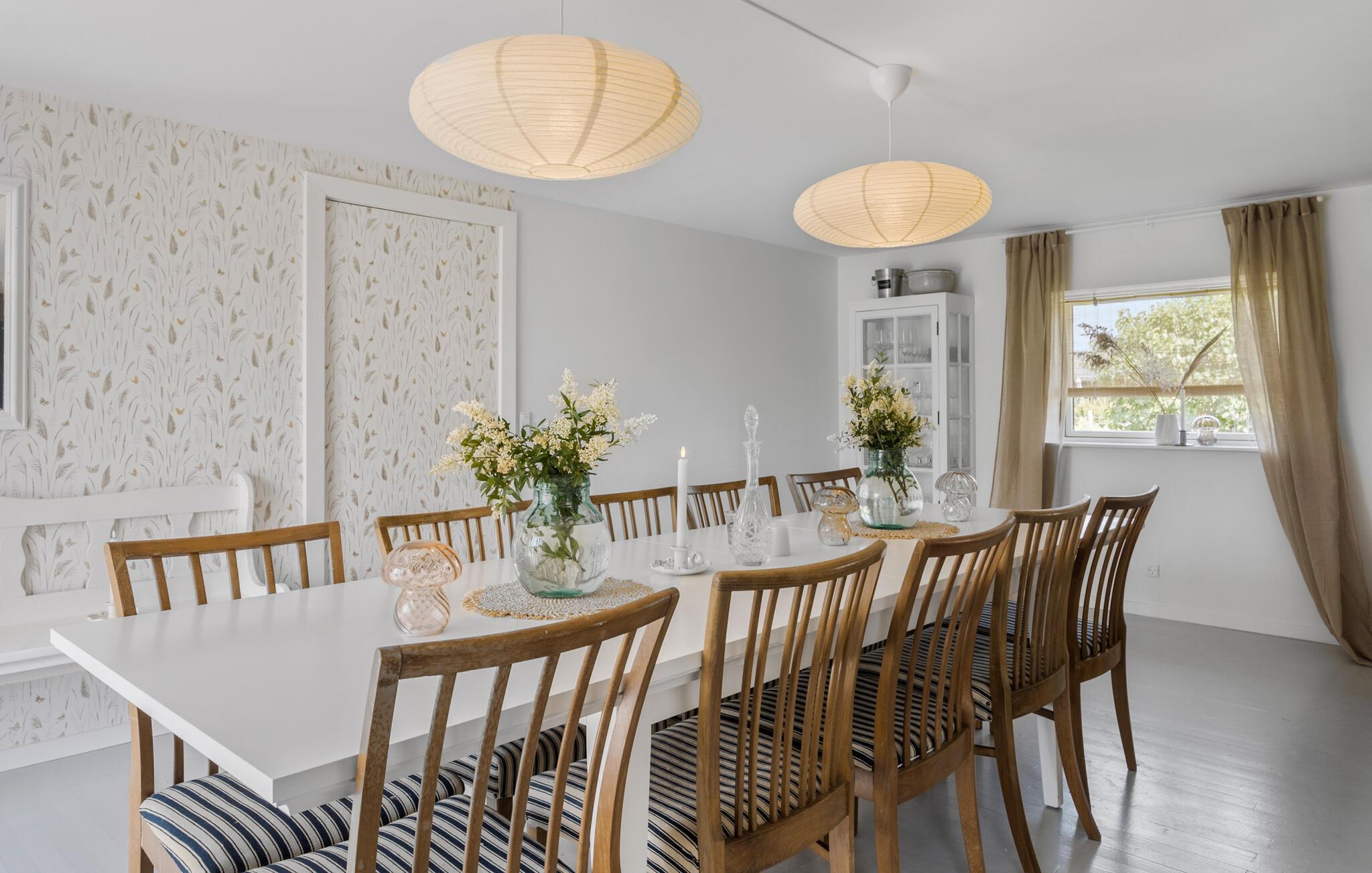 Tilbring en afslappende ferie i dette charmerende hus ved Storebælt med god plads til hele familien. Begynd dagene i det lyse køkken, hvor I kan tilberede en lækker morgenmad. Kald familien sammen om det store spisebord og planlæg feriedagens program. Børnene vil sikkert have nogle spændende forslag til udflugter rundt på denne skønne del af Sjælland. Sommerhuset er hyggeligt indrettet med en dejlig sofakrog og har en behagelig atmosfære, der gør det nemt at slappe af. Værelserne emmer af ro og klassisk sommerhusstil. Sæt jer til rette med en god bog eller snup et brætspil med hele familien. Den store have byder på masser af plads til bevægelse og sjove aktiviteter. På den store terrasse kan I læne jer tilbage under parasollerne, dække op til en middag på det store bord og se børnene, der leger og har det sjovt i haven.