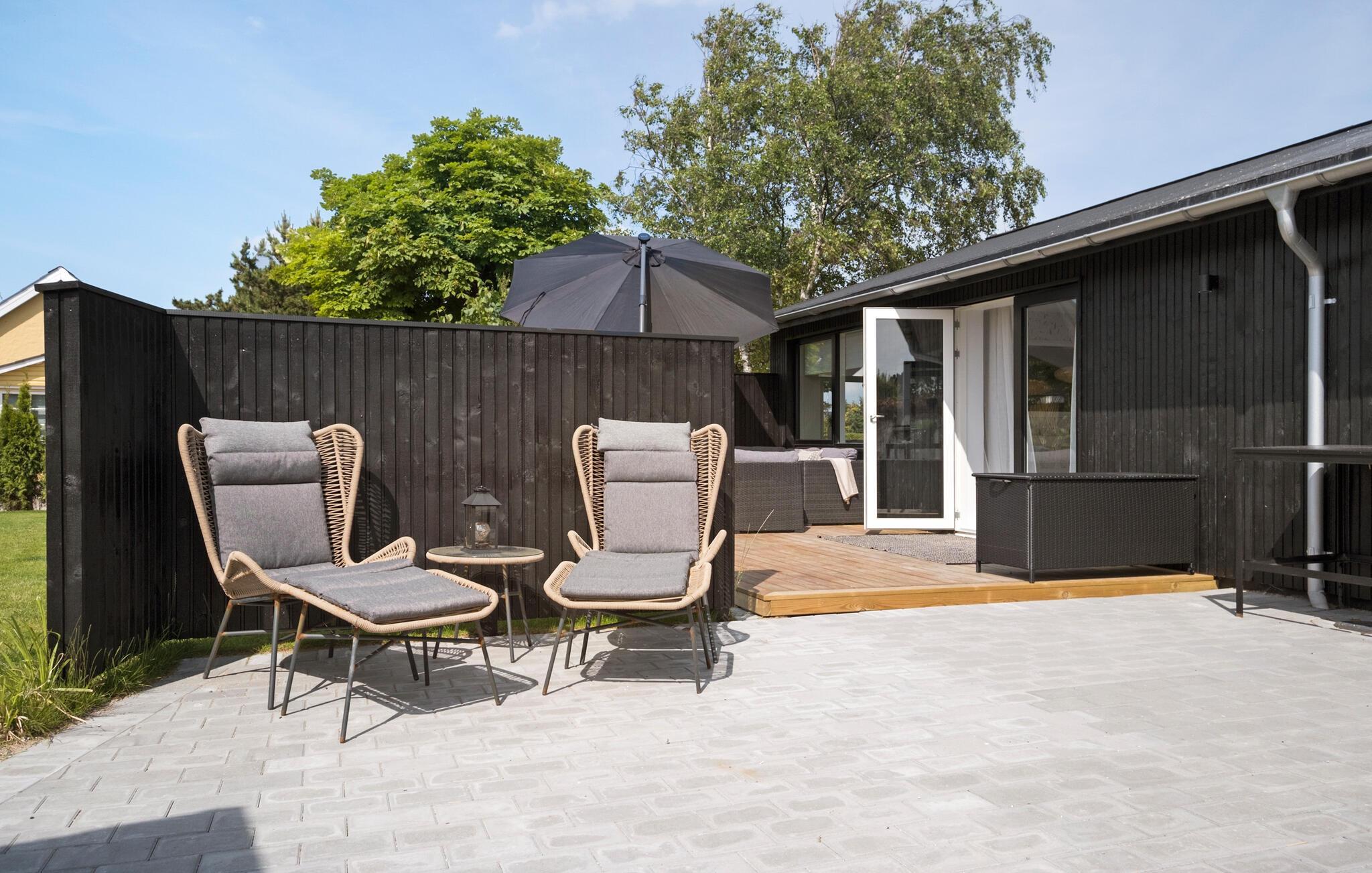 Hyggeligt sommerhus ved Stillinge Strand med stor have, terrasse og nærhed til vandet for afslappende feriedage.
