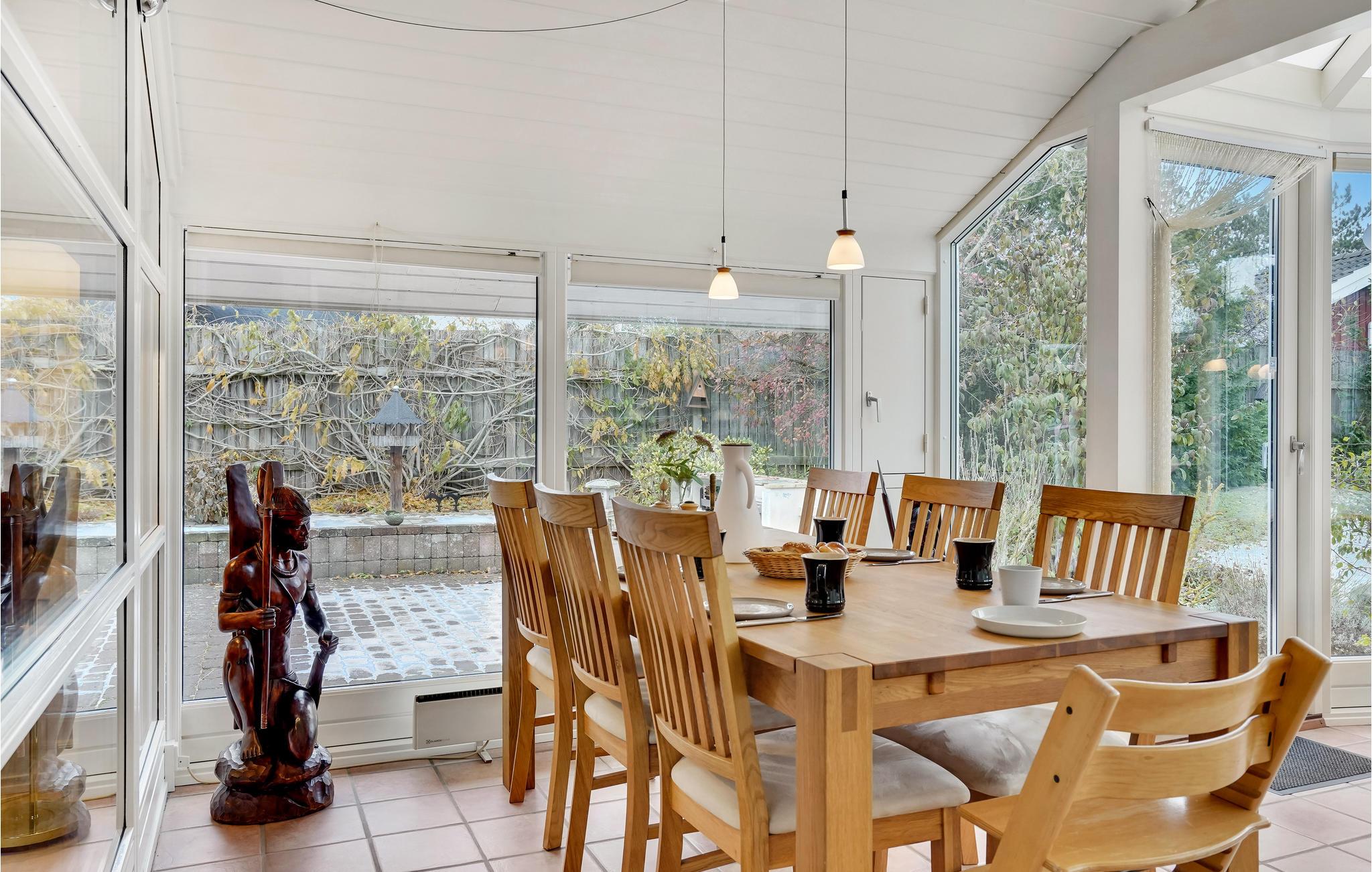 Glæd jer til jeres ferie i dette sommerhus i Stillinge Strand med familie eller venner. Det smukke hus er det ideelle sted at slappe af og lægge fødderne op foran brændeovnen efter en aktiv dag. Hold spilleaftener ved spisebordet i udestuen, og planlæg jeres udflugter og aktiviteter for dagen over jeres feriemåltider på terrassen. Mens I rydder morgenbordet, kan jeres børn lege og rutche i haven.