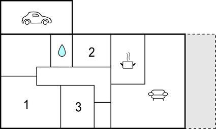 Soveværelse (nr. 3) - 1 Soveplads. (Enkeltseng(e)). 2 Sovepladser. (Sofa, madras eller lignende).