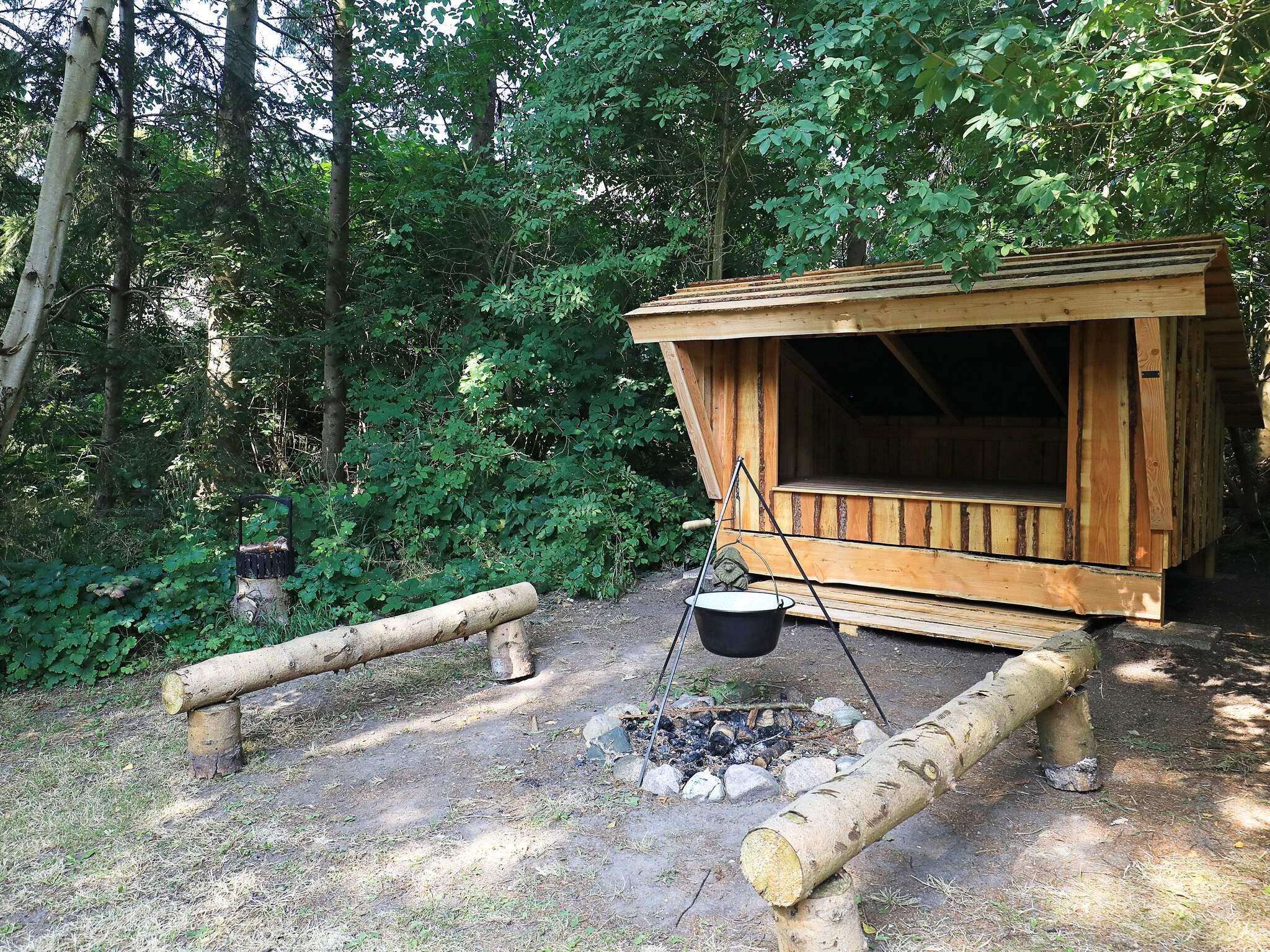Sommerhus fra 1978 renoveret i 1991 beliggende på ugeneret grund med høje træer, shelter, bålsted og lille bæk ved Stoense.