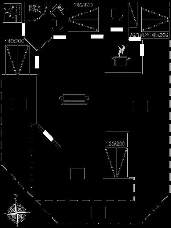 Bemærk at de to af sovepladserne er i alkove i forbindelse med stuen. Der i alt er 9 sovepladser i huset, men huset kun må beboes af maksimalt 8 gæster.