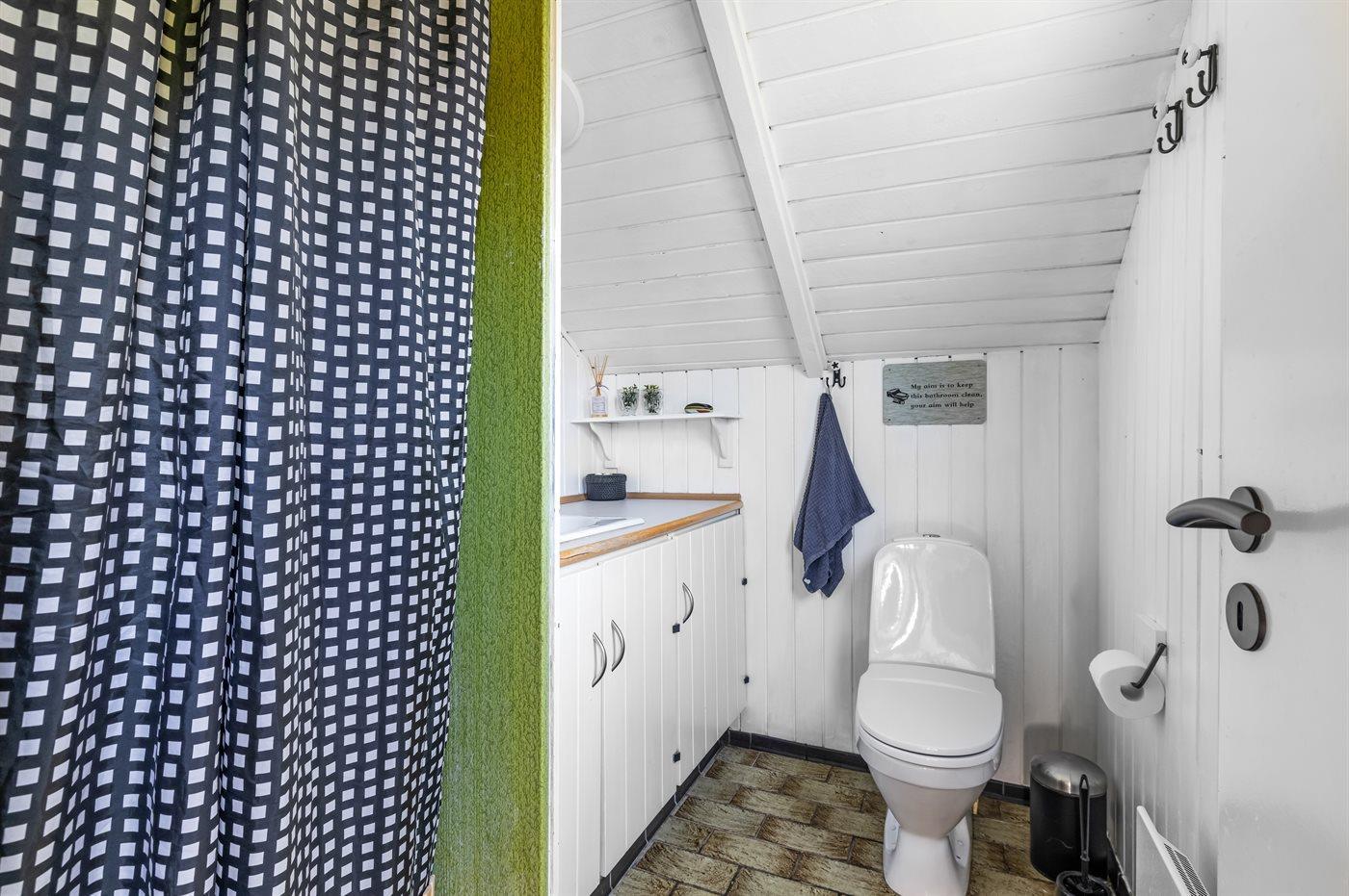 Der er 1 badeværelse med bruseniche og 1 toilet.