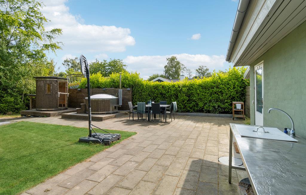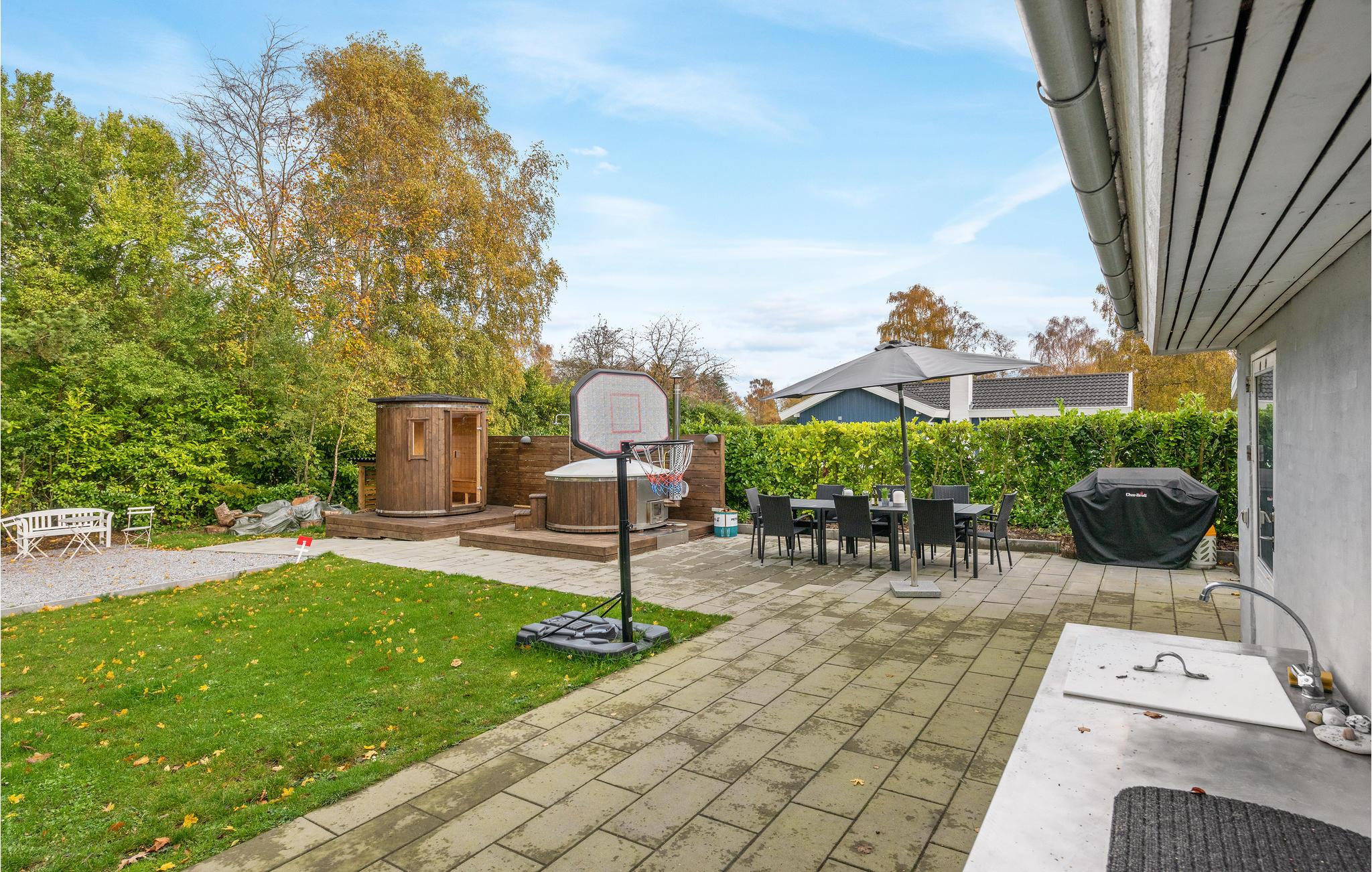 Dejligt feriehus i sommerhusområdet Stoense Udflytter. Huset byder på flere forskellige udendørs aktiviteter for hele familien og er det ideelle feriemål til udemennesket. Nyd eksempelvis aftentimerne ved grillen på et af de 3 flisebelagte terrasseområder rundt om huset, mens børnene leger i haven, eller tag dig en velfortjent pause i det tilhørende vildmarksspa efterfulgt af en tur i saunaen. Selve huset er lyst og venligt indrettet med trægulve i stue og soverum, linoleumsgulv i køkkenet og klinker i baderummet. Fra det største soverum er der direkte adgang til terrasseområde. Er du på øen for at fiske, så ligger nordvestkysten ikke længere væk end man kan gå dertil og ellers byder Langeland generelt på flere gode fiskemuligheder, hvad enten man er til sø- eller havfiskeri. Ikke langt fra feriehuset ligger Langelands nordligst liggende by Lohals. Især om sommeren summer byens havneområde af liv med blandt andet levende musik på nogle af de omkringliggende bodegaer og restauranter. Nyd evt. en dejlig gåtur langs havnen og marinaen og afslut dagen med en kæmpe gammeldags isvaffel på havnens grillbar.