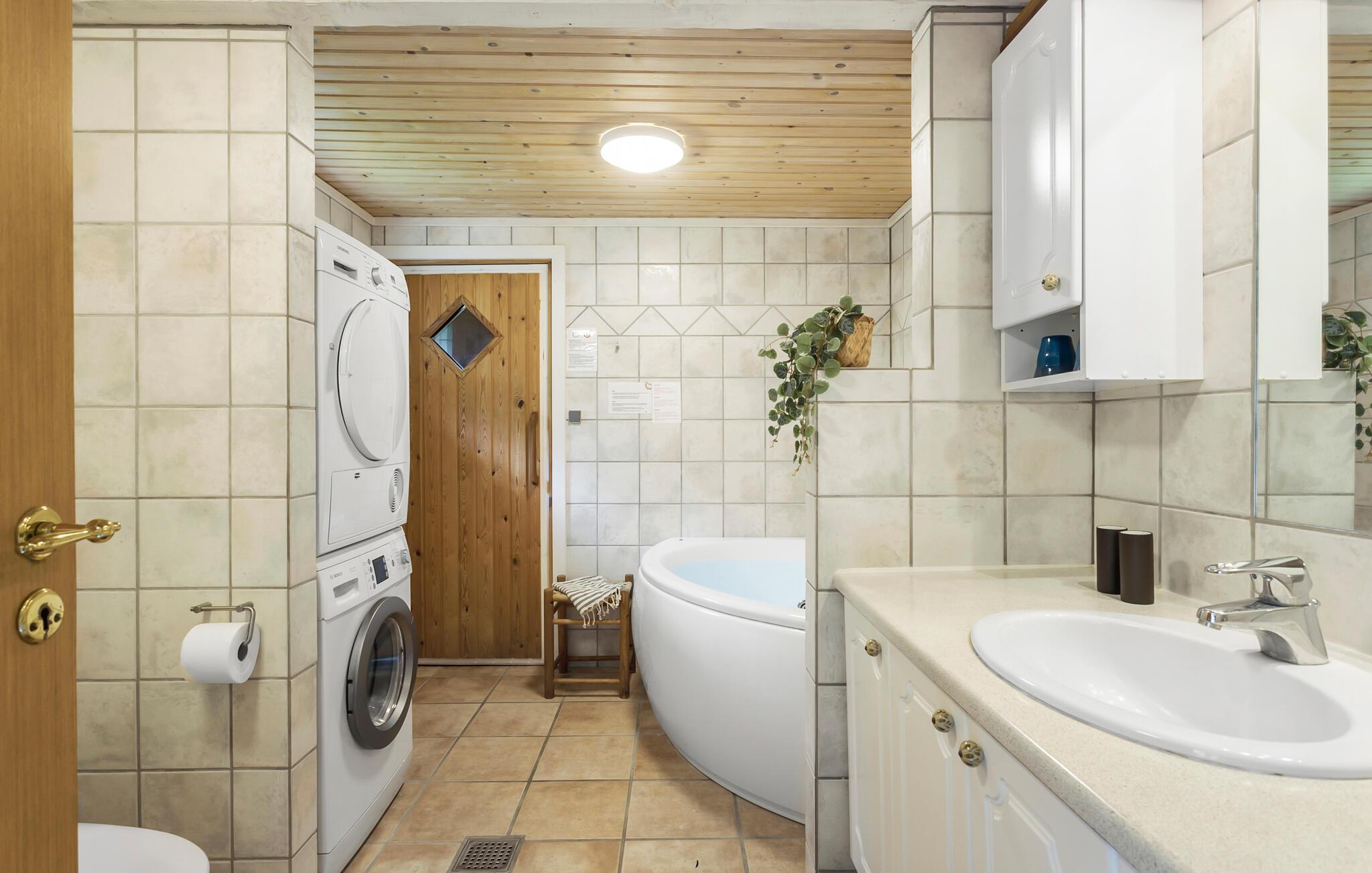 Velkommen til Stoense Udflytter på den nordlige del af Langeland, hvor hele familien får gode rammer i dette skønne sommerhus. Sæt jer til rette i solen på terrassen og mærk, hvordan feriestemningen breder sig. Her kan I gøre klar til den store grillmiddag, når I vender hjem fra dagens udflugter. Trænger I til lidt ekstra forkælelse, kan læne jer tilbage i spabadet eller saunaen. Den hyggelige opholdsstue er udstyret med komfortable lænestole og en stor sofa, så her kan I fylde aftenerne med hyggestunder og samles om film, brætspil og lækre snacks. Indretningen er både funktionel og klassisk, så alle kan sænke skuldrene og koncentrere sig om at holde fri. Køkkenet er veludstyret og lægger op til fælles madlavningsprojekter. Dæk op til en frokost ved spisebordet og glæd jer over den skønne udsigt til den grønne have.