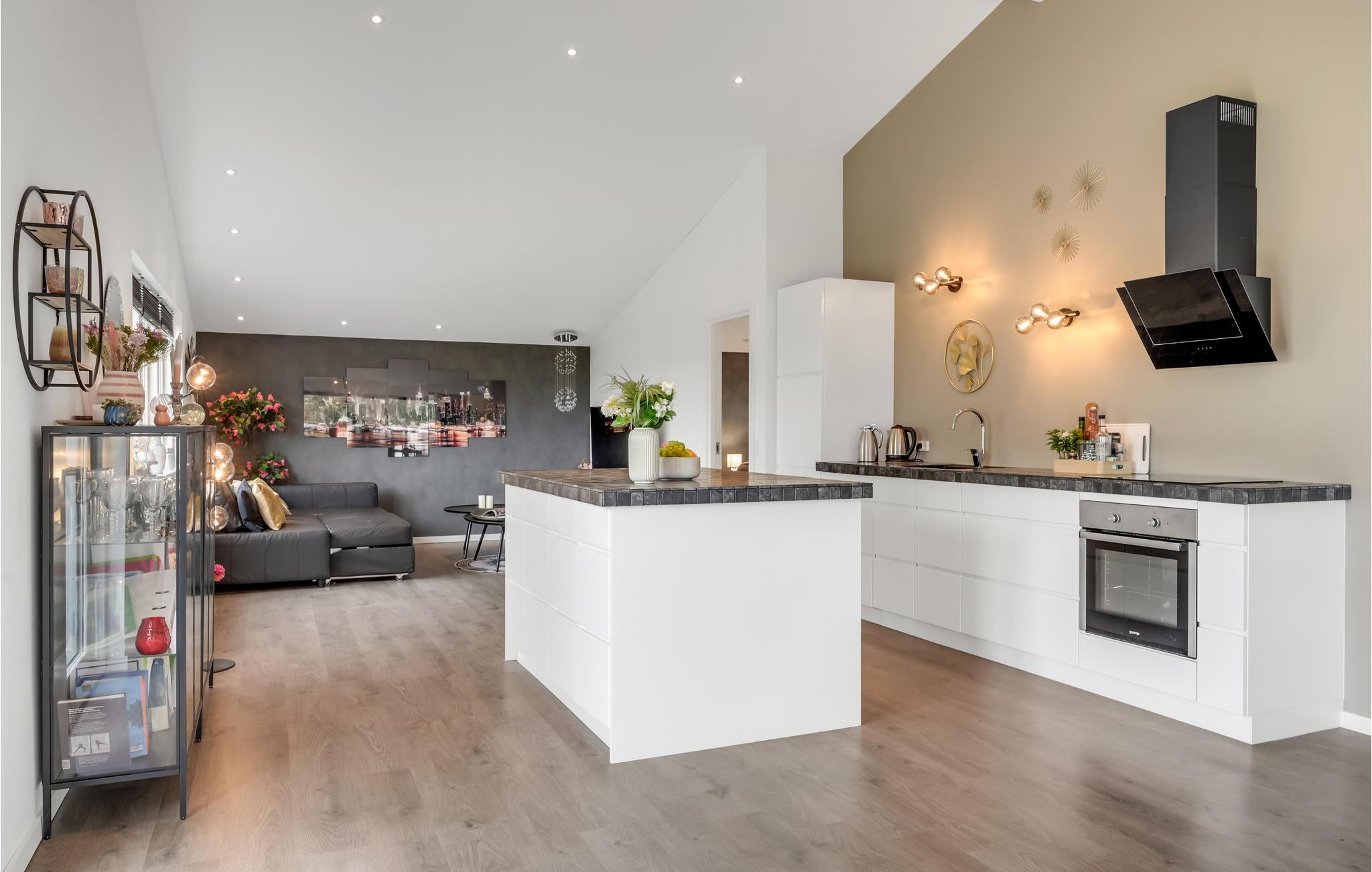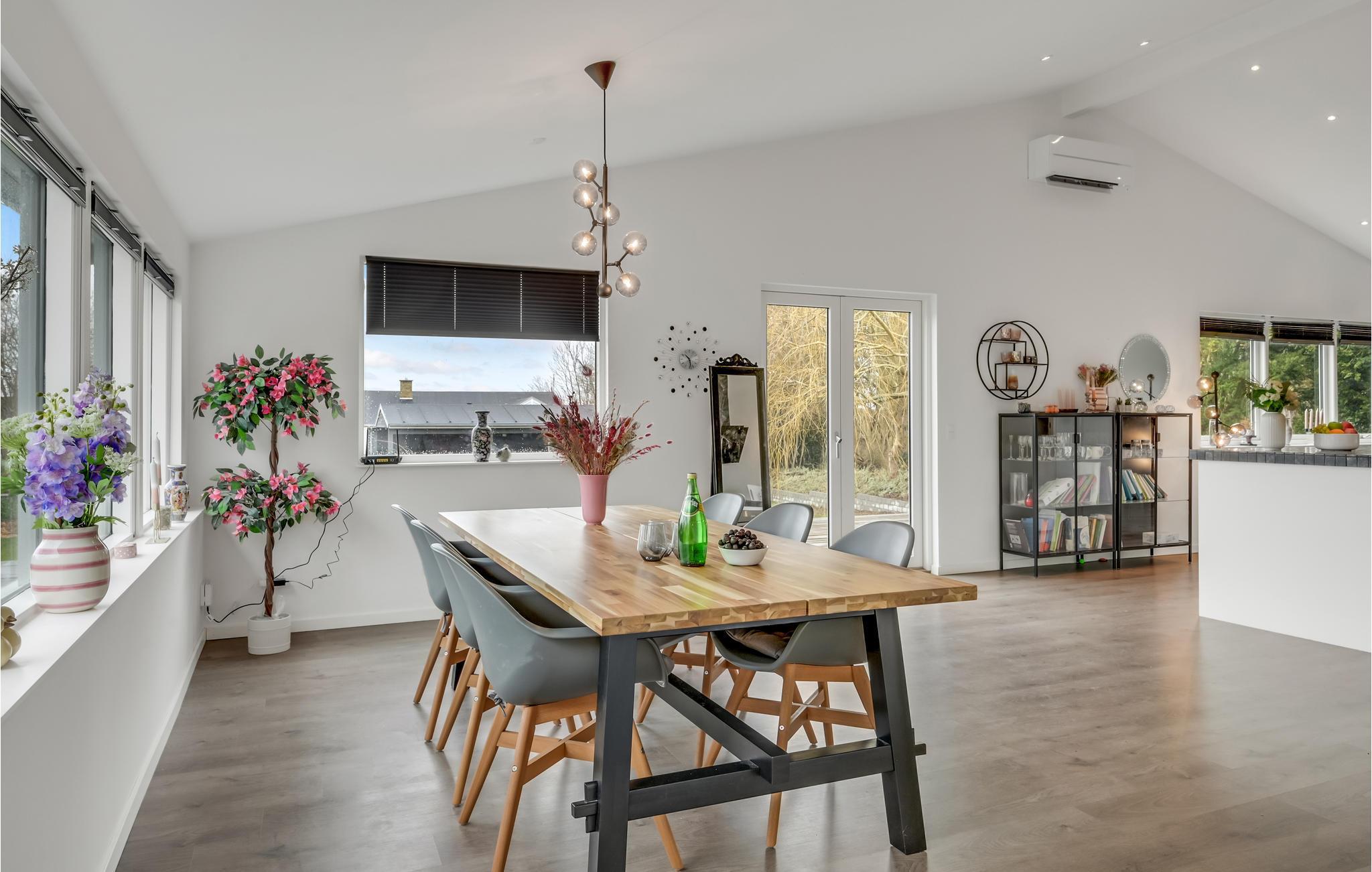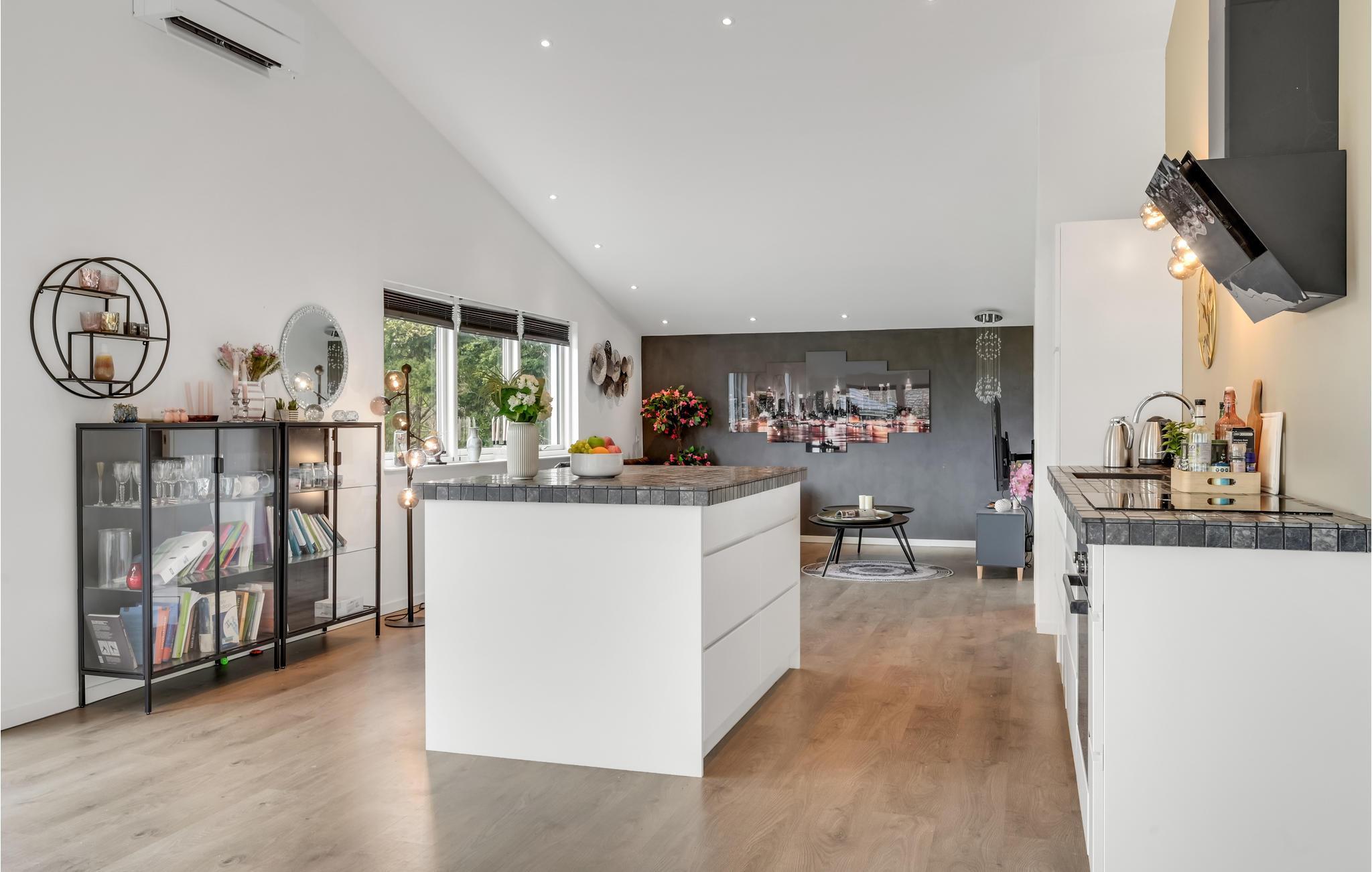 Velkommen til en skøn familieferie, hvor I kan nyde udsigten til Roskilde Fjord. Her får I gode rammer i det store opholdsrum, hvor I kan samles efter en lang dag på farten. Centralt i rummet har I køkkenet, hvor familiens kokke hele tiden kan være med i snakken, der foregår i rummet. Hyg jer med spil og gode serier efter en lang dag på farten eller anret en lækker middag, som kan nydes, mens I lægger jer fast på morgendagens aktiviteter.