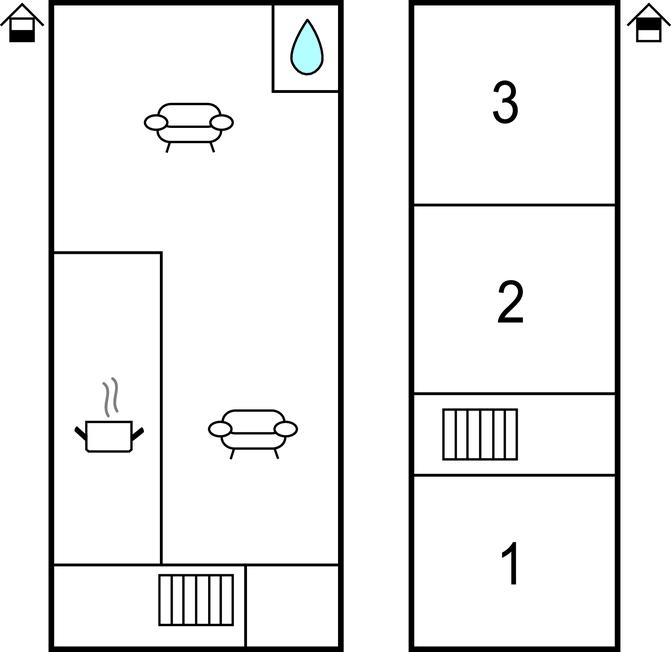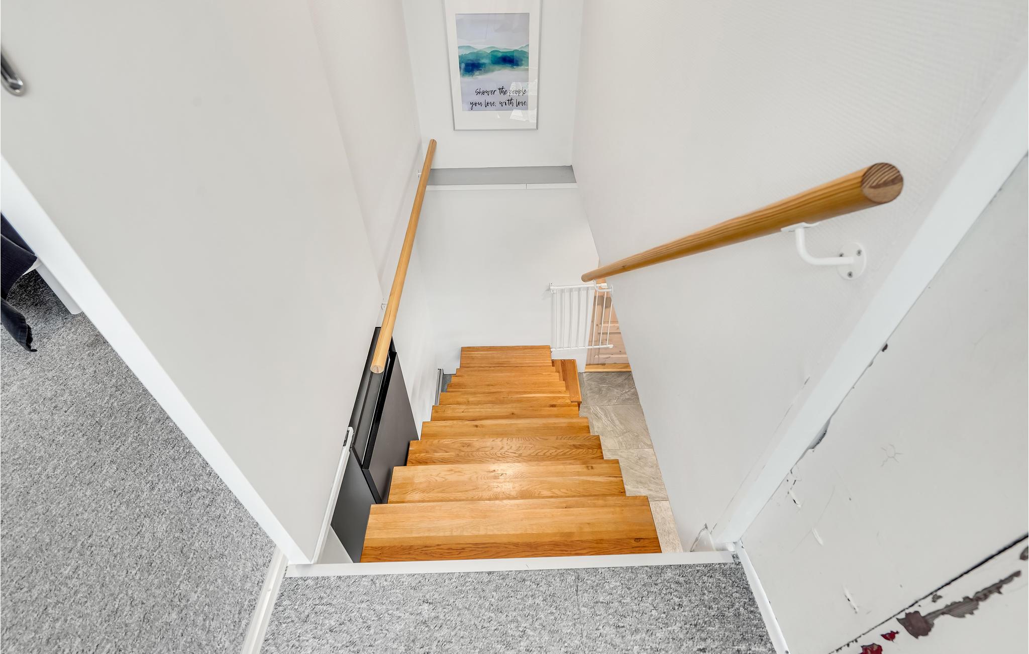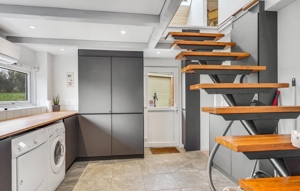 Feriehuset har to etager og er indrettet med stor sans for detaljer. I stueetagen er der den smukke opholdsstue, køkkenet og et badeværelse. De tre soveværelser ligger på første sal.