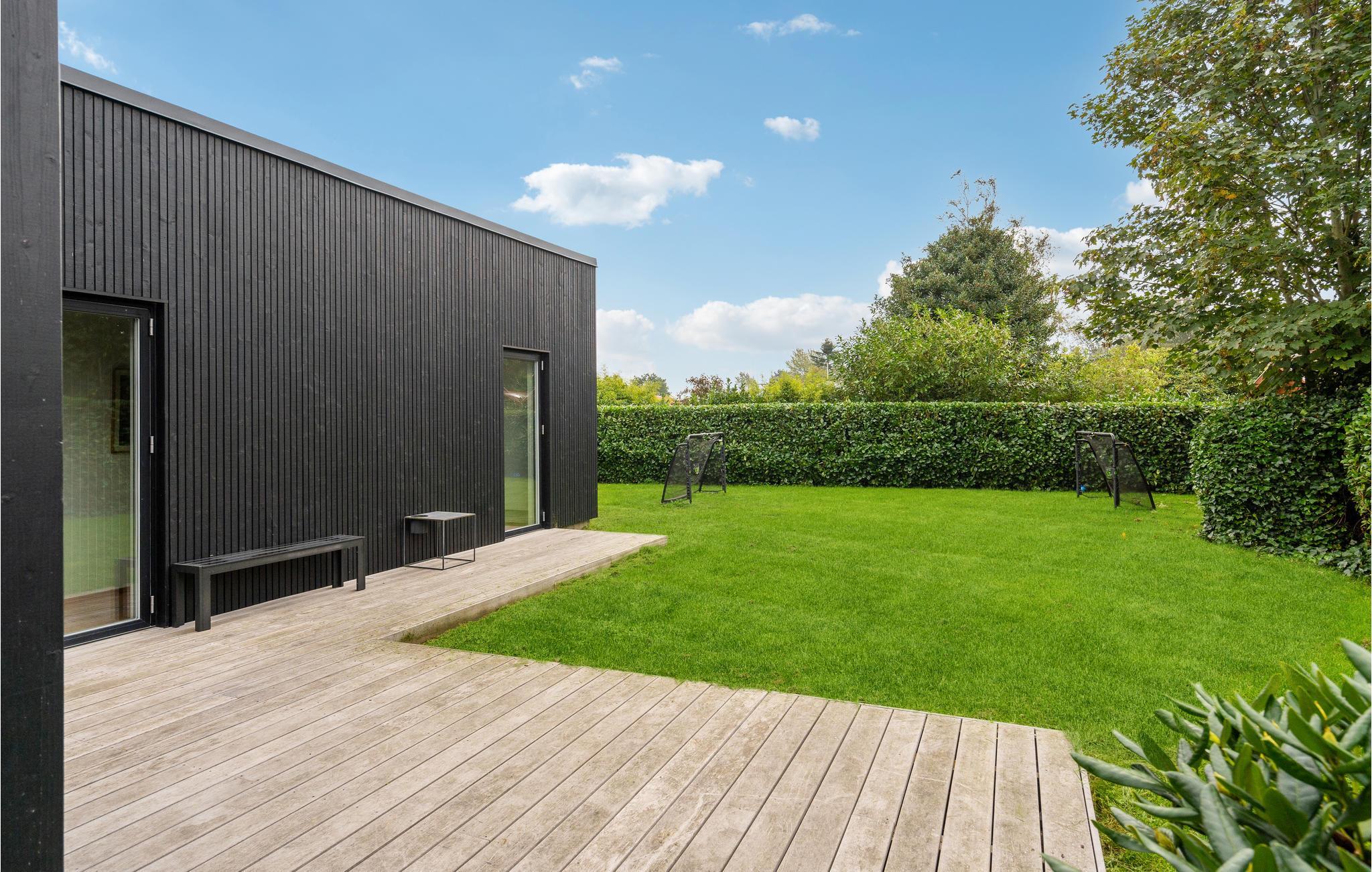 Der er lagt op til nogle forrygende feriedage i dette arkitekttegnede sommerhus, hvor ingen detaljer er tilfældige. Den rummelige lyse stue lægger op til en masse hyggestunder efter dagens udflugter, mens I kan få jer et sjovt afbræk ved billardbordet i spillerummet. Det veludstyrede køkken giver jer alt, hvad I skal bruge, når I skal gøre klar til de fælles måltoder. Og som en praktisk detaljer kan I tilberede friskfangede fisk fra den nærliggende fiskesø eller havet i husets udekøkken. Der er flere hyggelige soveværelser, herunder et børneværelse til fire med to køjesenge, så her er gode rammer til hele familien. Boligen består af to bygningsenheder, som er forbundet i form af en overdækket terrasse. Nyd solen og se børnene lege og hoppe på trampolin i haven.