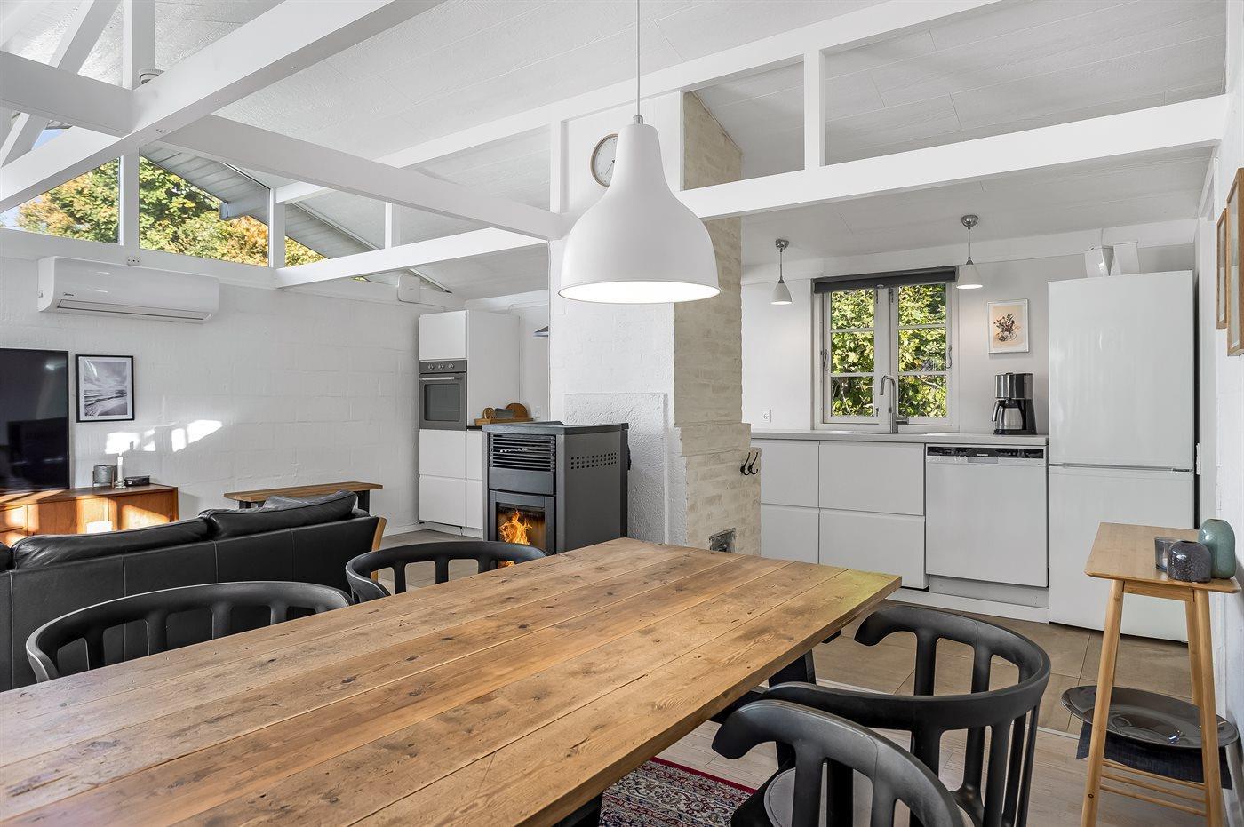 Køkkenet er udstyret med køleskab, miniovn, varmluftovn, mikrobølgeovn, Airfryer samt opvaskemaskine. Der findes ekstra køleskab i annekset.
