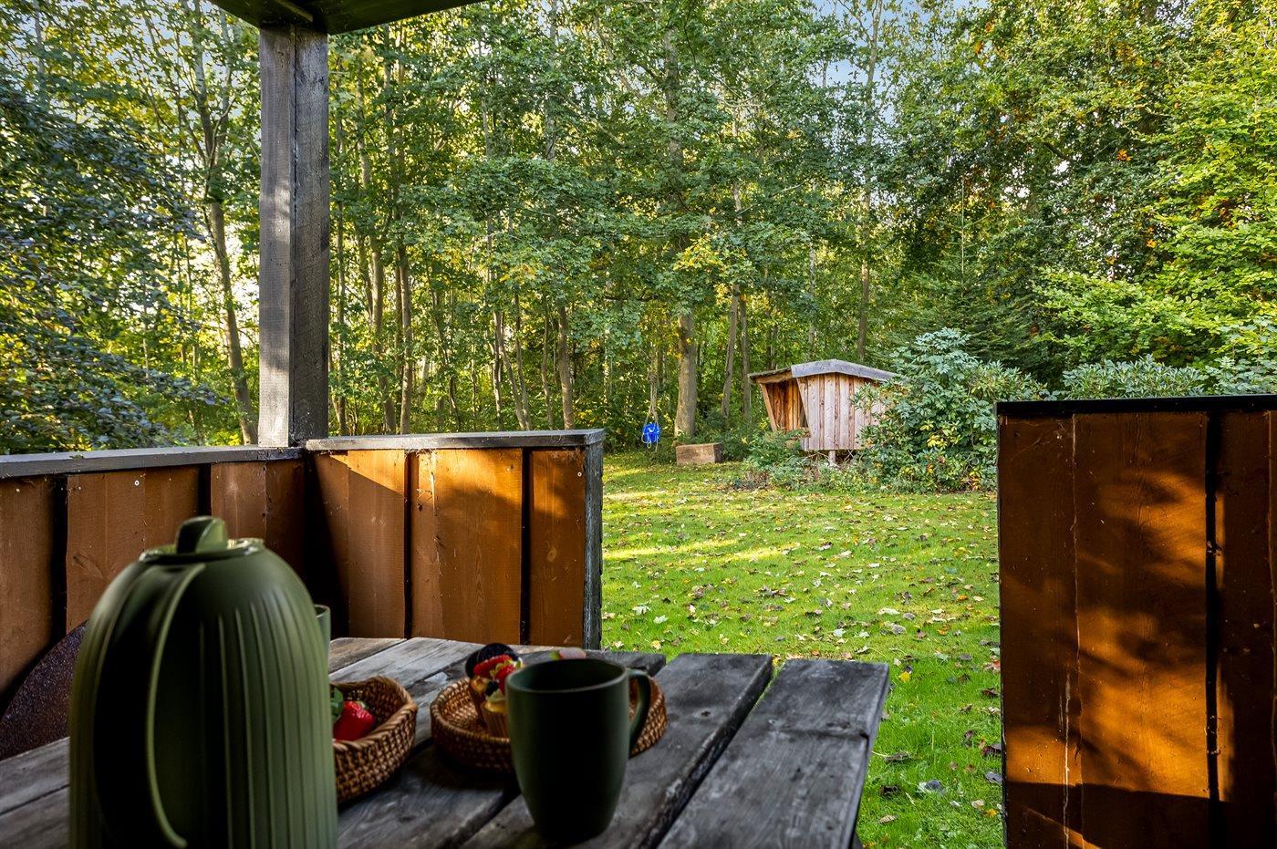 Hyggelig terrasse og en meget stor grund med plads til leg, hygge og mulighed for gemmelege for børn. Shelter i haven med madrasser til dem, der er udefolk, og hvor der er mulighed for at lukke til med et plastikvindue.