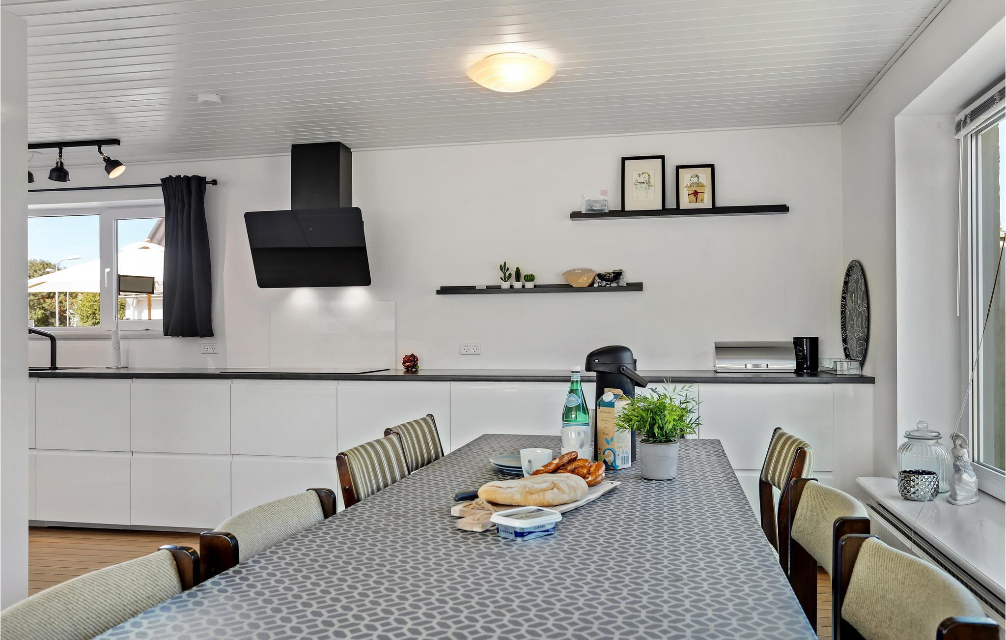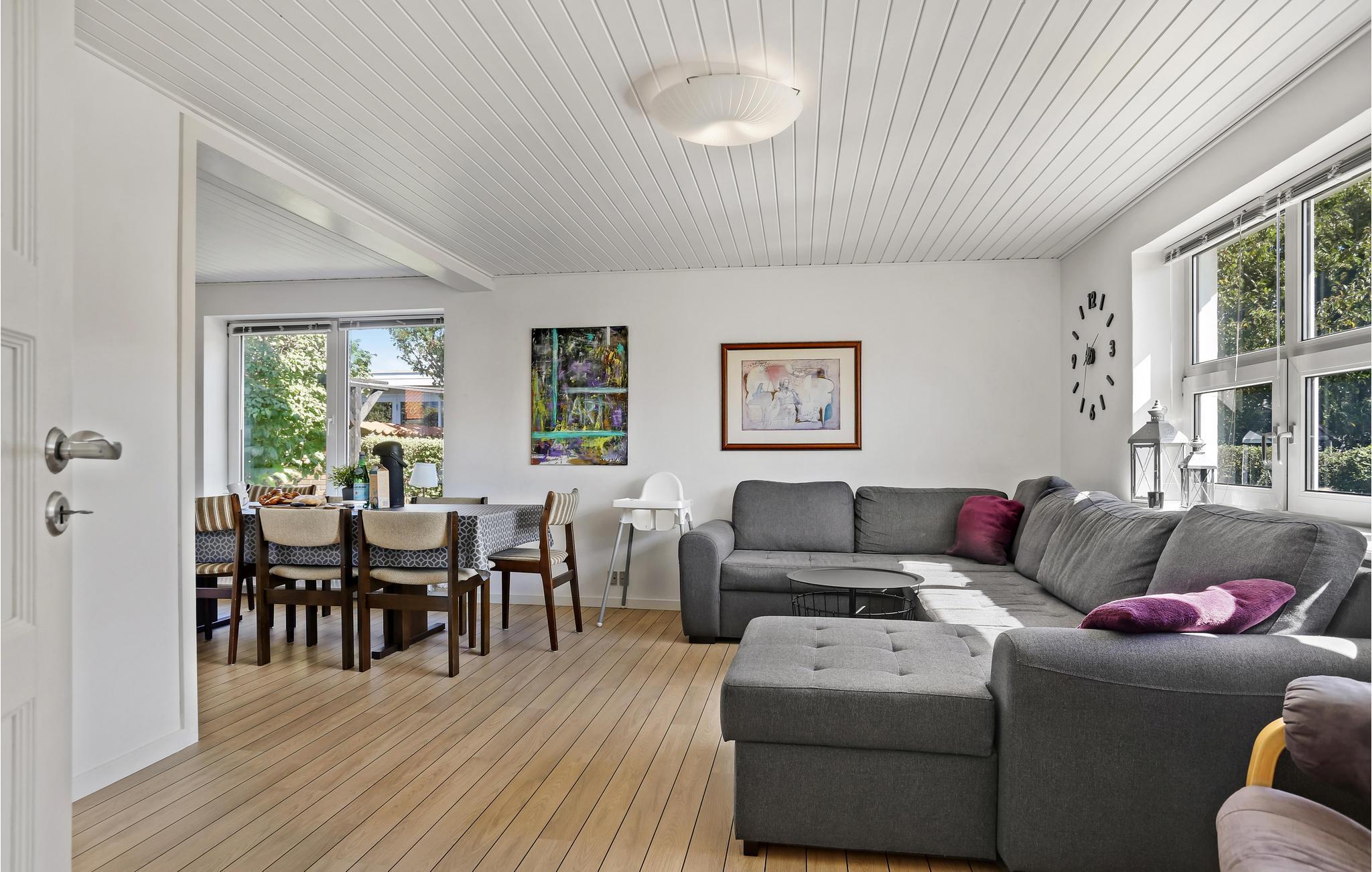 Huset er komfortabelt og lyst indrettet; her finder I alt det nødvendige til en vellykket ferie på ethvert tidspunkt af året. I det store, åbne fællesrum mødes køkken, spiseplads og stue, hvor I finder et komfortabelt sofahjørne til mange hyggelige stunder med brætspil eller en god film.